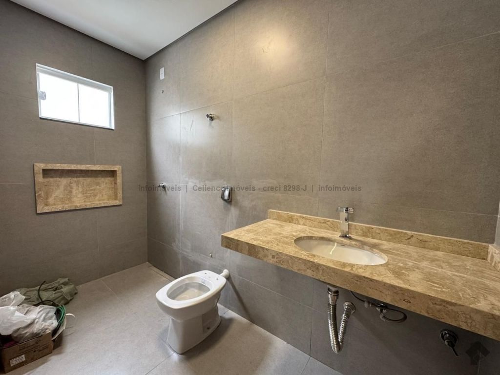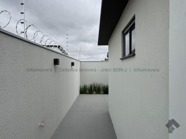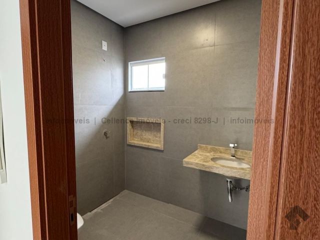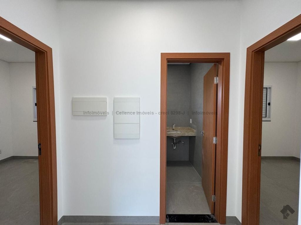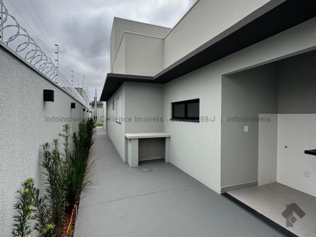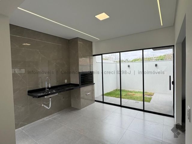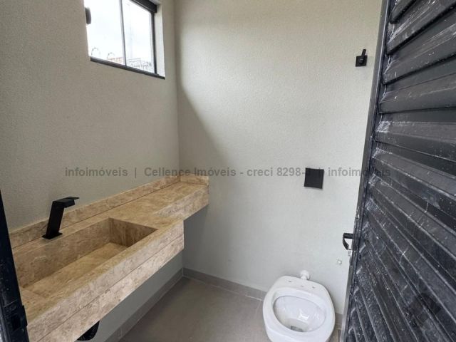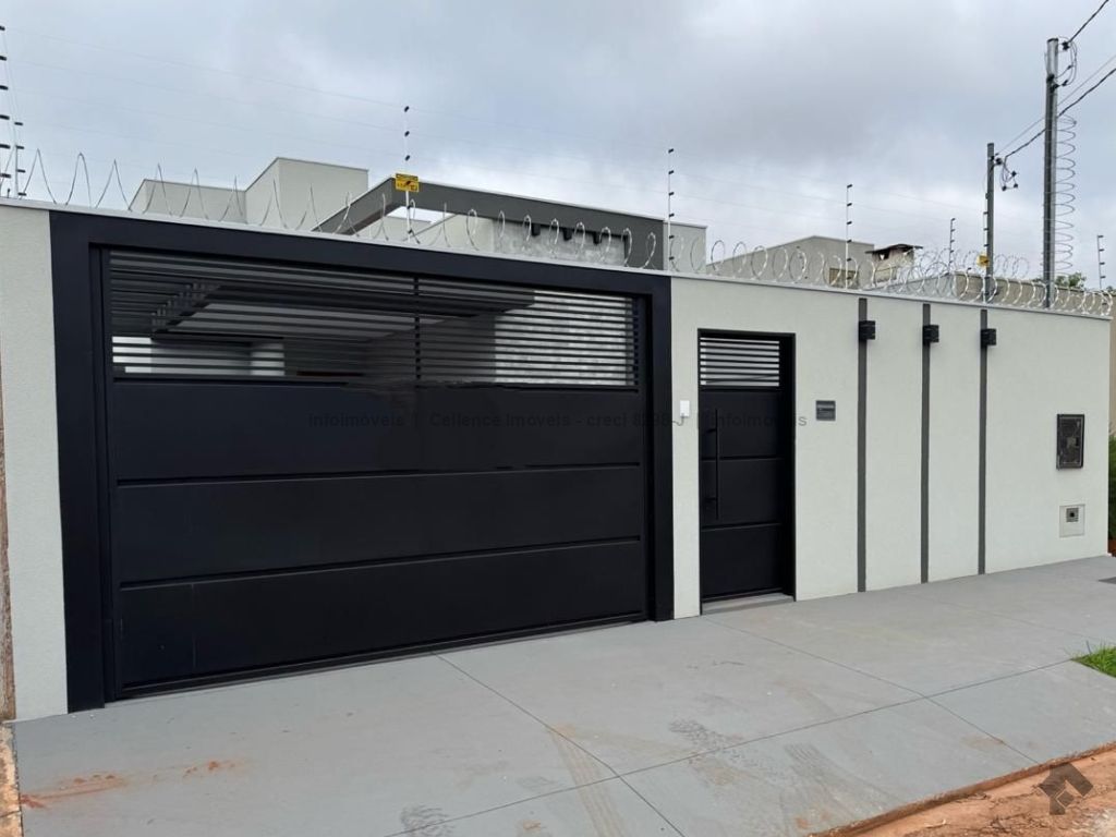 Casa com três dormitórios, sendo uma suíte e dois quartos, sala ampla de dois ambientes, área gourmet, lavabo externo e três vagas de garagem.