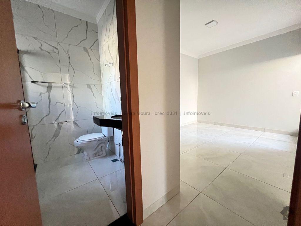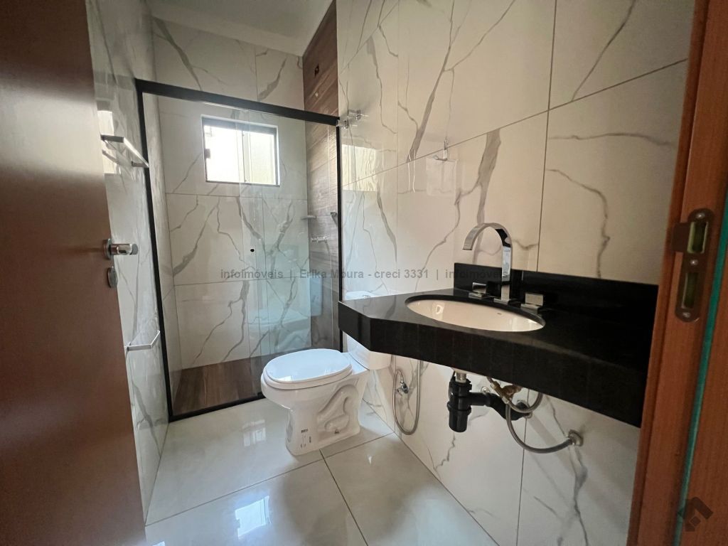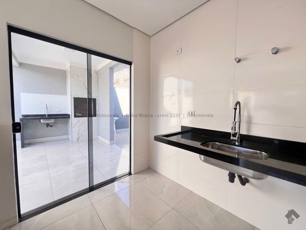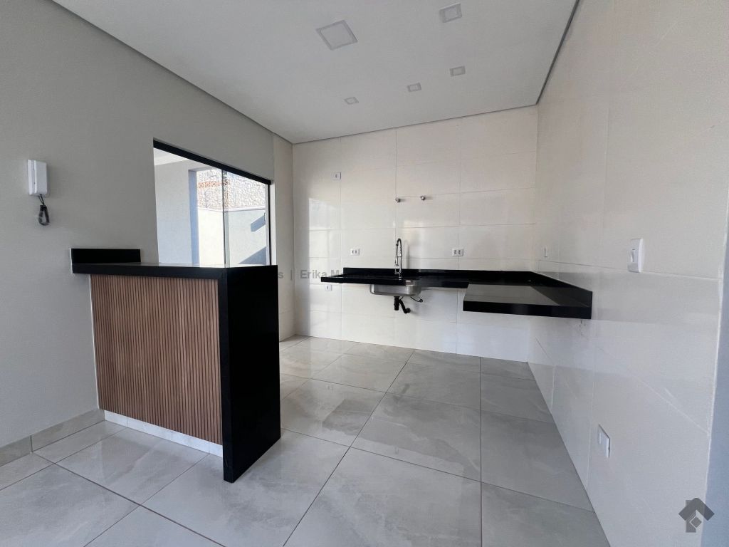 Imóvel novo com acabamento de primeira linha, sala para dois ambientes, varanda gourmet com churrasqueira e pia, 1 suíte, 2 quartos, banheiro social, banheiro de serviço, cozinha americana, garagem, portão elétrico, cerca elétrica, boiler para água quente e fria, piso em porcelanato, instalações hidráulicas Tigre, bacias DECA, esquadrias de vidro temperado, box de vidro nos banheiros, granitos preto São Gabriel, sanca de gesso com iluminação em LED na sala e cozinha.