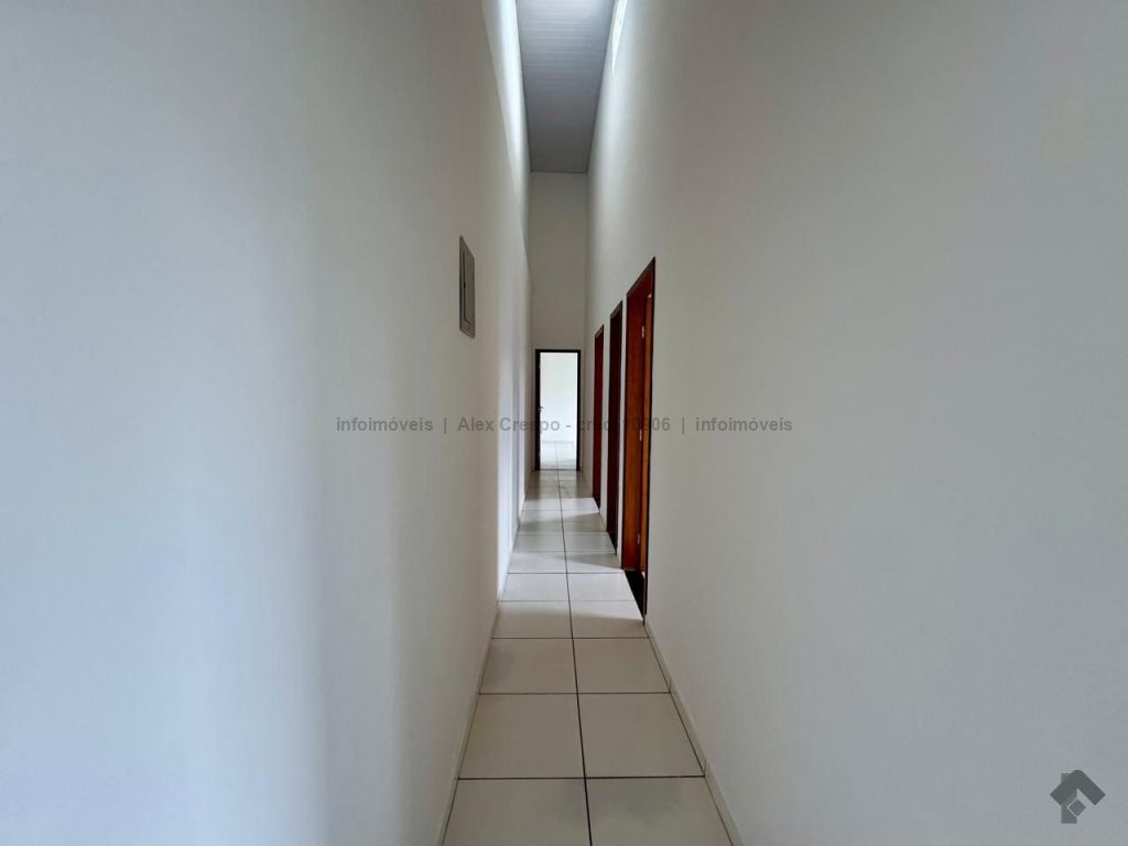 Casa com ótima estrutura: 3 quartos, incluindo 1 suíte, garagem para 3 carros, sala ampla, cozinha com móveis planejados, banheiro social, espaço gourmet, escritório elevado com ar-condicionado e banheiro.