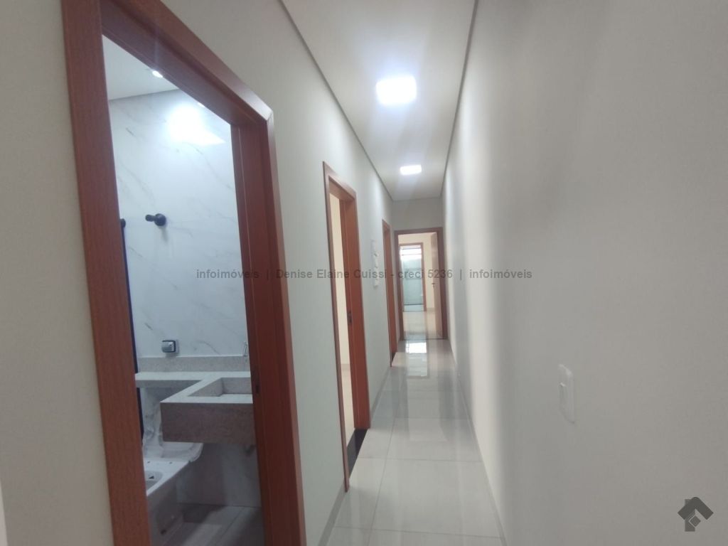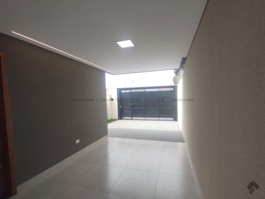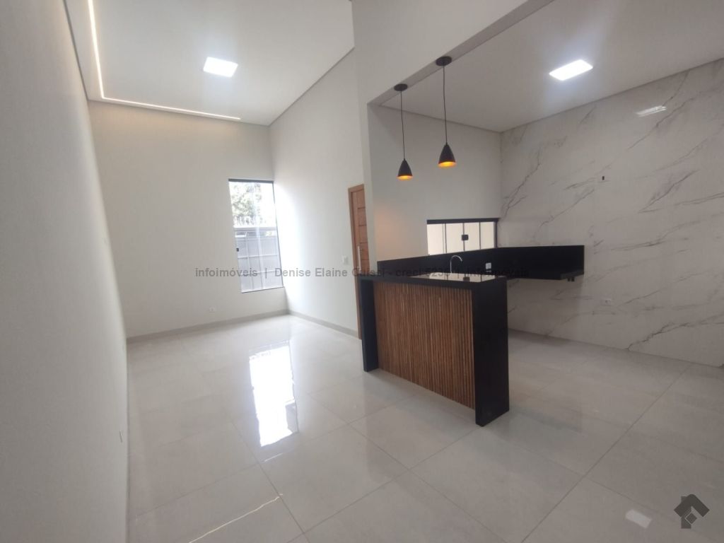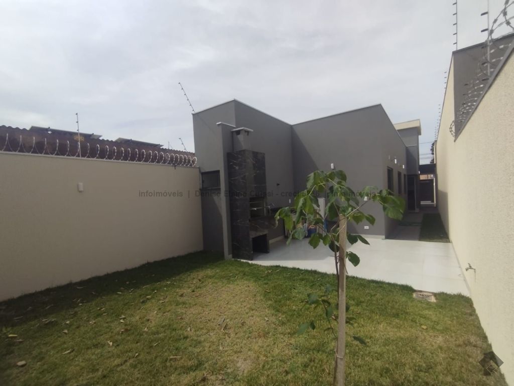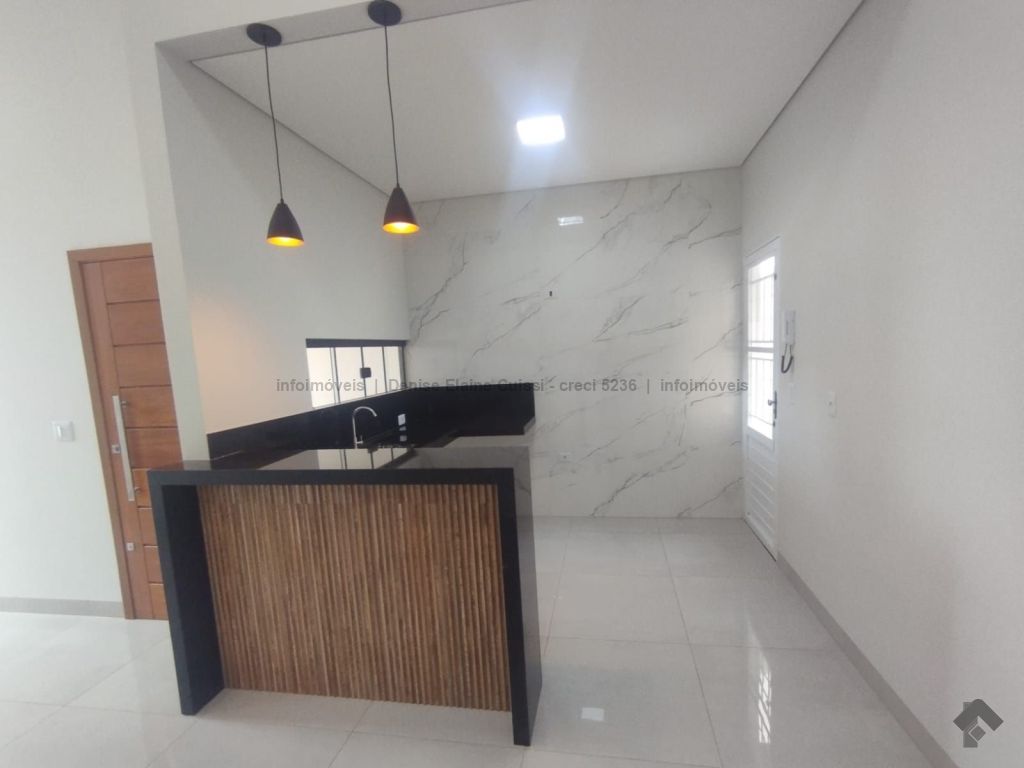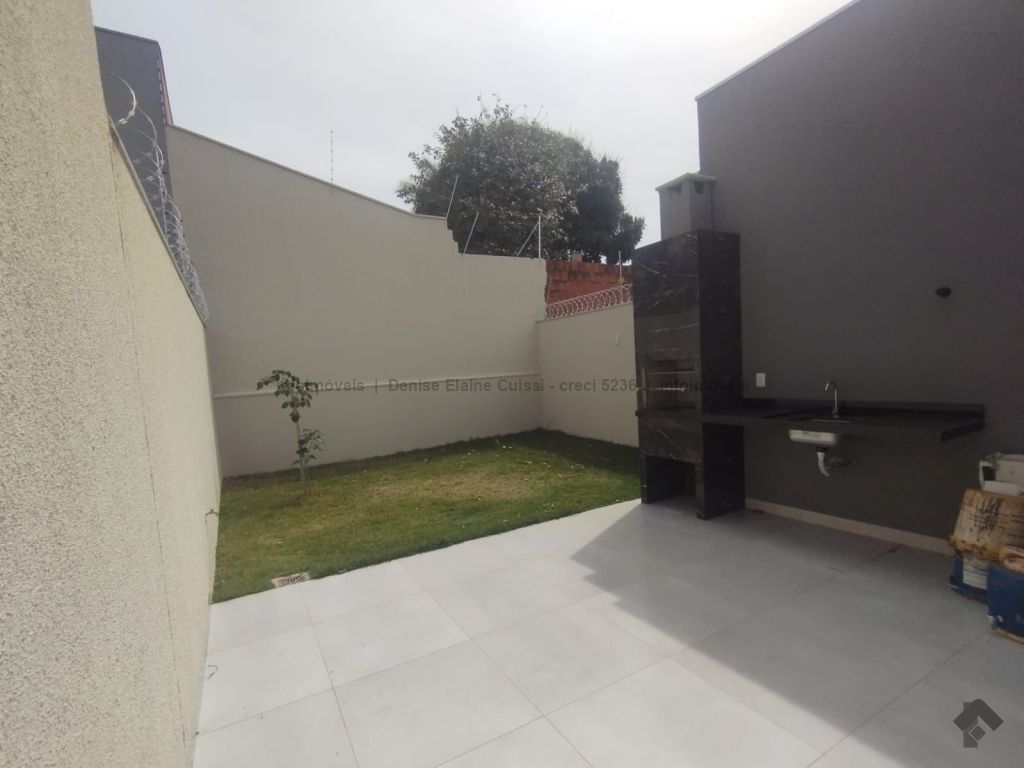 Casa térrea, nova, pronta para morar. Alto padrão em acabamento. Excelente localização. Três quartos, sendo uma suíte. Sala com pé direito alto. Cozinha. Banheiro social. Espaço gourmet com churrasqueira e pia. Quintal nos fundos. Três vagas de garagem, sendo uma coberta. Iluminação em LED. Paisagismo. Portão de elevação, calçadas e rua asfaltada.