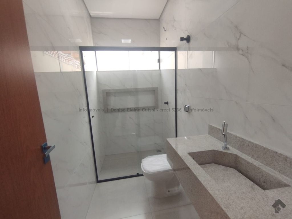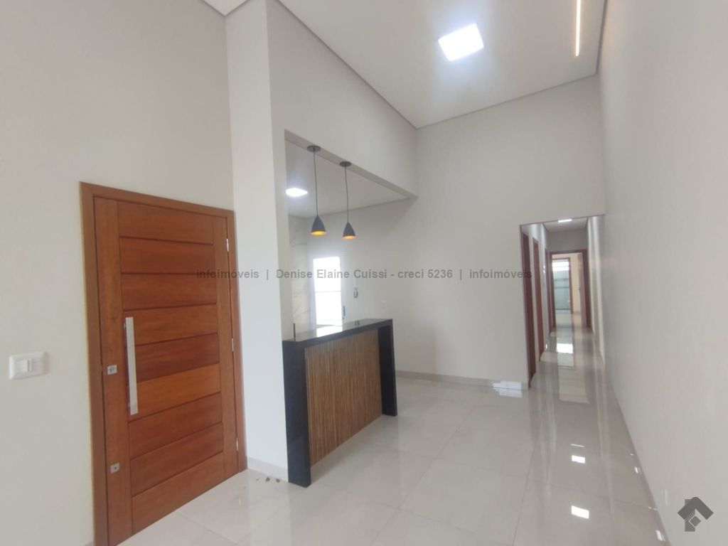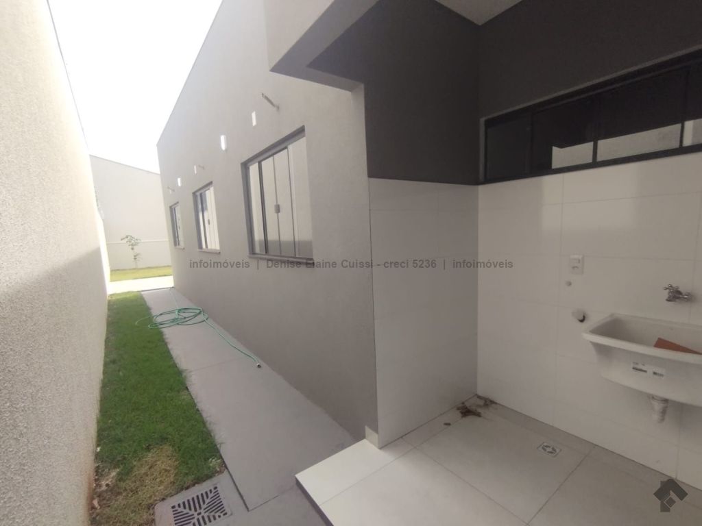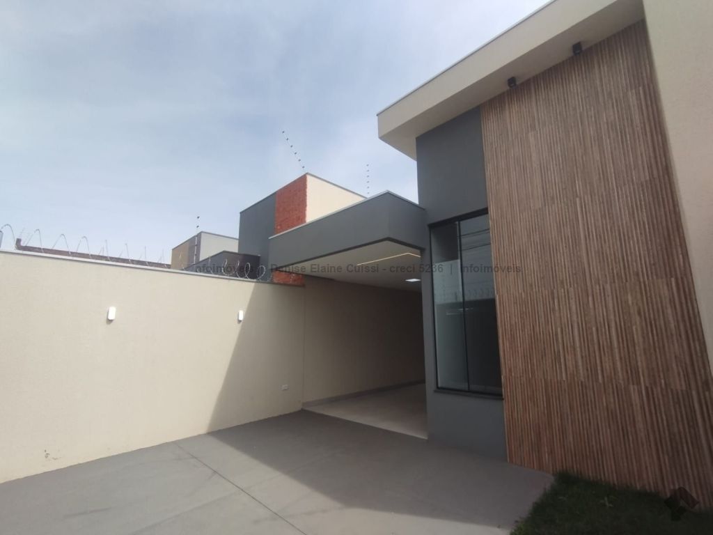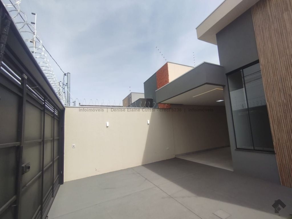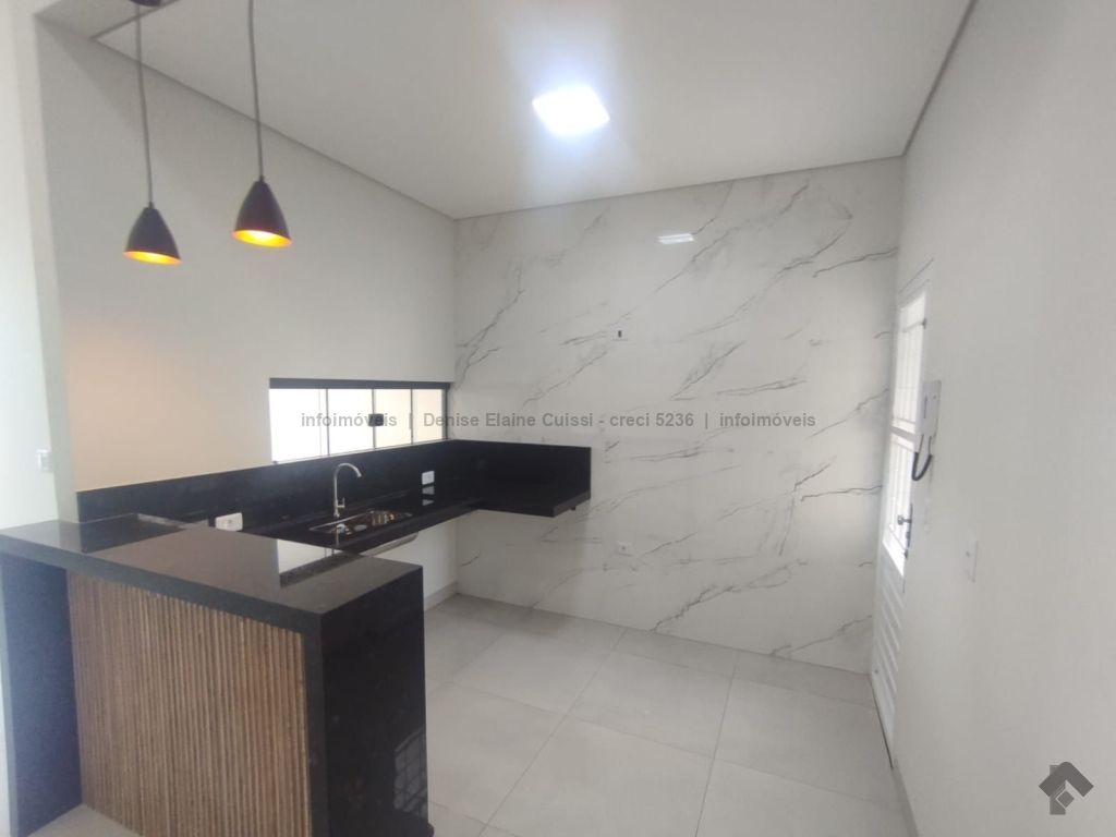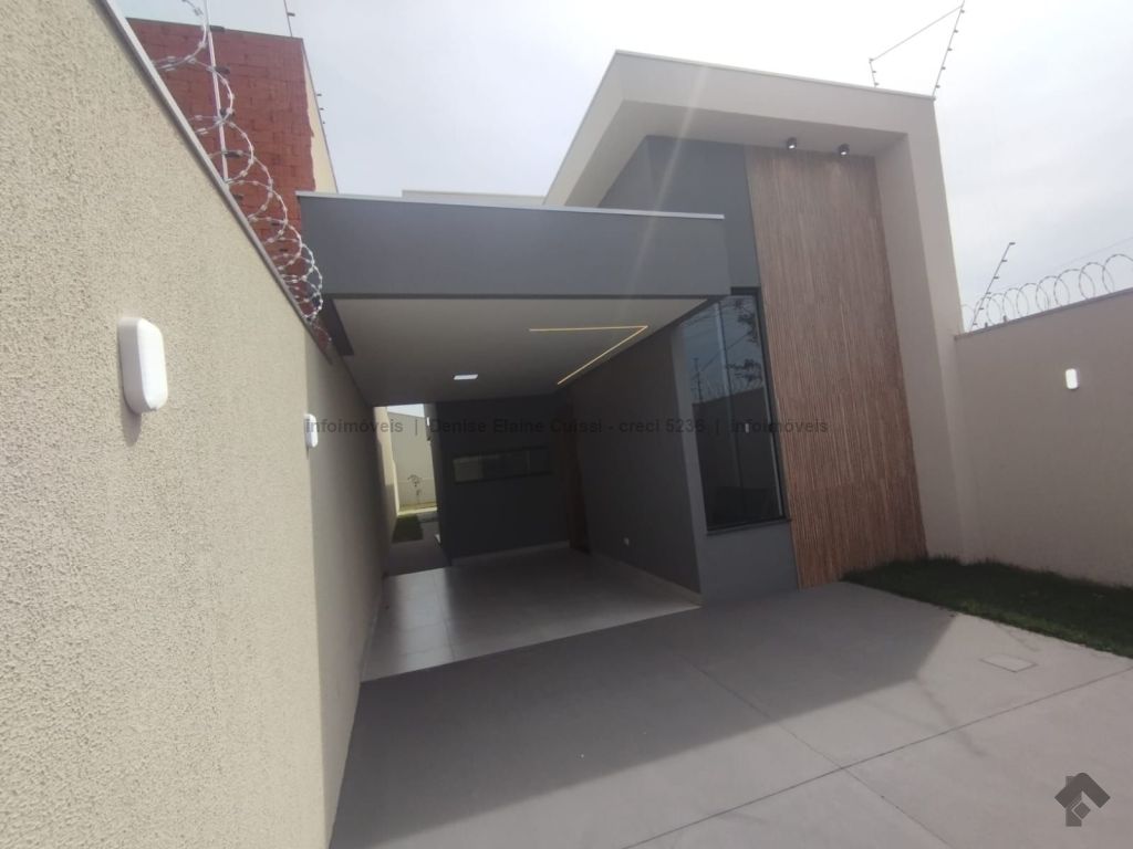 Casa térrea, nova, pronta para morar. Alto padrão em acabamento. Excelente localização. Três quartos, sendo uma suíte. Sala com pé direito alto. Cozinha. Banheiro social. Espaço gourmet com churrasqueira e pia. Quintal nos fundos. Três vagas de garagem, sendo uma coberta. Iluminação em LED. Paisagismo. Portão de elevação, calçadas e rua asfaltada.
