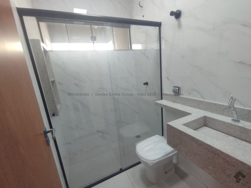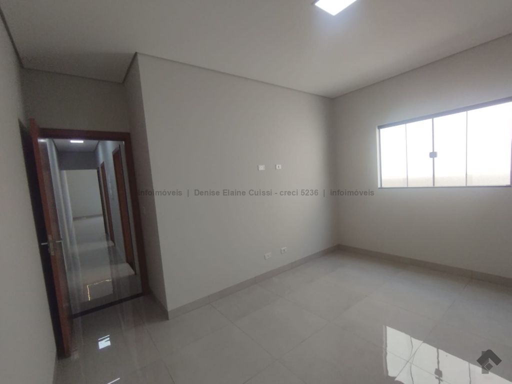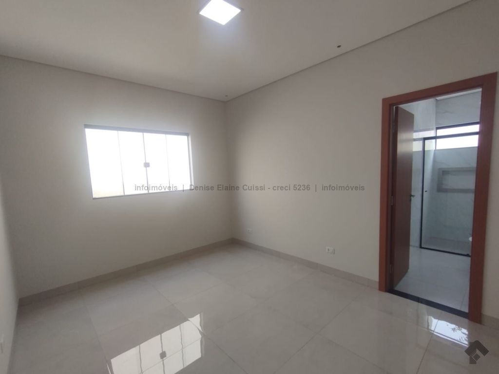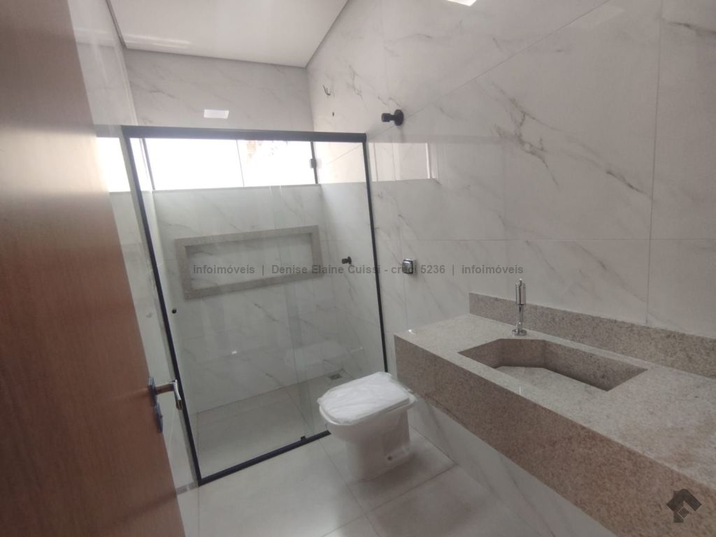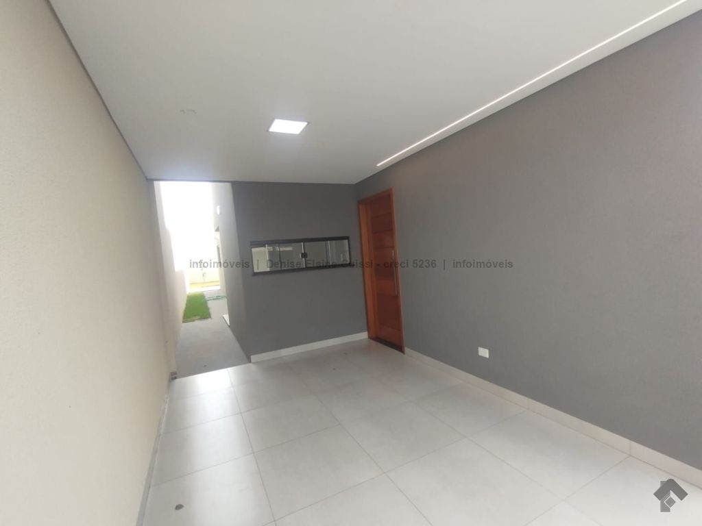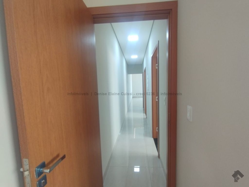 Casa térrea, nova, pronta para morar. Alto padrão em acabamento. Excelente localização. Três quartos, sendo uma suíte. Sala com pé direito alto. Cozinha. Banheiro social. Espaço gourmet com churrasqueira e pia. Quintal nos fundos. Três vagas de garagem, sendo uma coberta. Iluminação em LED. Paisagismo. Portão de elevação, calçadas e rua asfaltada.