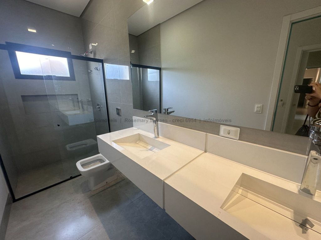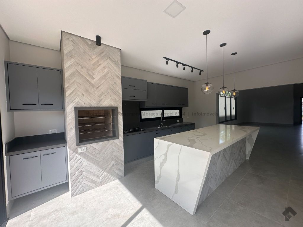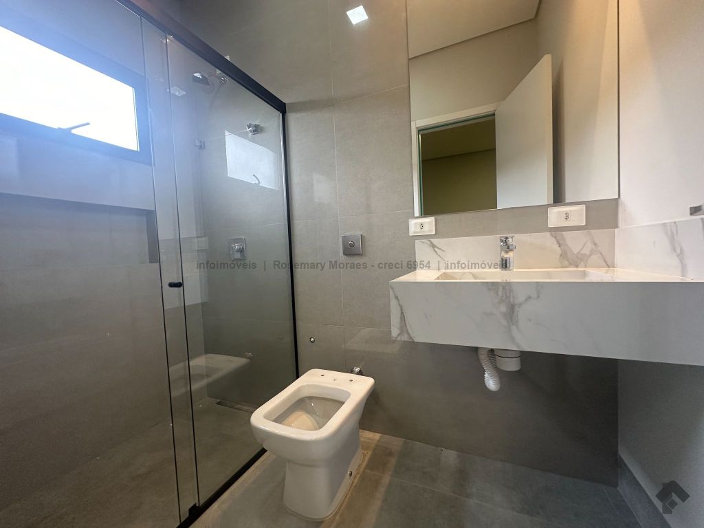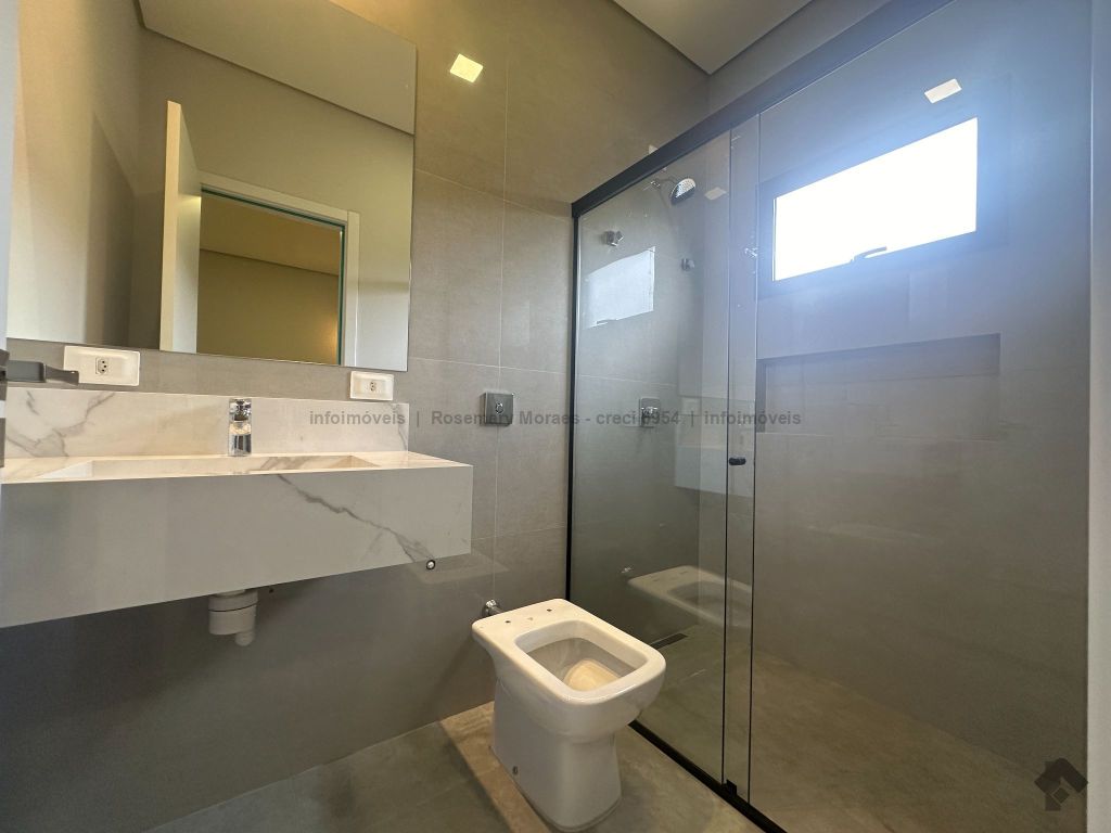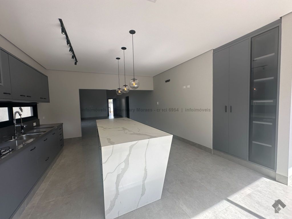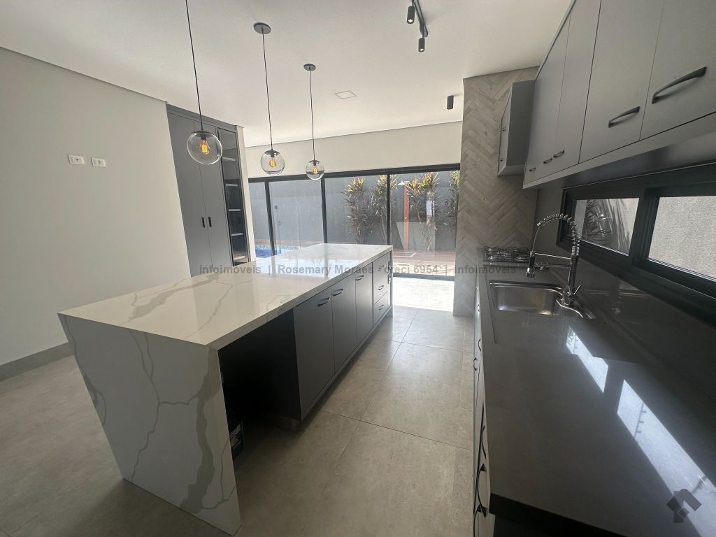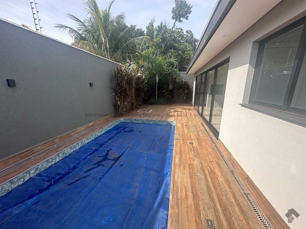 São 3 suítes, sendo uma com closet, pia com cubas duplas e closet, armário no corredor, escritório, sala para dois ambientes com pé direito alto, cozinha integrada com espaço gourmet, com armários planejados, lavanderia, banheiro externo e piscina aquecida com hidromassagem e luz de LED. Tem boiler de 400 litros (água aquecida em todas as torneiras e chuveiros da casa), menos na área de serviço.