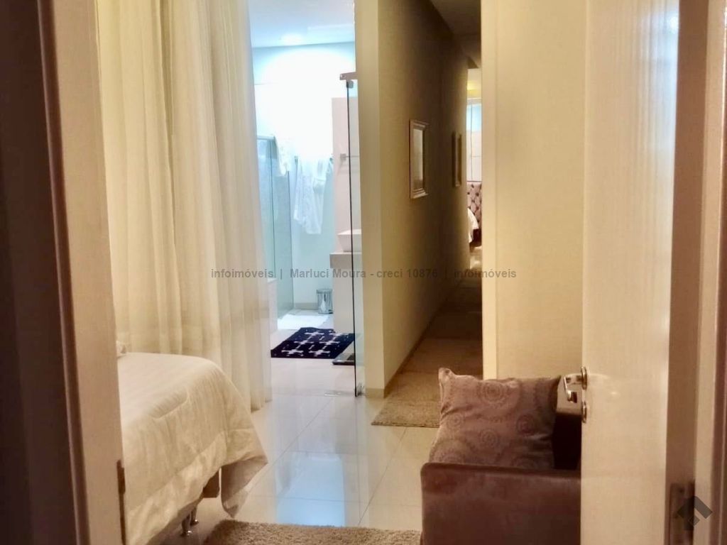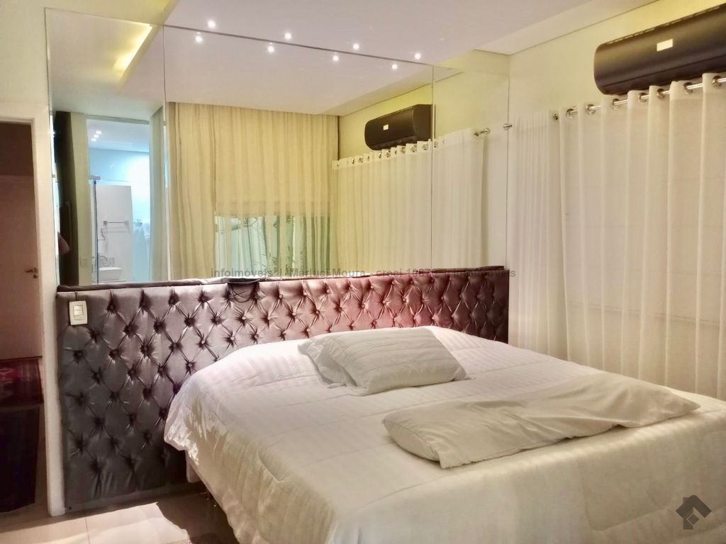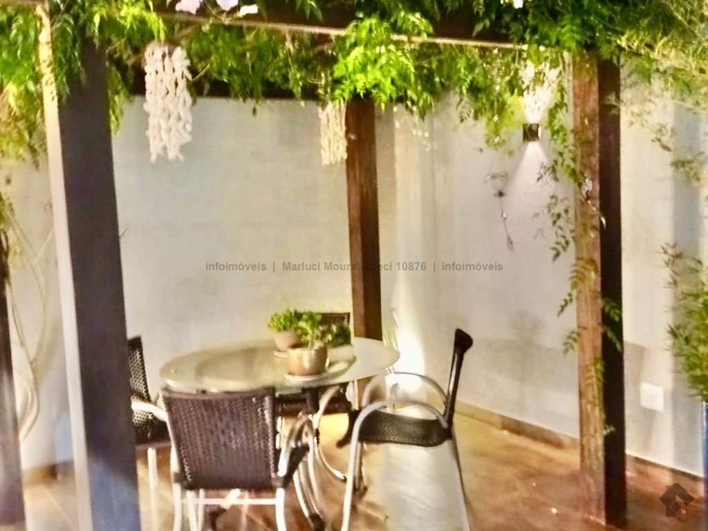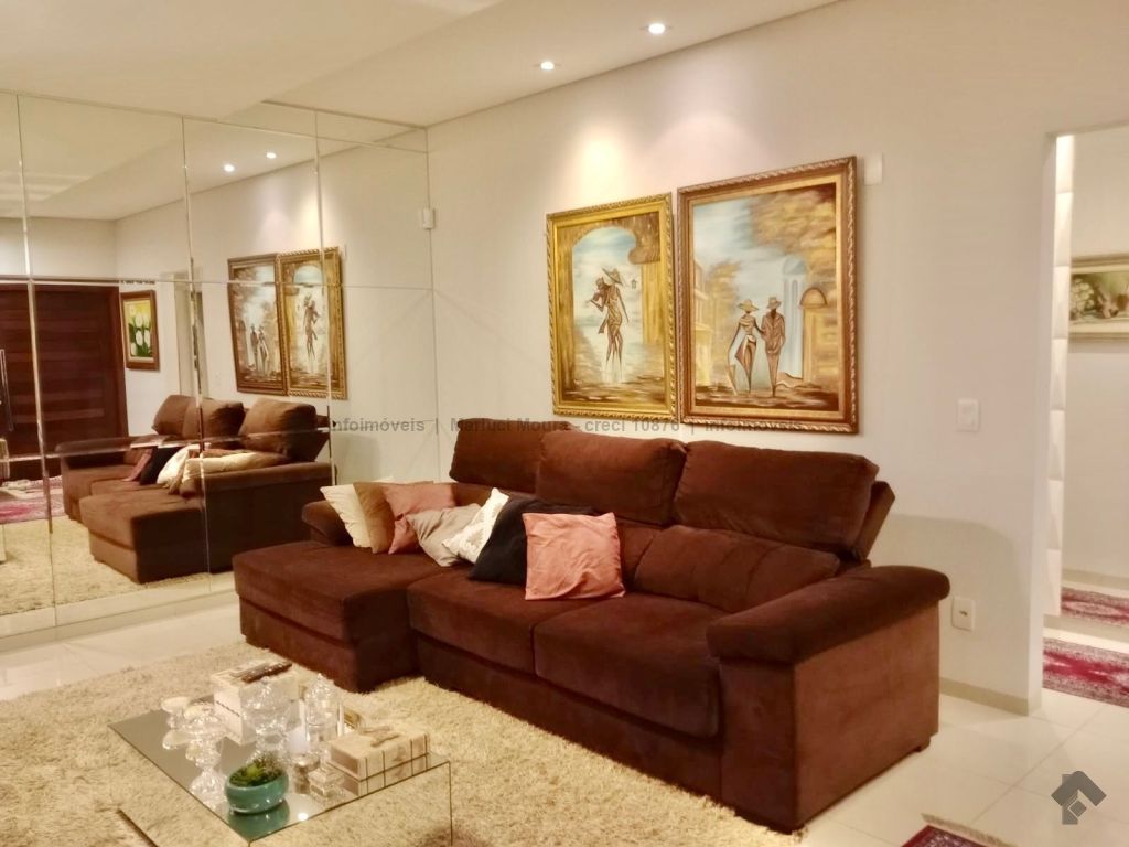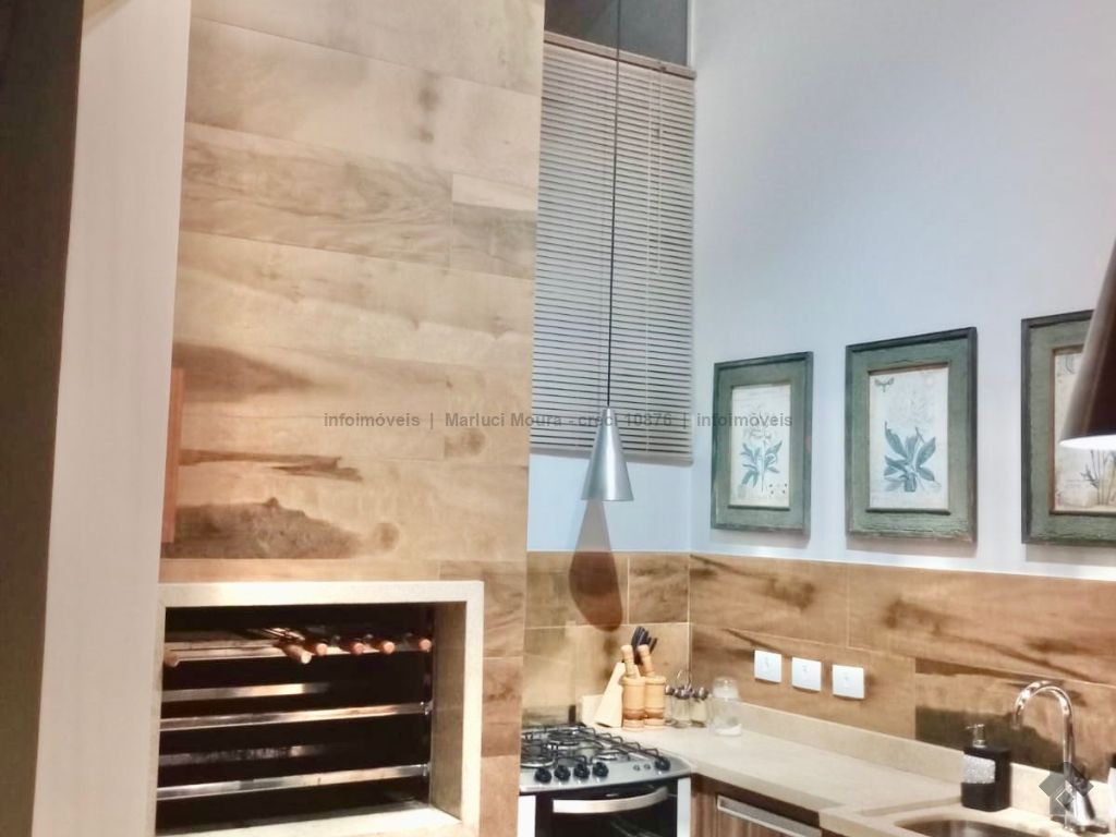A casa dispõe de nove placas de energia, três suítes, sendo uma com banheira de hidromassagem, armários embutidos por toda a casa, espelhos, iluminação agradável e pendentes, um lavabo, cozinha com armários, salas amplas, área externa e gourmet com churrasqueira e vista para a piscina protegida por portas de vidro, um gazebo com plantas, jardinagem e bela iluminação, garagem para quatro veículos, corredor e muito bom gosto.