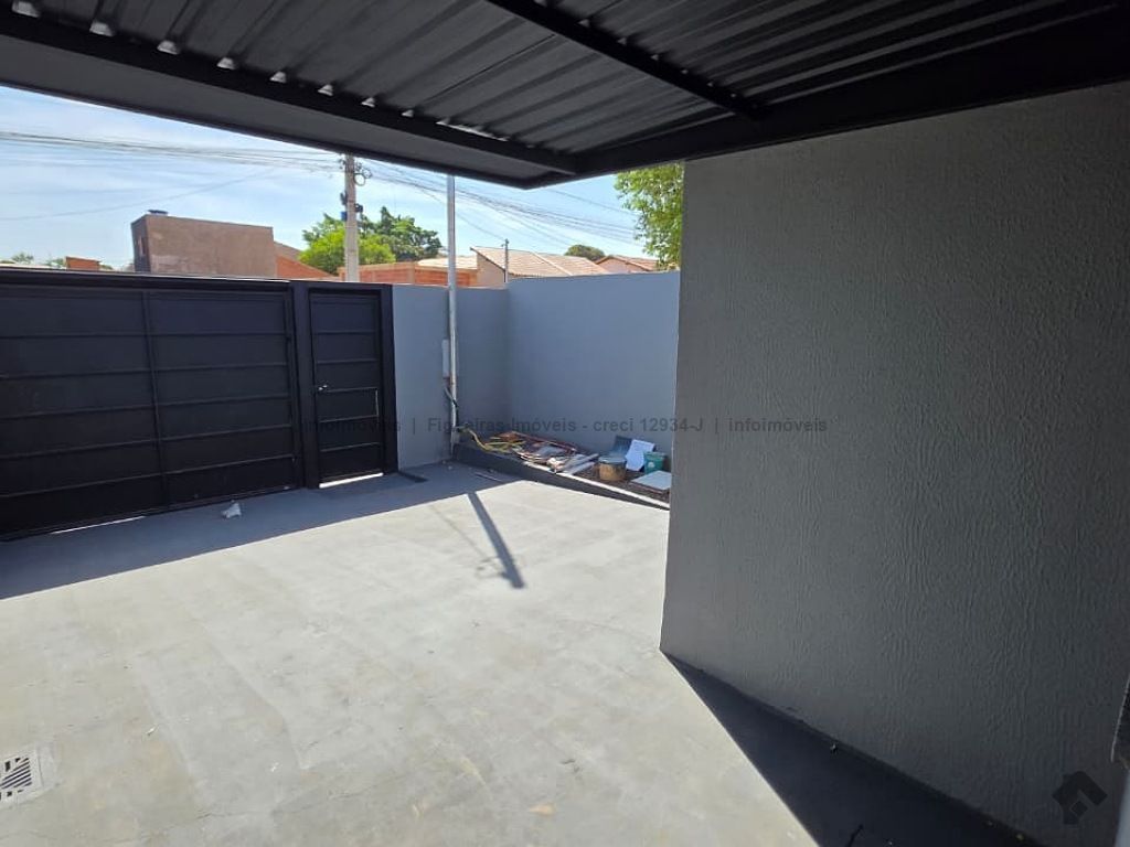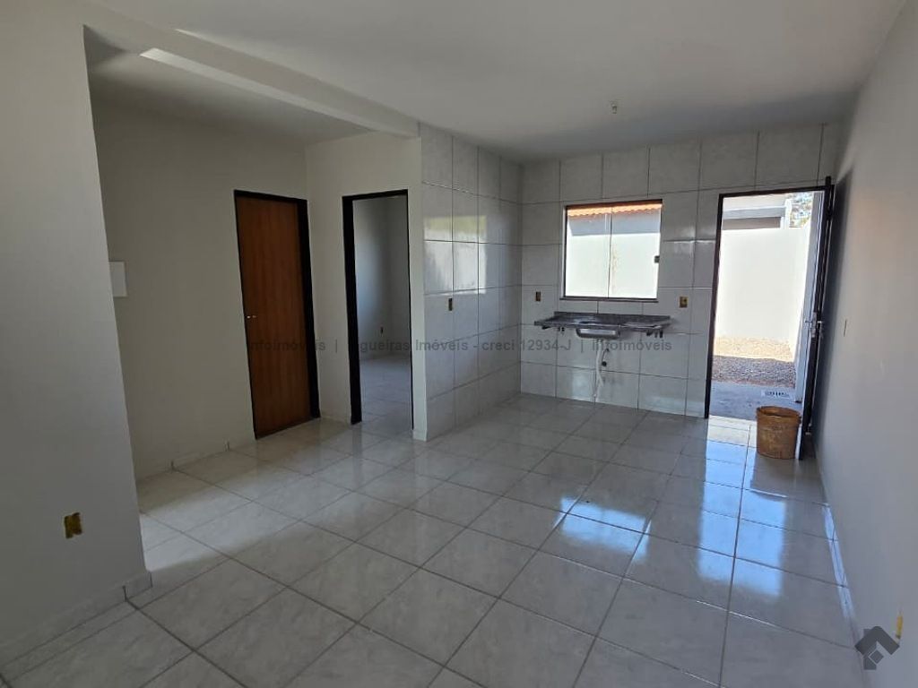 Garagem coberta, 2 quartos, sala de estar, cozinha e área de serviço.