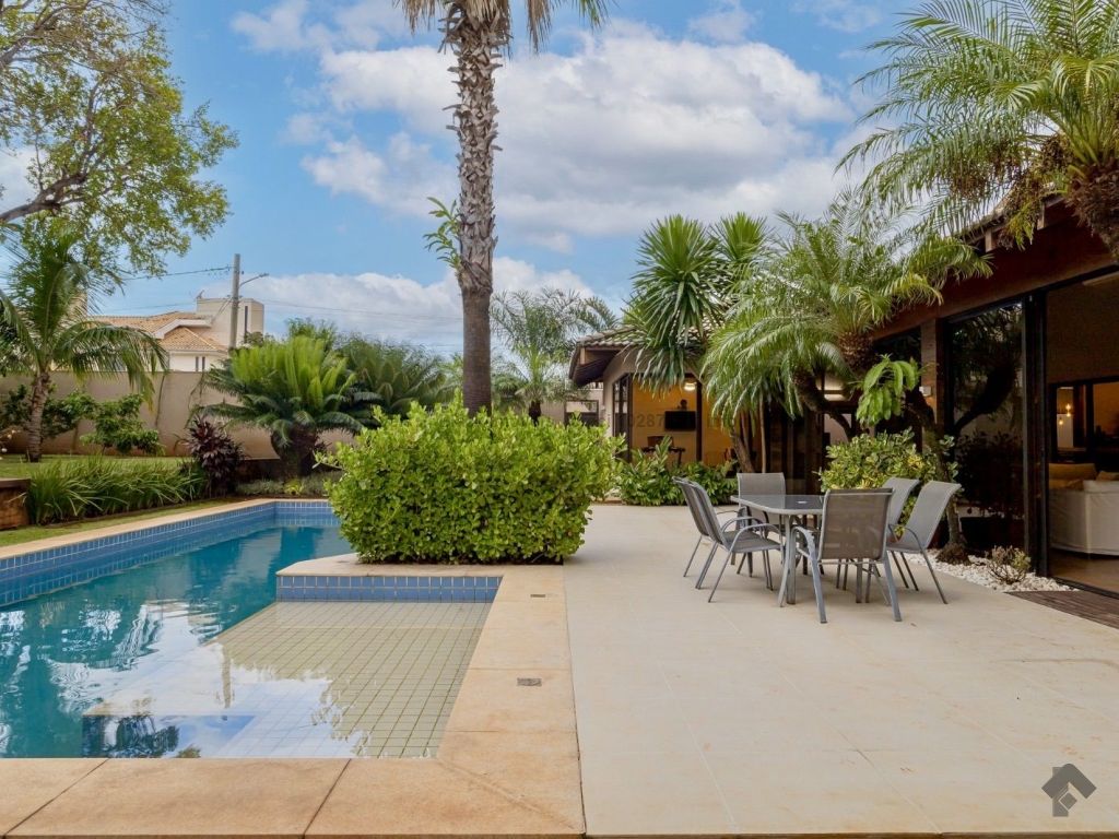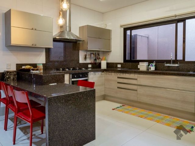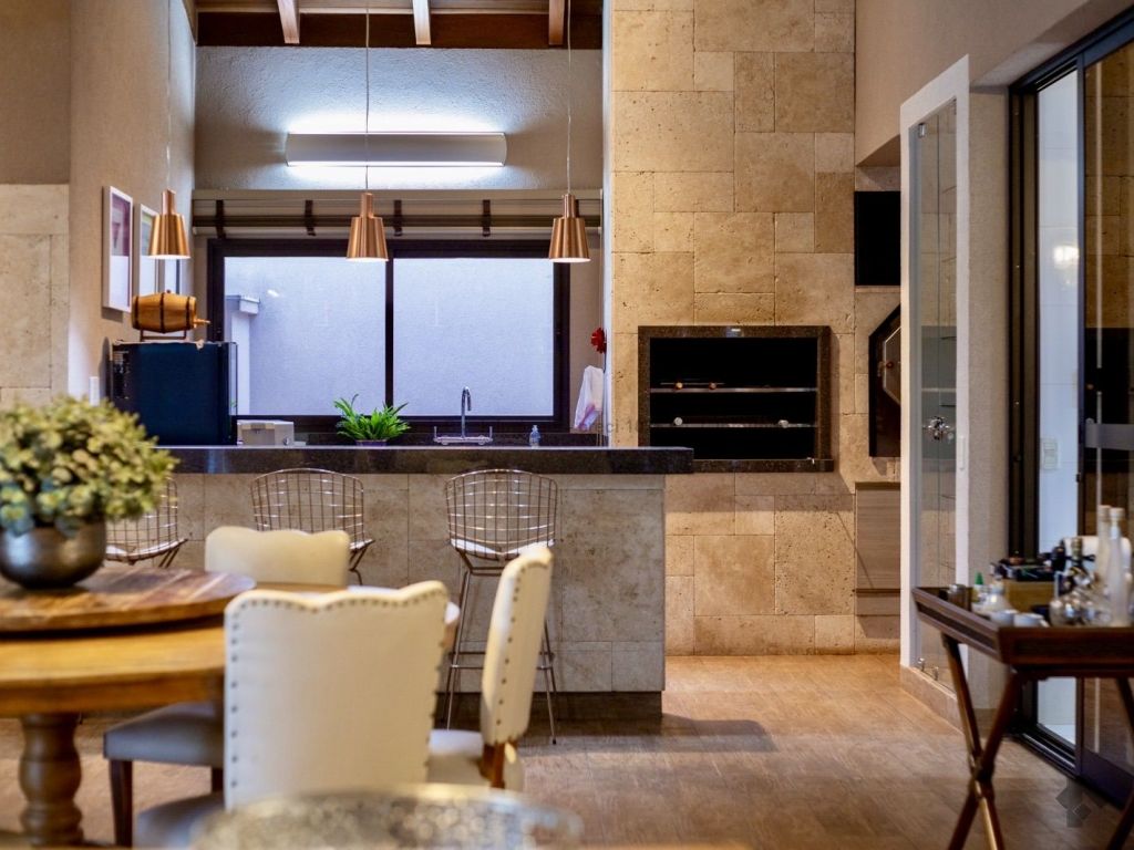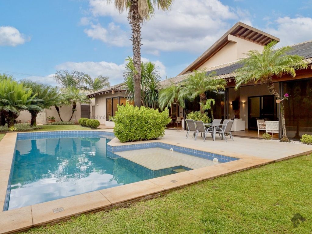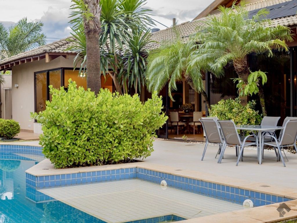 Excelente casa térrea de esquina, com muita área verde, duas suítes contemplam vista para o jardim e piscina, inteira em móveis planejados e revestimentos de extremo bom gosto. O imóvel possui academia, piscina com prainha, depósito hobby box, caixa d'água individual, garagem para quatro veículos, persianas automatizadas, lustres decorativos na sala de jantar, sistema completo de monitoramento, aparelhos de ar condicionado inverter, ampla área verde com árvores frutíferas.