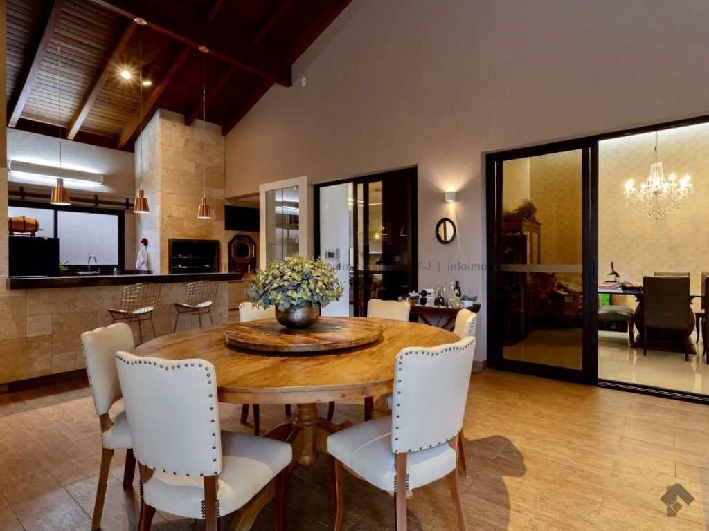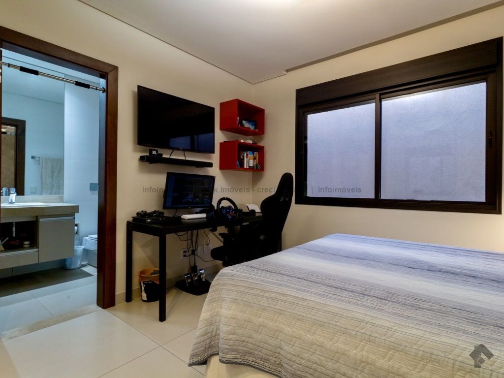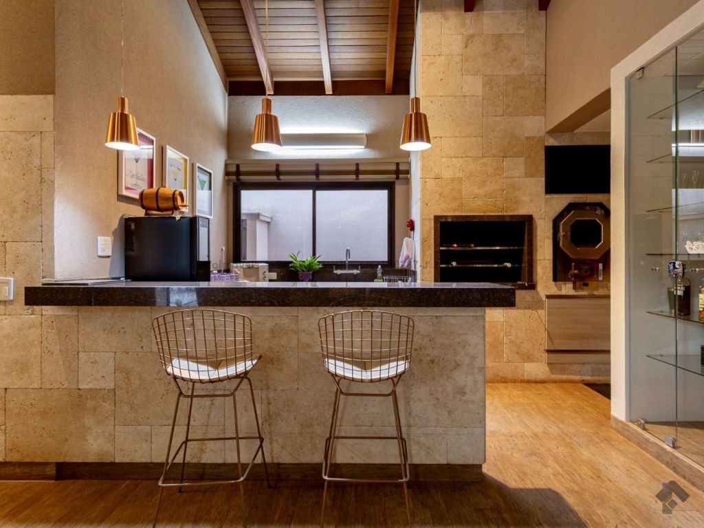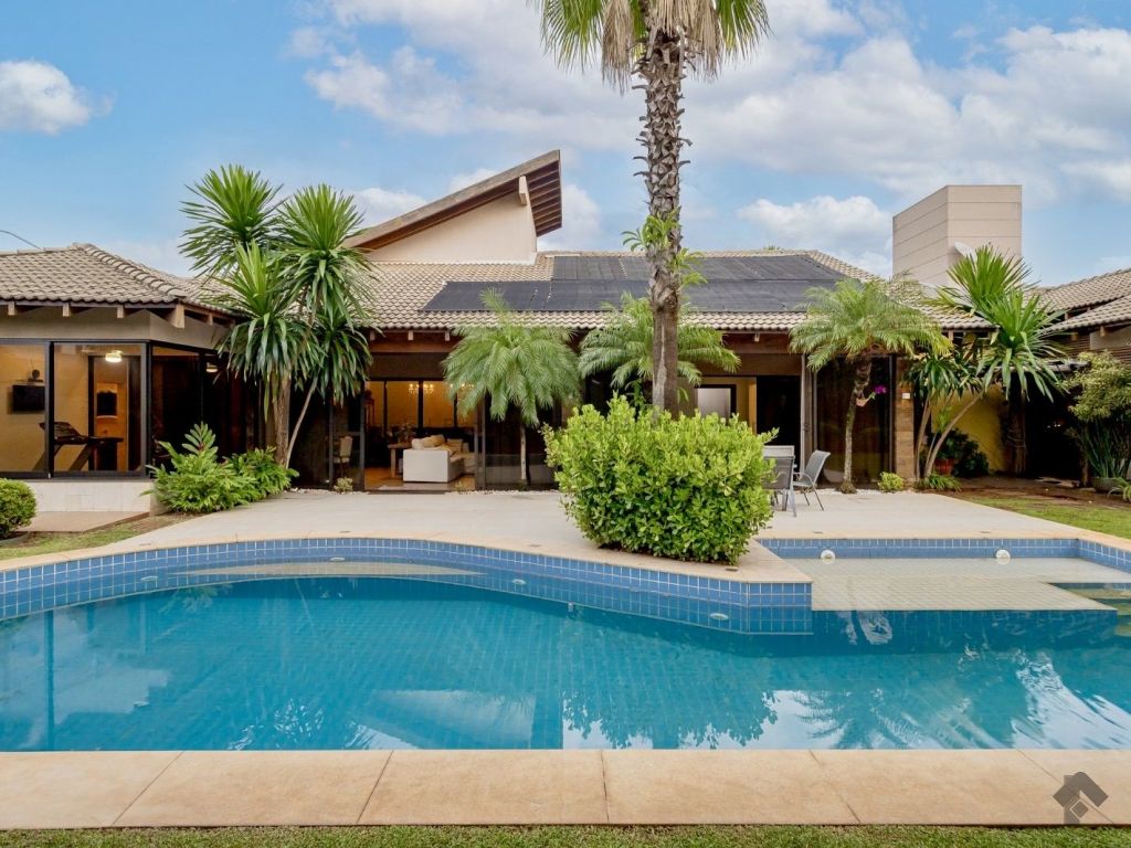 Excelente casa térrea de esquina, com muita área verde, duas suítes contemplam vista para o jardim e piscina, inteira em móveis planejados e revestimentos de extremo bom gosto. O imóvel possui academia, piscina com prainha, depósito hobby box, caixa d'água individual, garagem para quatro veículos, persianas automatizadas, lustres decorativos na sala de jantar, sistema completo de monitoramento, aparelhos de ar condicionado inverter, ampla área verde com árvores frutíferas.