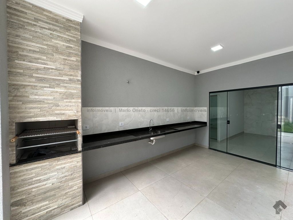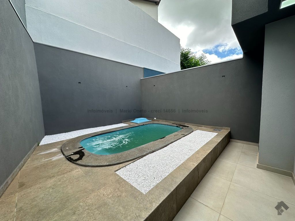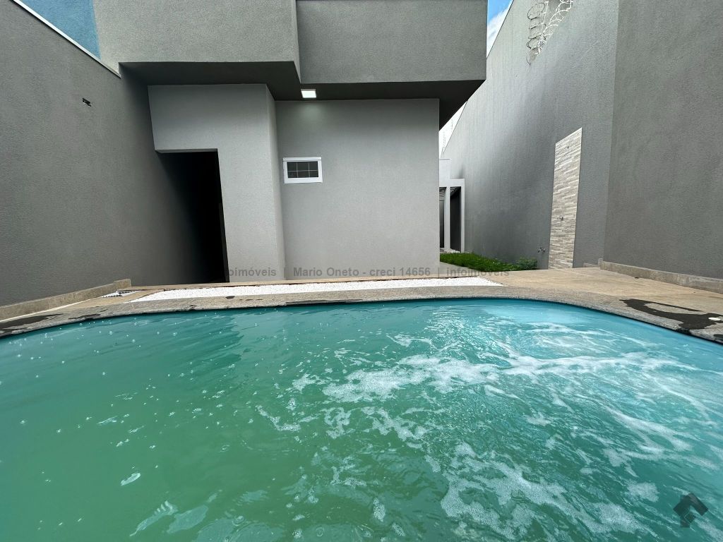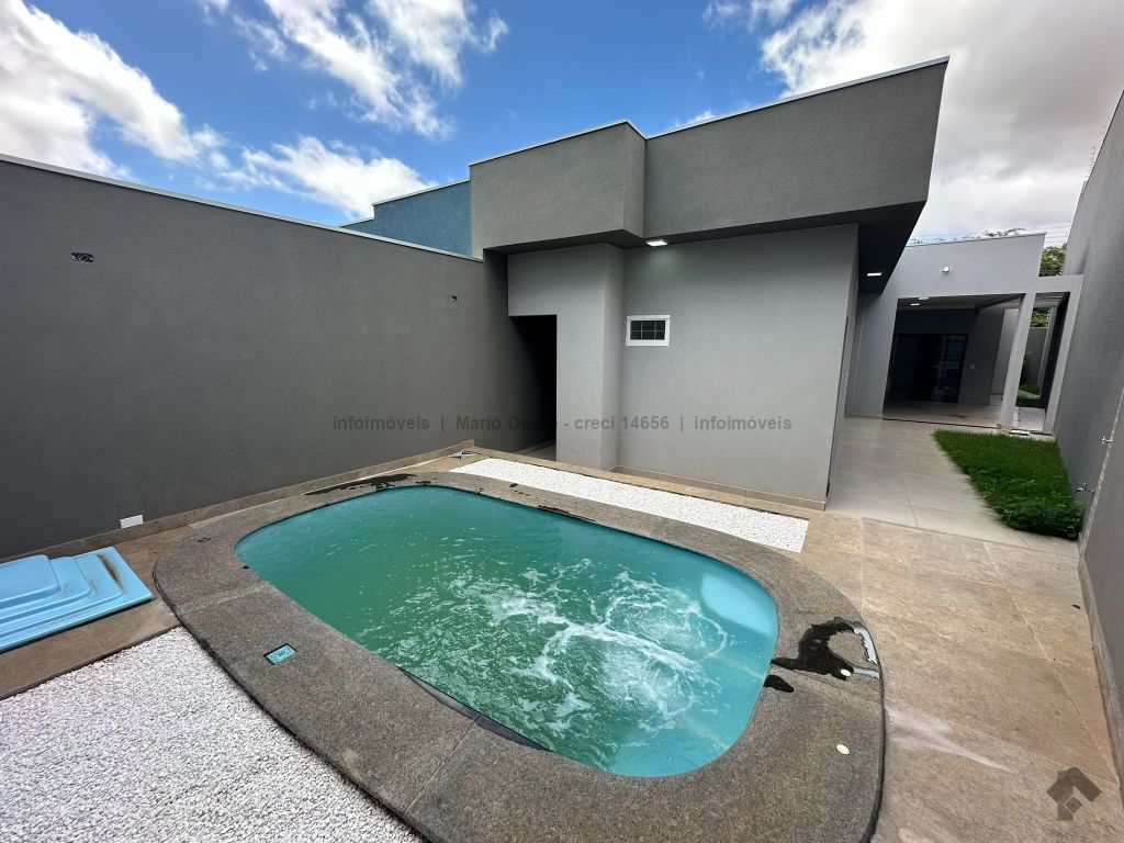 Casa novíssima, 2 suítes, sendo uma com closet, 1 quarto, banheiro social, cozinha, área gourmet, área de serviço, garagem para 2 carros, jardim de inverno, piscina, banheiro externo, parede com pele de vidro, toda em porcelanato, pintura externa com granele, alarme e cerca elétrica.