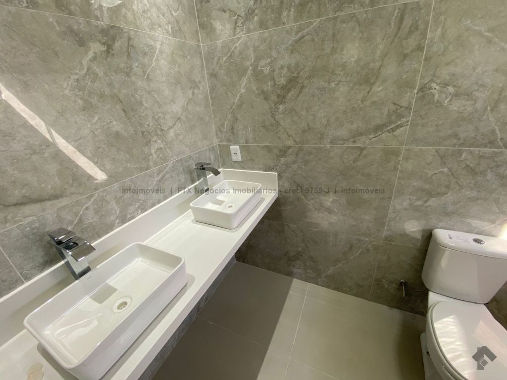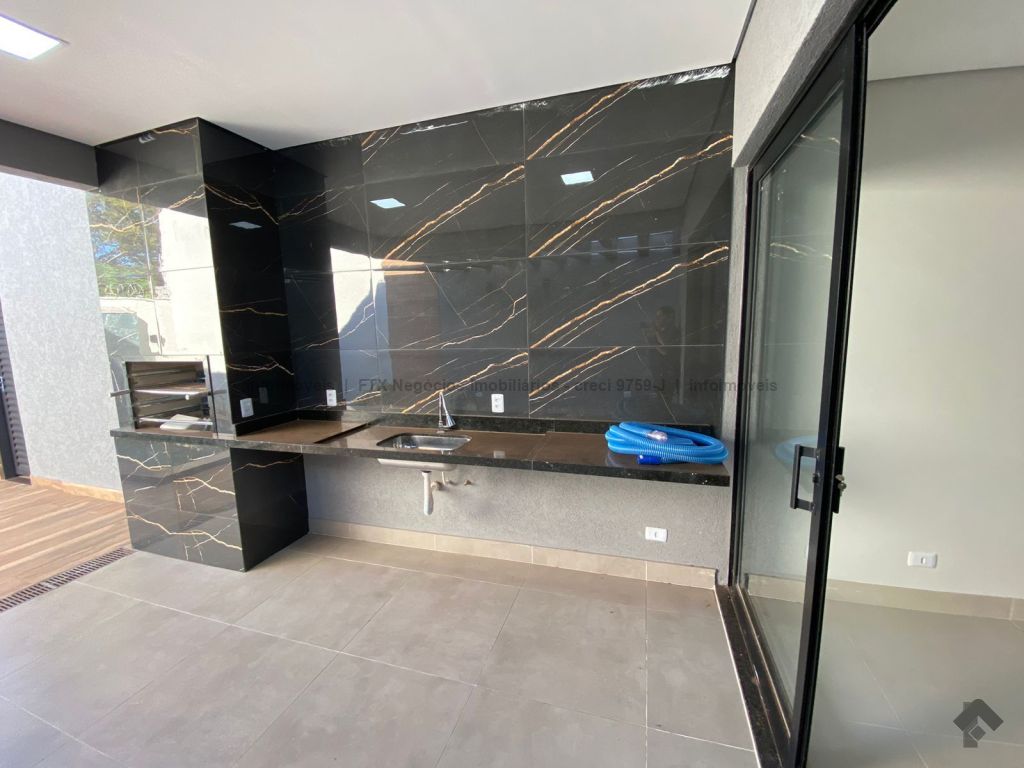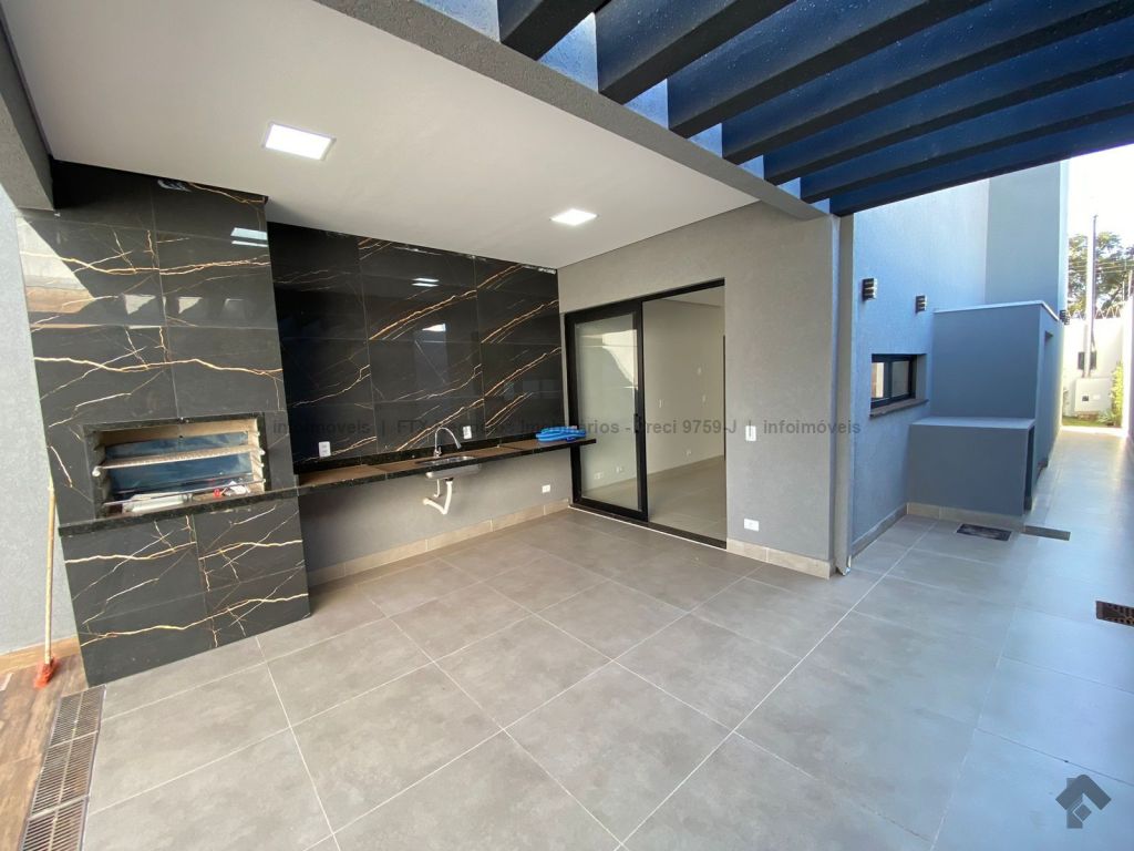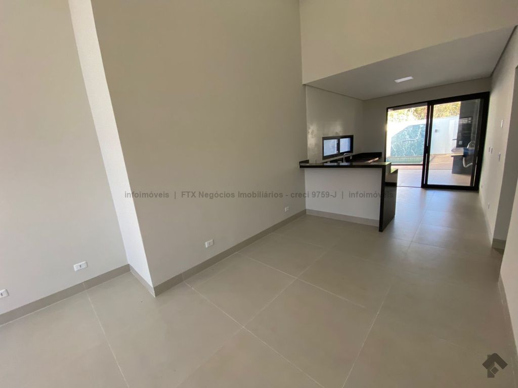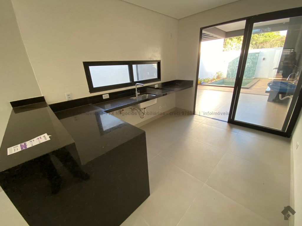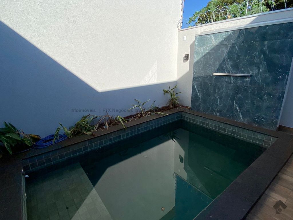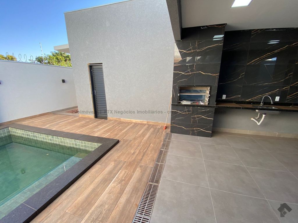 Linda casa térrea com 3 suítes, sala de estar com pé direito duplo, sala de jantar, cozinha, área gourmet com churrasqueira nos fundos, piscina com preparação para água quente e com cascata, banheiro social, e garagem para 2 carros cobertos e jardim.