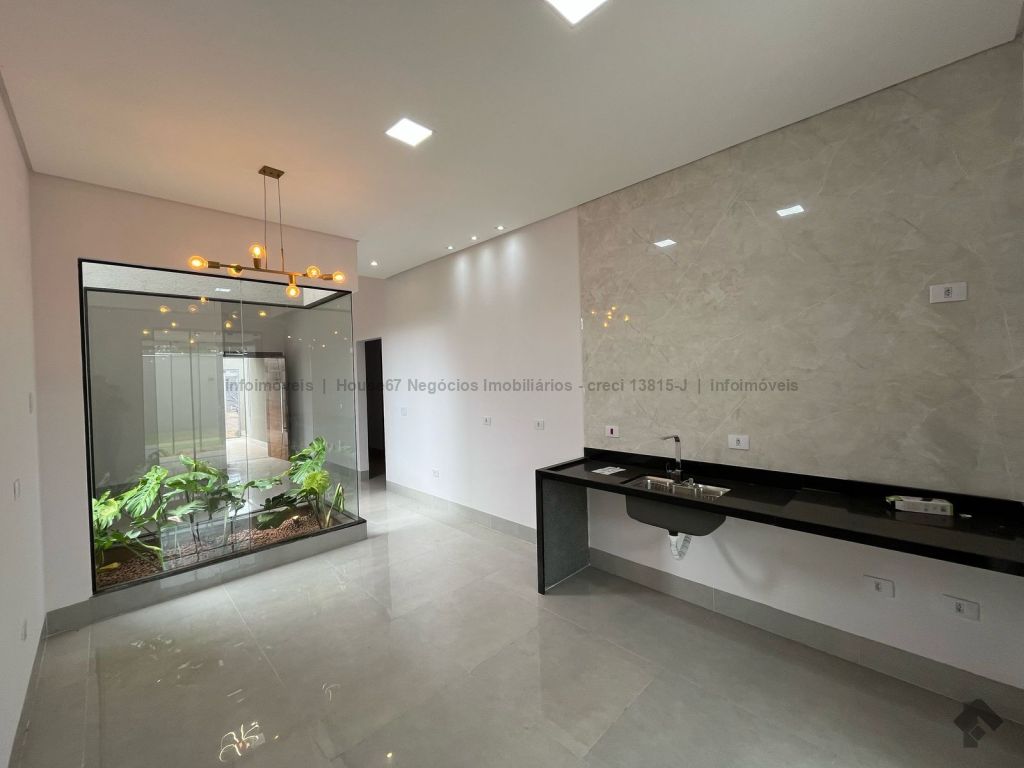 O imóvel possui: área total de 225 m², área construída de 136 m², sala com pé direito alto, cozinha, 3 quartos, sendo 1 suíte, jardim de inverno, lavabo, espaço gourmet com churrasqueira, lavanderia, garagem coberta para dois carros.