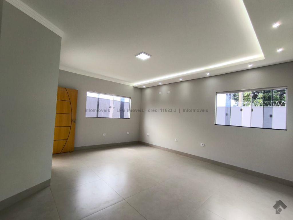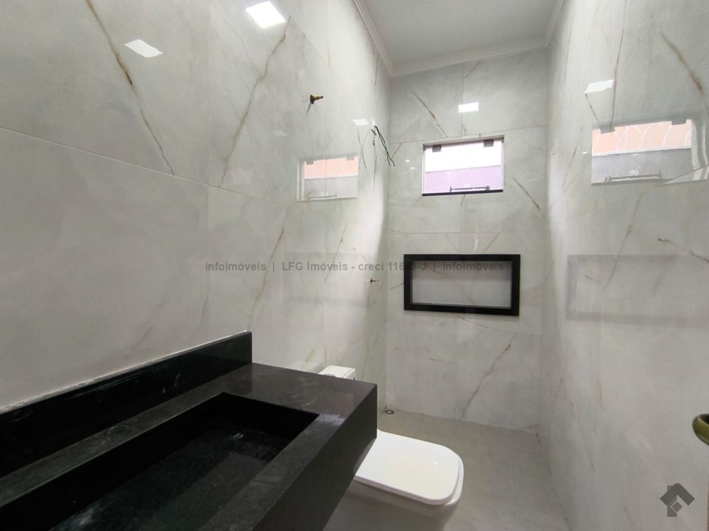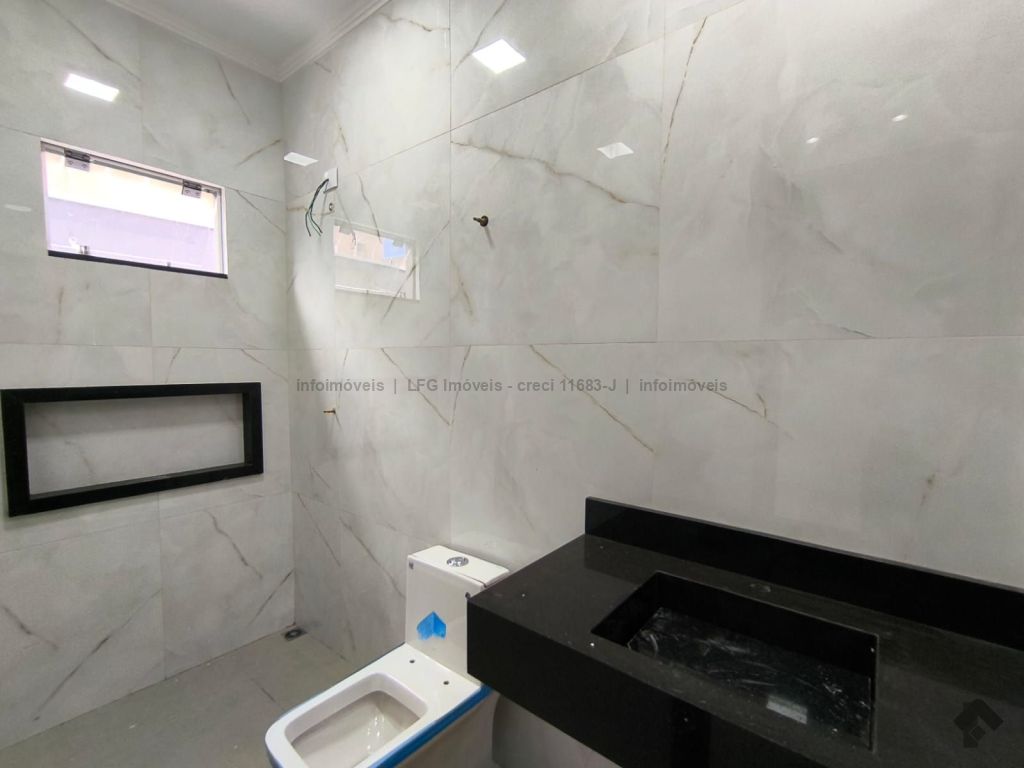 Belíssima casa com três quartos, sendo duas suítes, sala para dois ambientes, cozinha, área de serviço e garagem para dois carros.