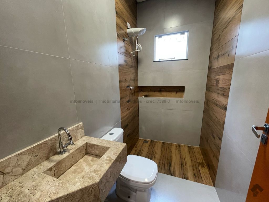Com 1 suíte aconchegante, 2 quartos adicionais, banheiro e lavabo, cada espaço foi pensado para o seu bem-estar. A lavanderia prática facilita o dia a dia. E tem mais. Com uma placa solar de 400kW, você praticamente não vai pagar conta de luz, aproveitando toda a energia do sol. A sala e a cozinha integradas com pé direito alto criam um ambiente amplo e arejado, ideal para receber amigos e familiares. E para os momentos de lazer, uma área gourmet com churrasqueira grande espera por você. A fachada com detalhes em pedra.