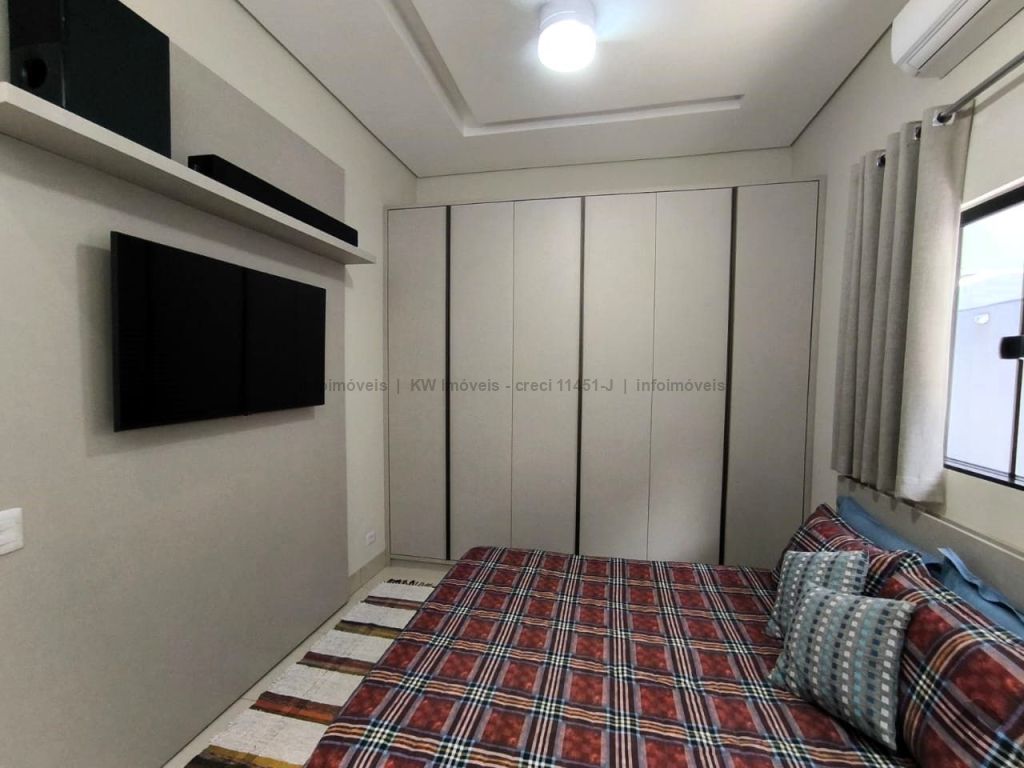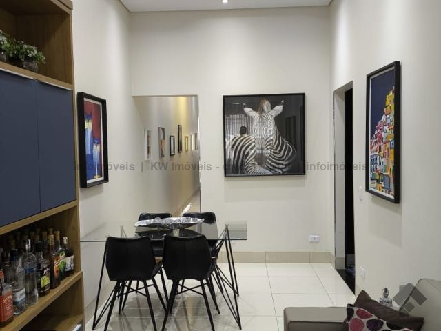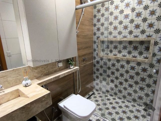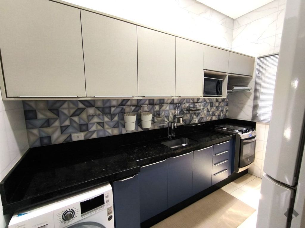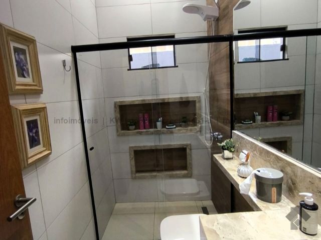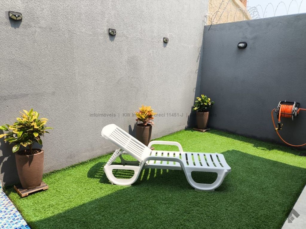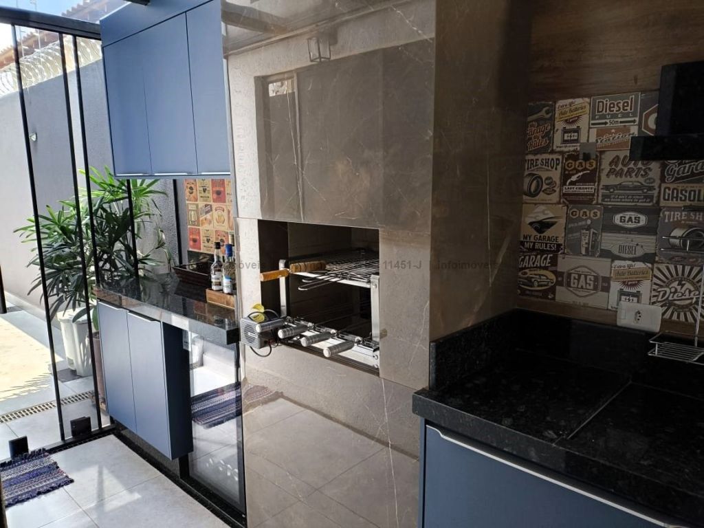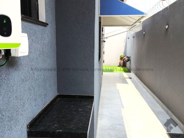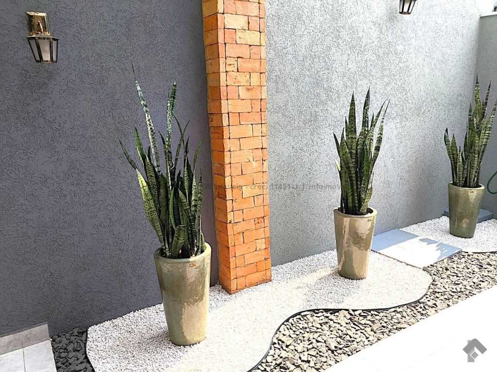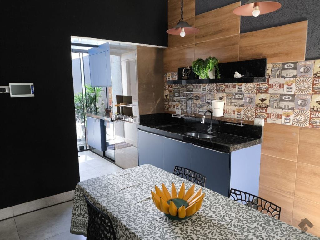 Terreno de 180 m², área construída: 105 m², 1 suíte, 2 quartos, sala de estar e jantar integradas, cozinha planejada, área gourmet com móveis sob medida, área de serviço coberta e com acabamento em granito, garagem para 2 carros com portão elétrico de elevação.