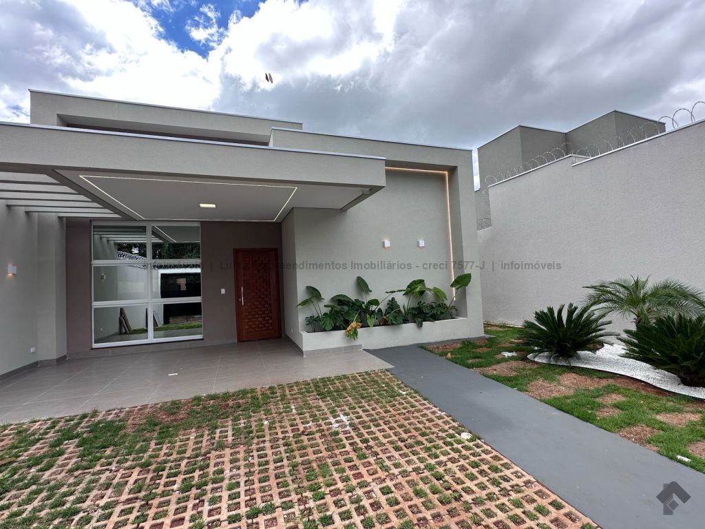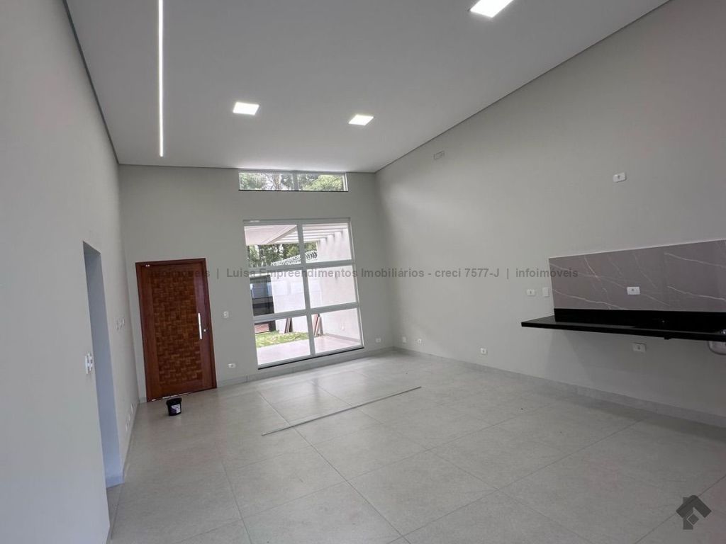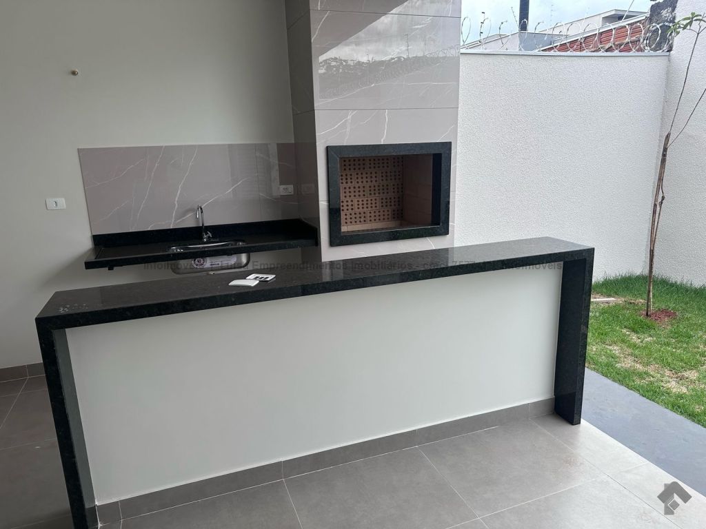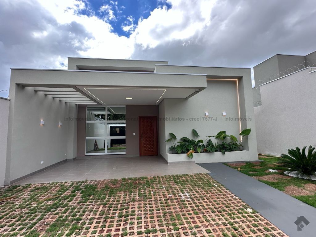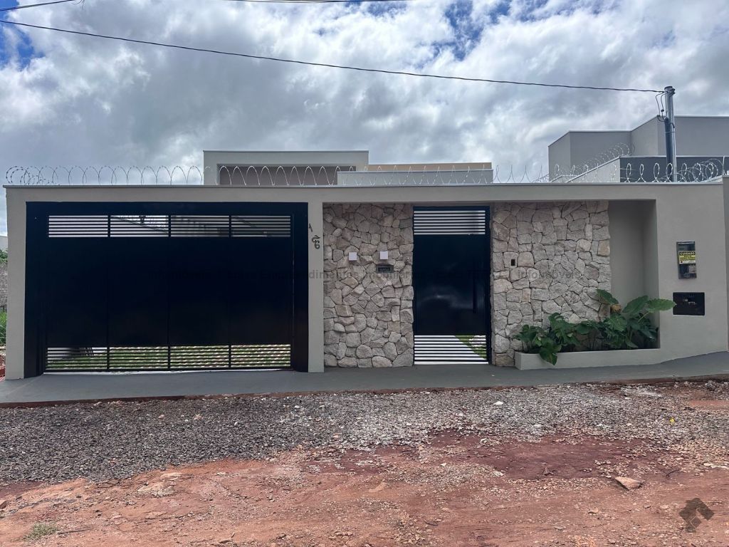 Casa térrea com lindo projeto luminotécnico e fachada moderna, área total de 250 m², área útil de 125 m², sala de estar, sala de jantar, lavabo, lavanderia, um banheiro social, cozinha, área gourmet com churrasqueira, uma suíte, dois quartos e garagem coberta para dois veículos, cozinha e varanda gourmet com churrasqueira, sala com pé direito duplo, painel solar de 400 kW, cerca elétrica com concertina, portão de elevação, a 60 metros do asfalto.