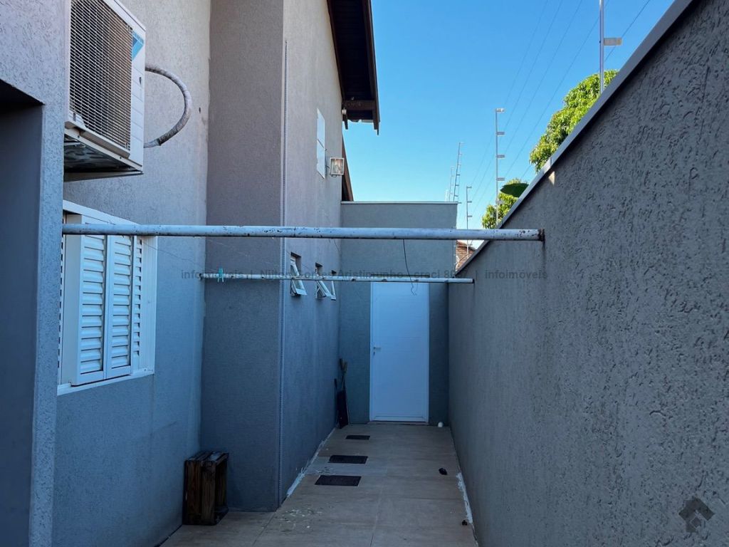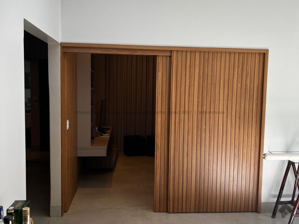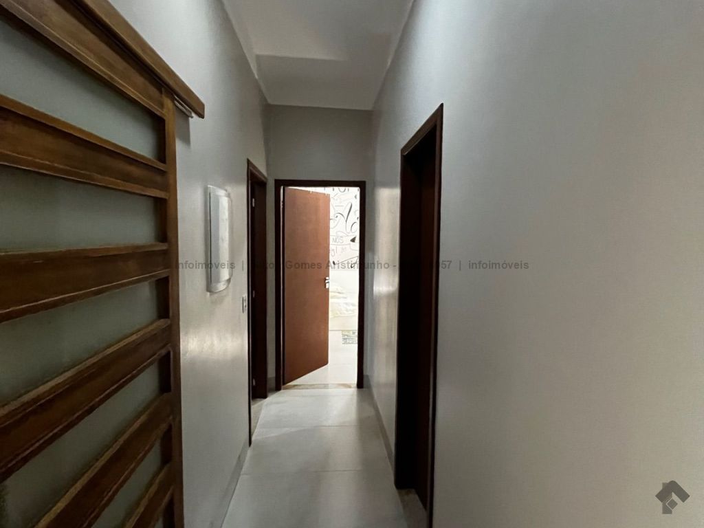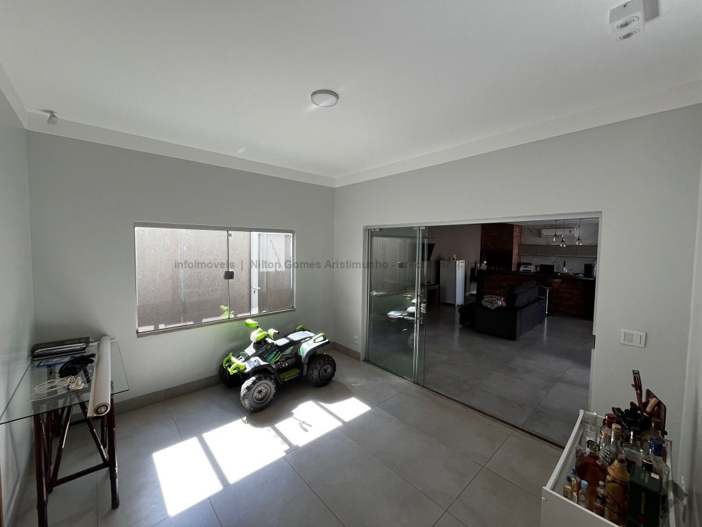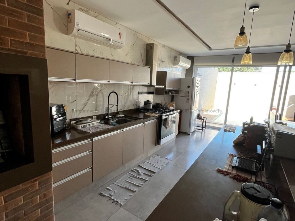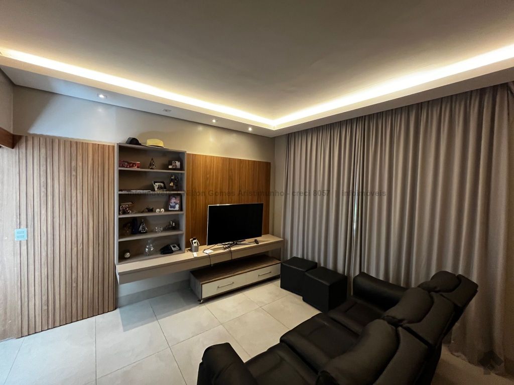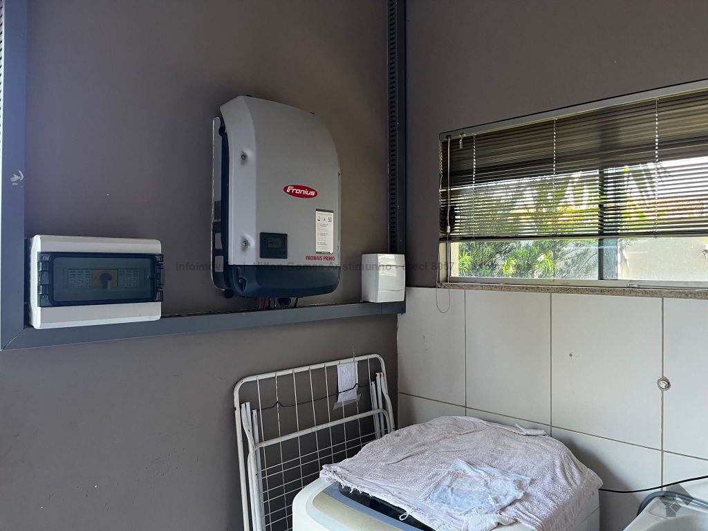 A área gourmet é completa, piscina, churrasqueira, espaço para jogos de varanda e mesa. O melhor, não precisa curtir o churrasco passando calor, pois tem fechamento em portas de vidro e dois ares condicionados. Rica em planejados, cozinha completa, sala com painel e porta de correr, quartos e área gourmet. Suíte com closet e painel, dois quartos com planejados. Com seis ares condicionados e sistema fotovoltaico, essa casa é exatamente o que você procura.