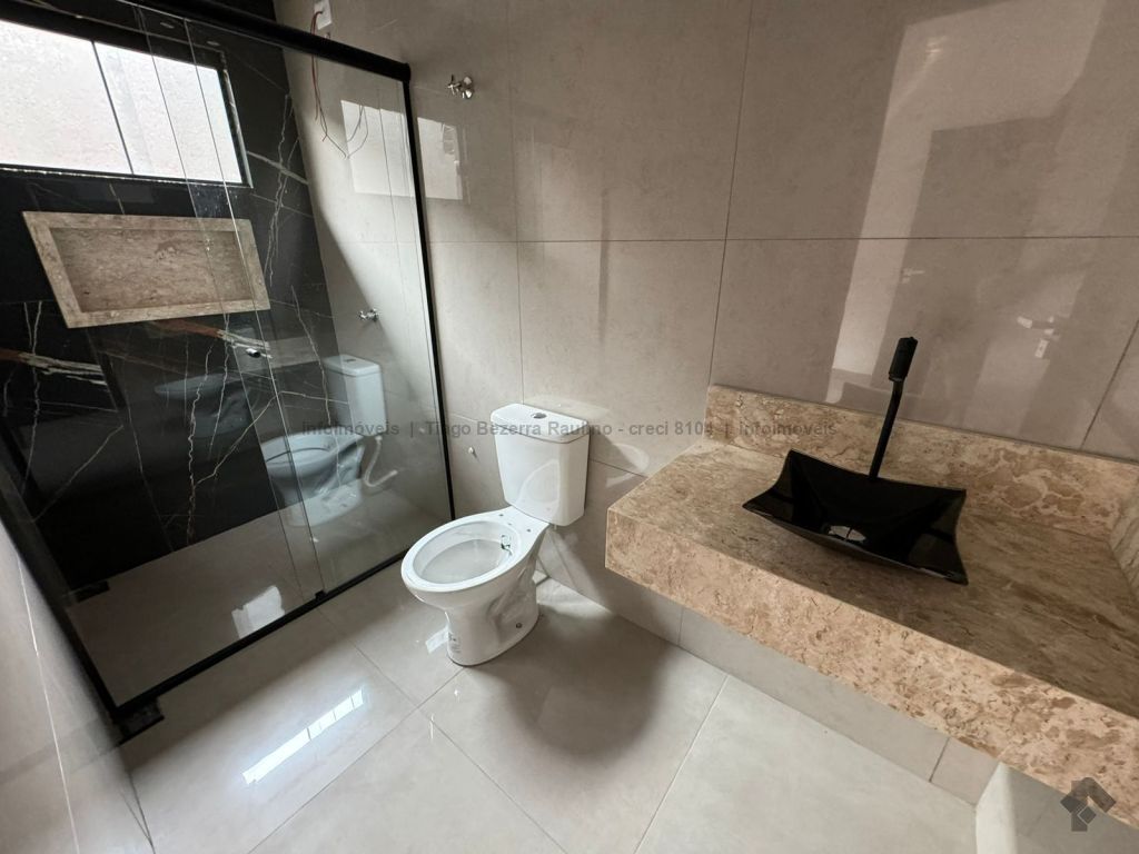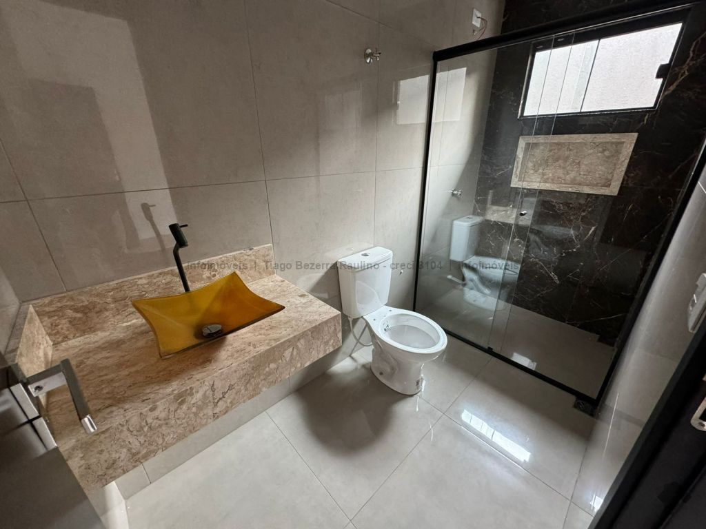Imóvel novo, com 124 m², contendo 1 suíte master, 2 suítes solteiro, sala, cozinha, banheiro, lavanderia coberta e garagem para até 2 veículos. Imóvel de laje, piso porcelanato, janelas blindex, portão de elevação sem motor e cerca elétrica.
