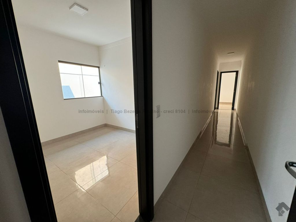 Imóvel novo, com 124 m², contendo 1 suíte master, 2 suítes solteiro, sala, cozinha, banheiro, lavanderia coberta e garagem para até 2 veículos. Imóvel de laje, piso porcelanato, janelas blindex, portão de elevação sem motor e cerca elétrica.