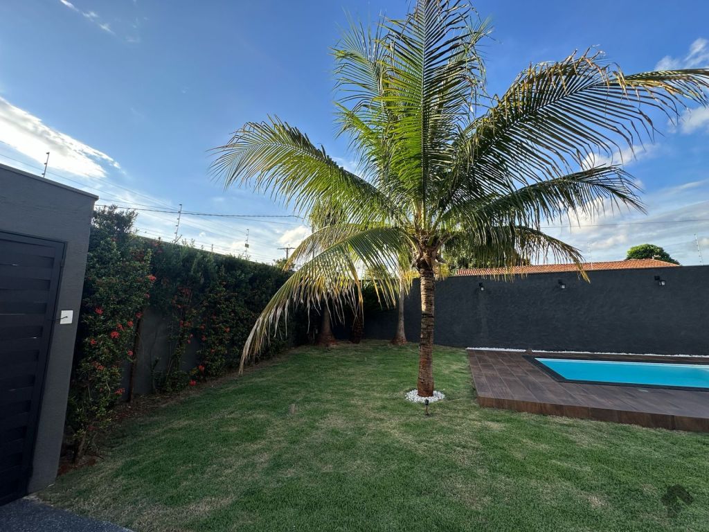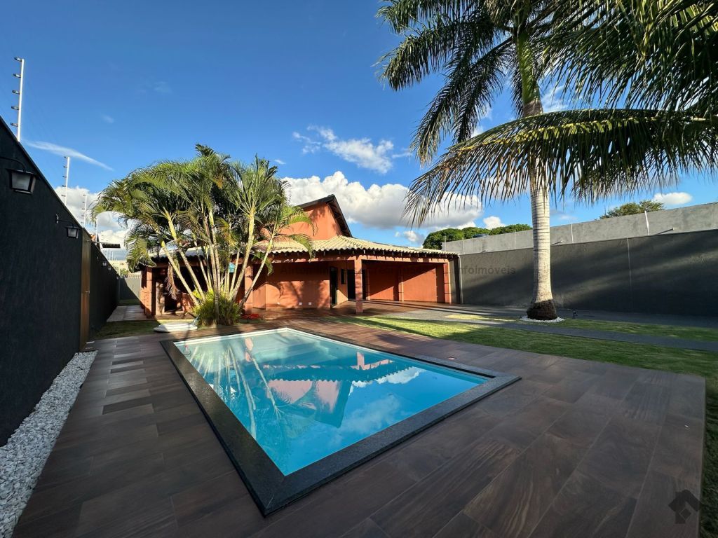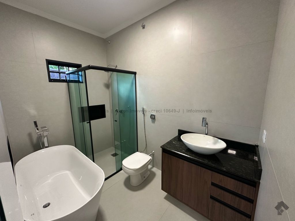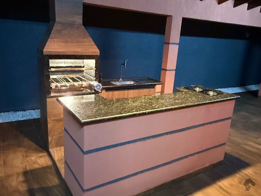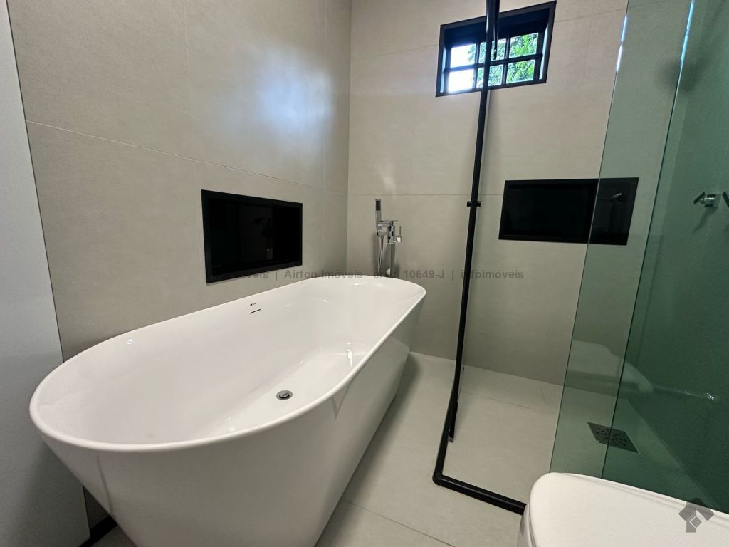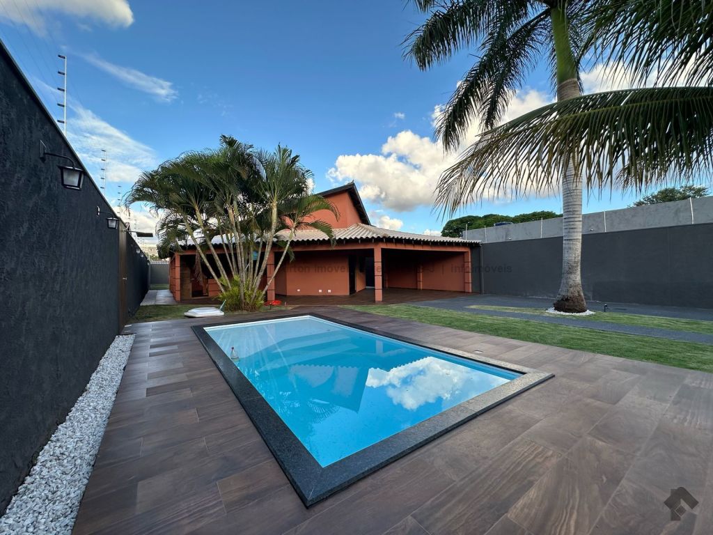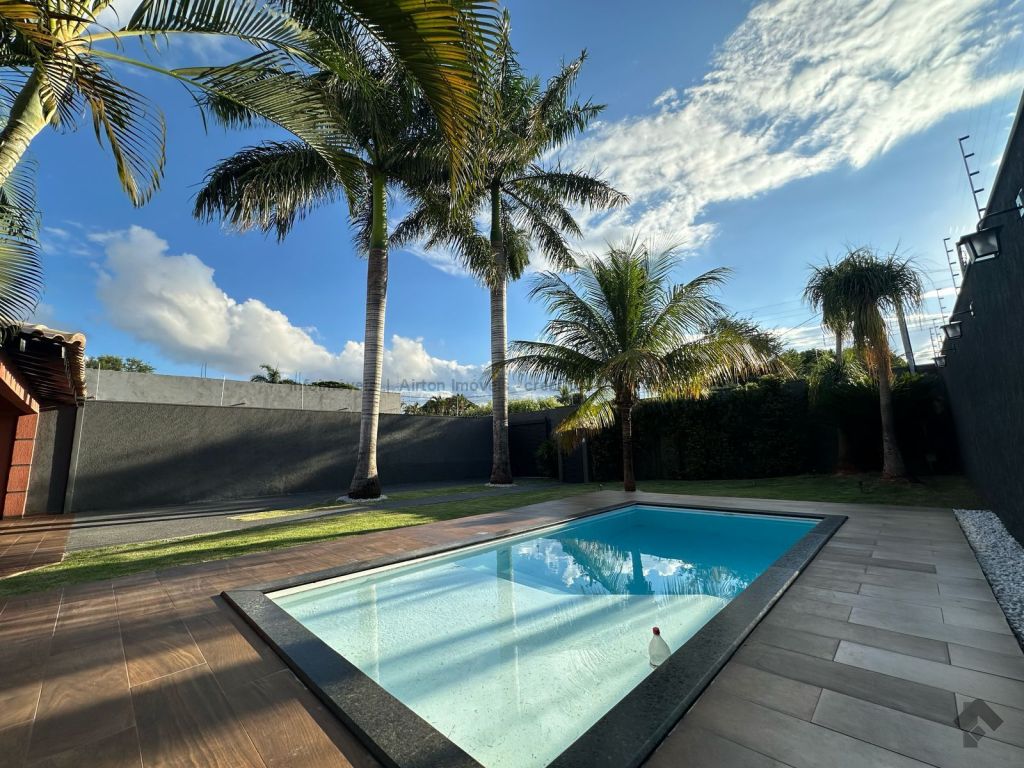 Sala de TV, sala de jantar, cozinha, 3 suítes, lavanderia, despensa, área gourmet, piscina. Possui água aquecida via energia solar nos banheiros, cozinha e área gourmet. Área construída de 221 m², mais piscina de 15 m², totalizando 236 m².