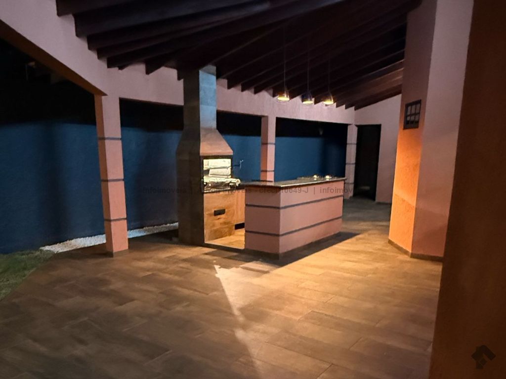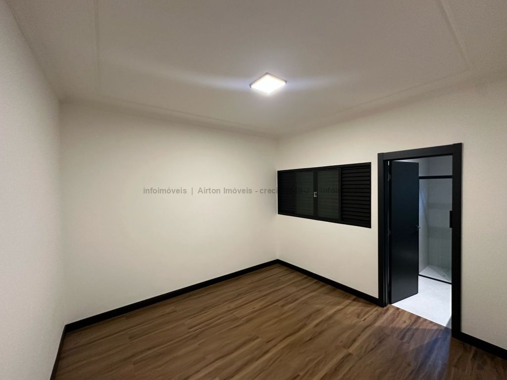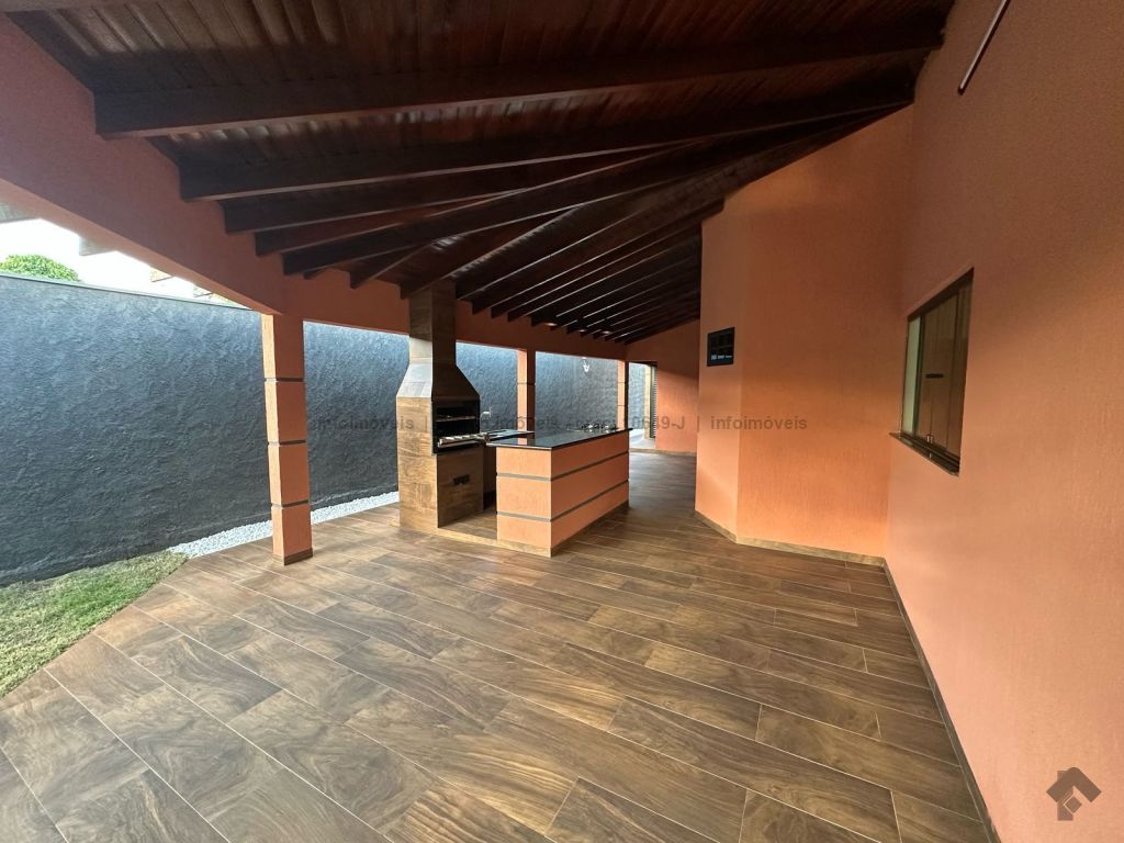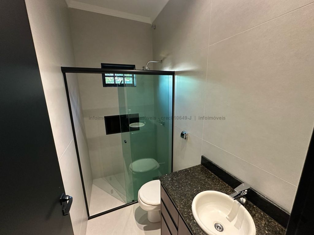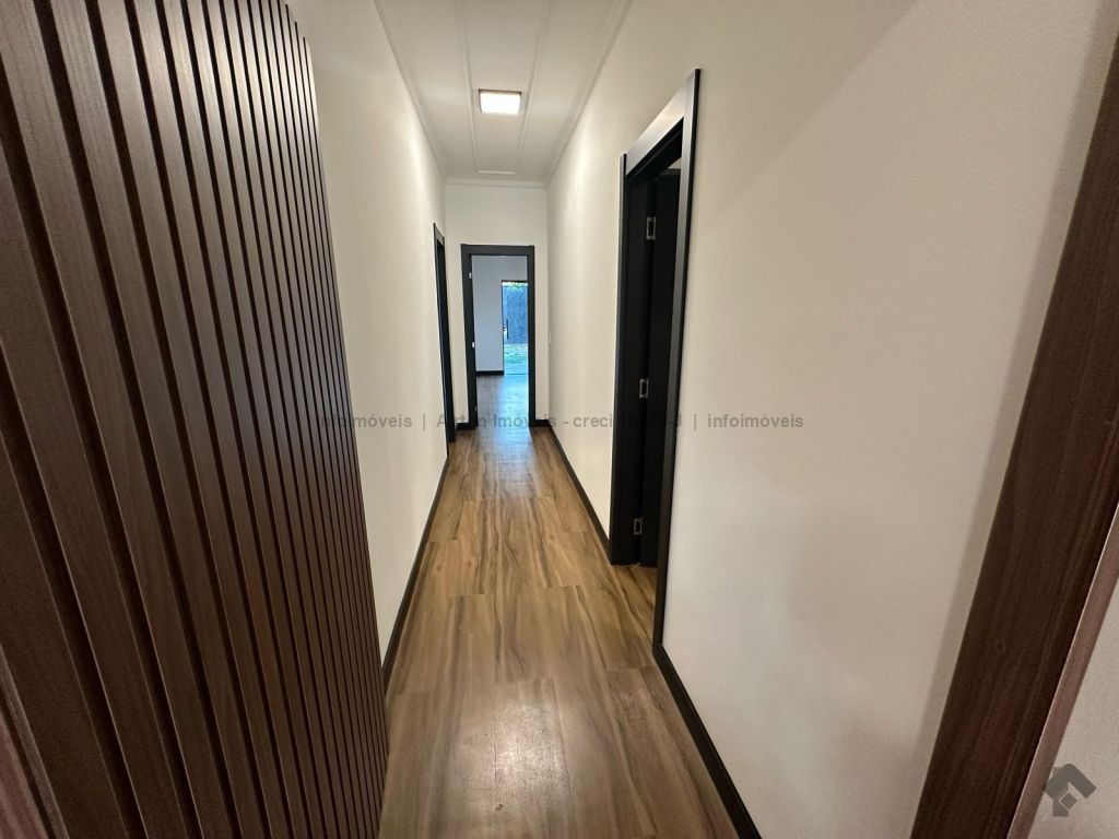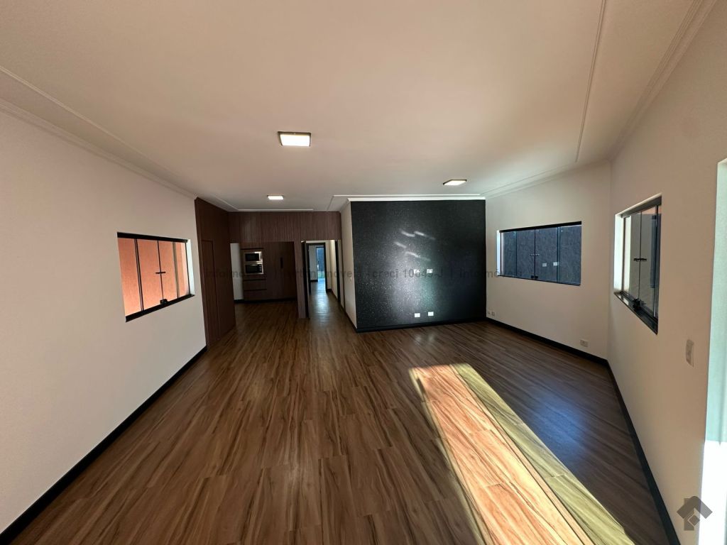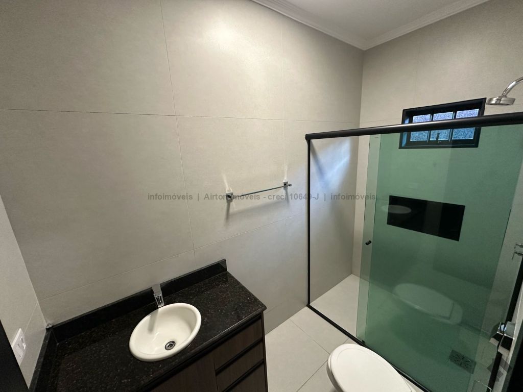 Sala de TV, sala de jantar, cozinha, 3 suítes, lavanderia, despensa, área gourmet, piscina. Possui água aquecida via energia solar nos banheiros, cozinha e área gourmet. Área construída de 221 m², mais piscina de 15 m², totalizando 236 m².