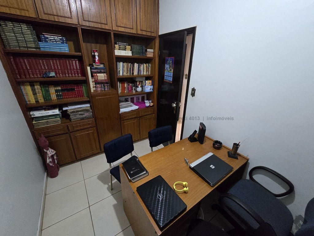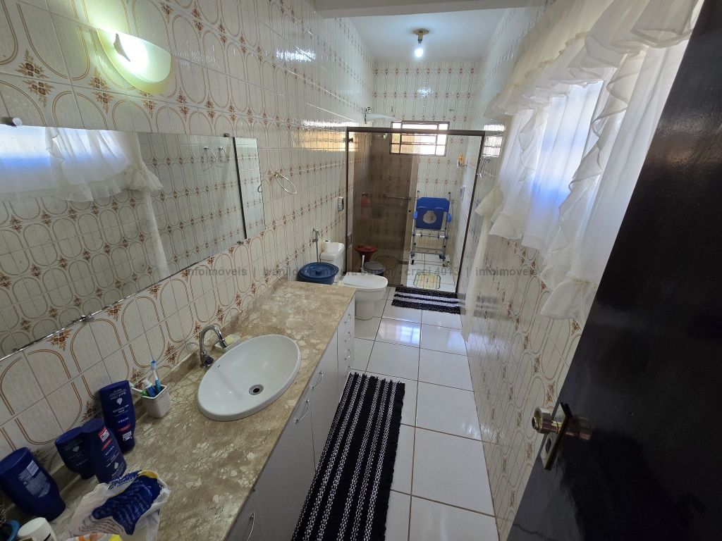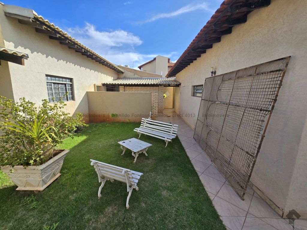Casa com uma suíte com armários, dois quartos com armários, banheiro social, escritório com armário, lavabo, sala de jantar, sala de TV, sala de estar, cozinha com armário planejado, edícula com depósito, banheiro, sala, área gourmet completa, garagem para carros cobertos, jardim, portão com motor de elevação, pé direito alto, toda de laje.