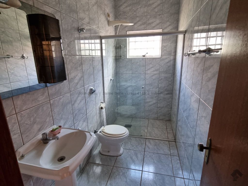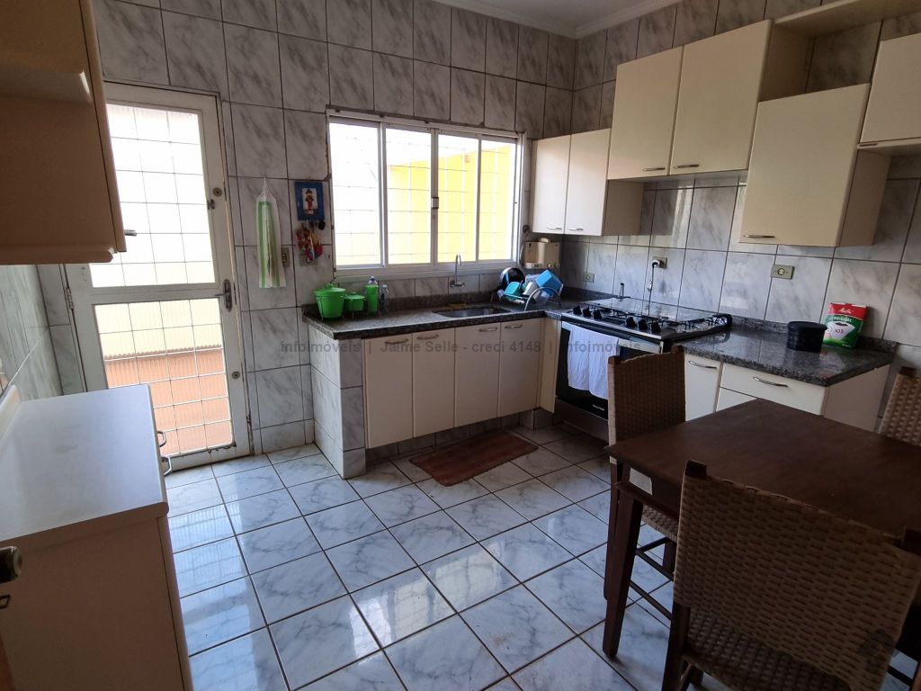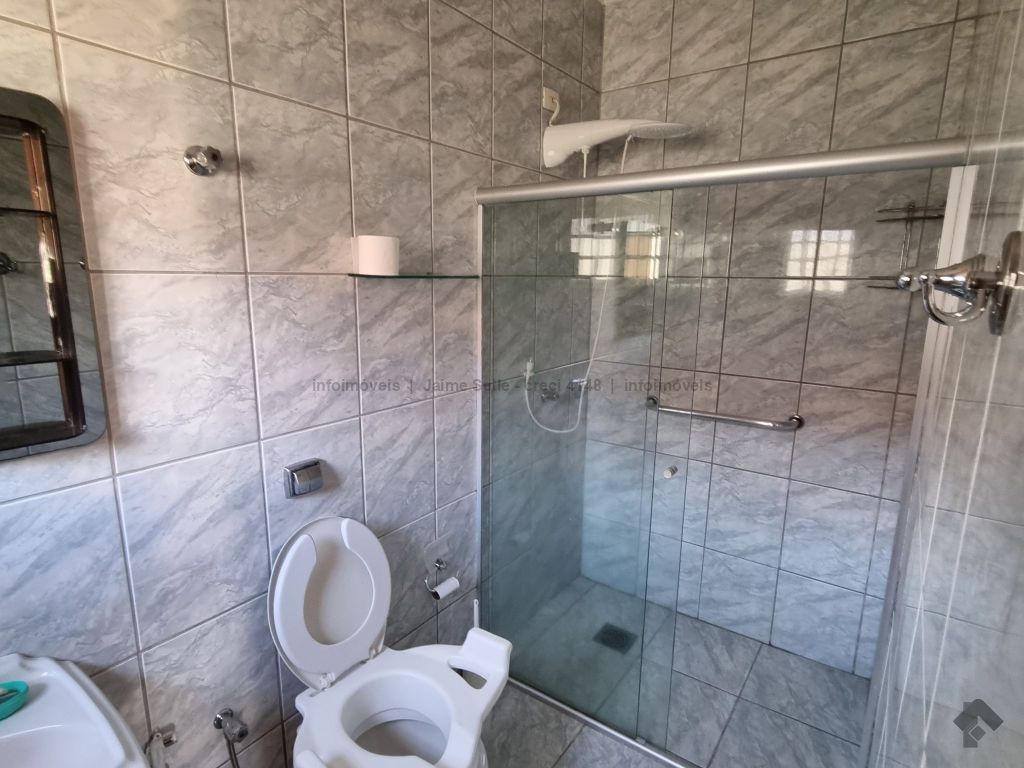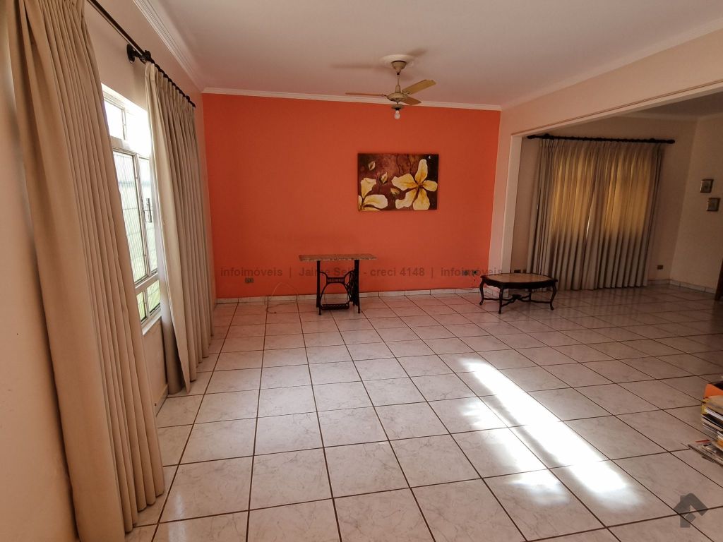 Garagem para cinco carros, sala com dois ambientes, lavabo, cozinha, área de serviço, banheiro social com blindex, dois apartamentos, um quarto, depósito, edícula com quarto e banheiro.