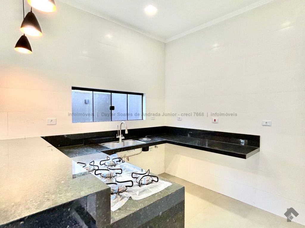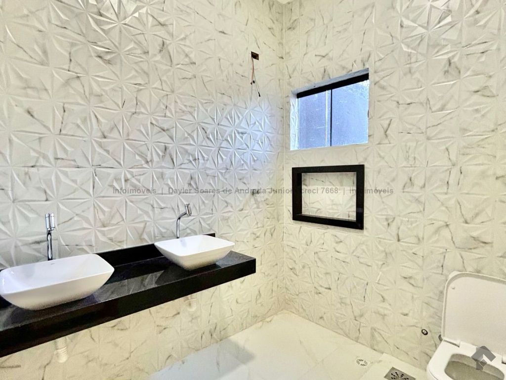 Casa nova com excelente acabamento, imóvel conta com um ambiente integrado de sala de TV, sala de jantar, cozinha e área com churrasqueira. Nesta bela casa você contará também com um lavabo para atender as visitas, banheiro social, 03 quartos sendo 01 suíte.