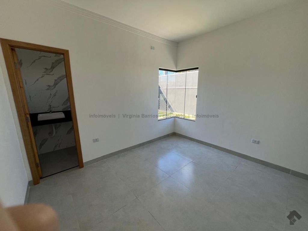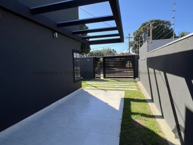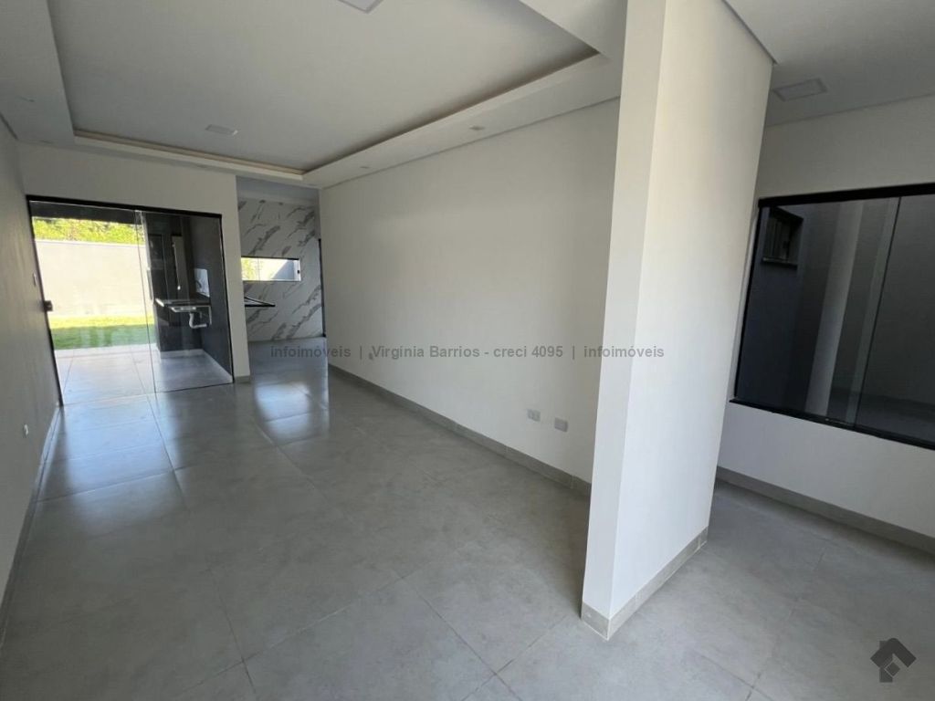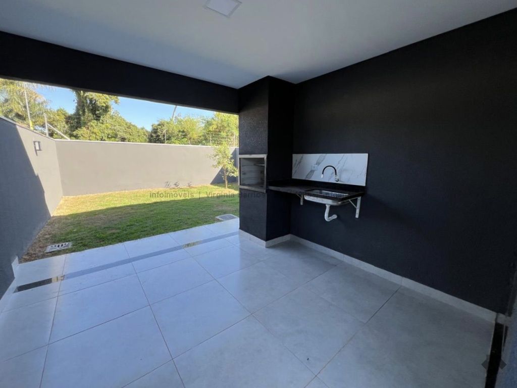 Com belíssimo acabamento, a casa dispõe de sala integrada à varanda gourmet, cozinha, 1 suíte + 2 quartos, banheiro social, garagem para até 3 veículos e excelente quintal para jardim ou futura construção de piscina. Pé direito alto, rodapés embutidos, iluminação em LED, com rebaixamento de gesso, rico em vidros e pedras, com interfone, cerca elétrica e centrais independentes de concertina.