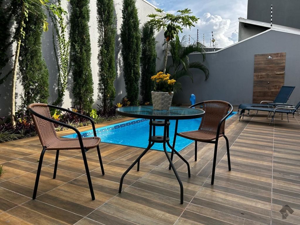 Lindíssima casa com uma garagem espaçosa para 02 carros, uma sala ampla em dois ambientes com pé direito alto. São três quartos bem distribuídos e privativos, incluindo uma suíte, garantindo conforto e privacidade para toda a família. A cozinha é ampla, perfeita para quem aprecia praticidade no dia a dia. A área de lazer conta com uma piscina e um paisagismo lindíssimo, ideal para momentos de relaxamento. A casa ainda dispõe de uma lavanderia coberta e um banheiro exclusivo para a área.