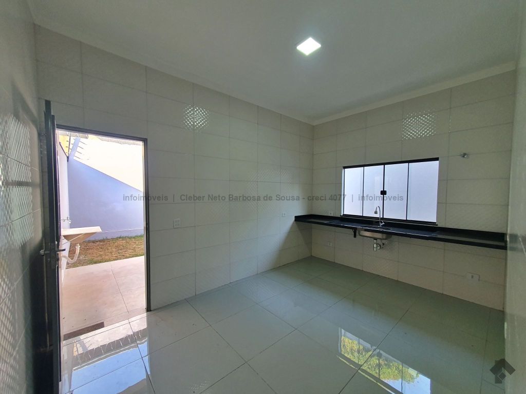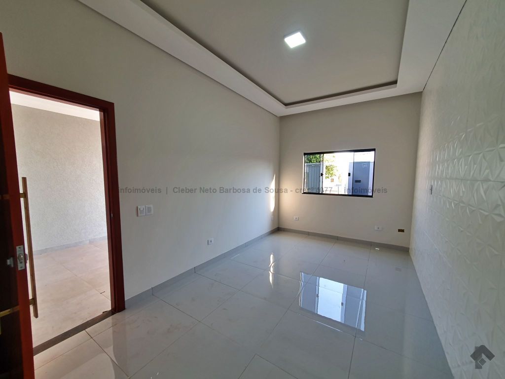 Excelente opção de imóvel, são 03 dormitórios (sendo uma suíte), sala ampla com sanca em gesso, cozinha individual toda azulejada e com saída para área gourmet, banheiro social, área de serviço coberta, garagem para até 3 carros, espaço aos fundos para futuras instalações, calçada e asfalto.