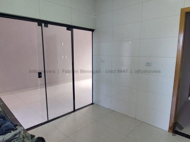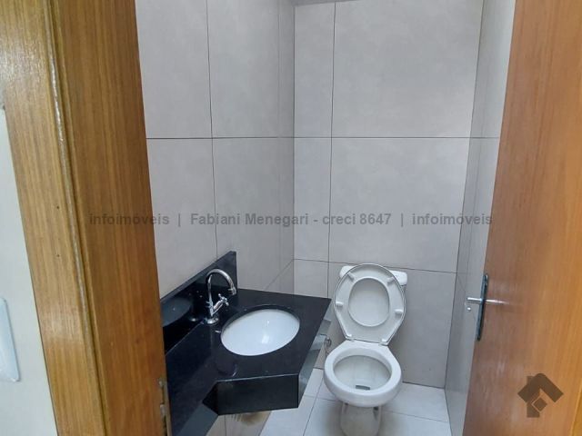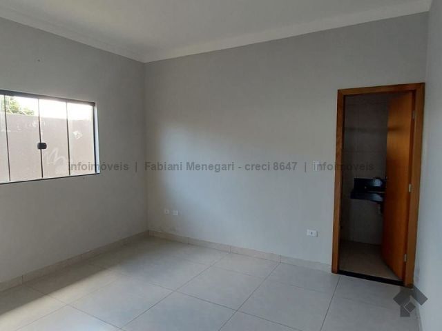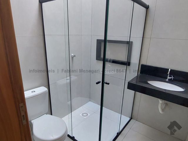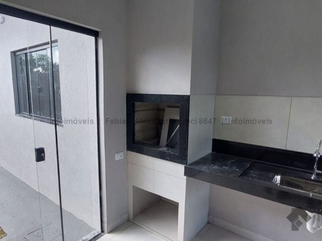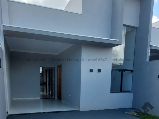 Tamanho de 106 m², três quartos, sendo um suíte, sala com pé direito duplo, cozinha ampla, banheiro para os dois quartos, espaço gourmet com churrasqueira e lavabo, garagem para um carro coberto e dois descobertos, área total de 180 m².