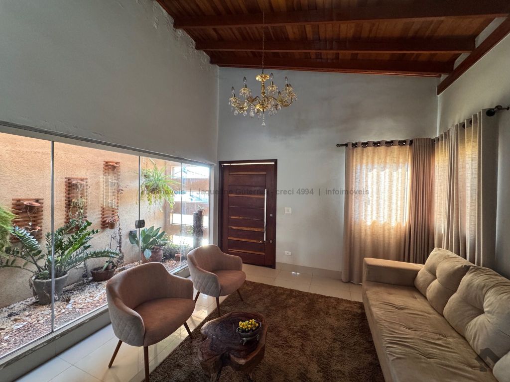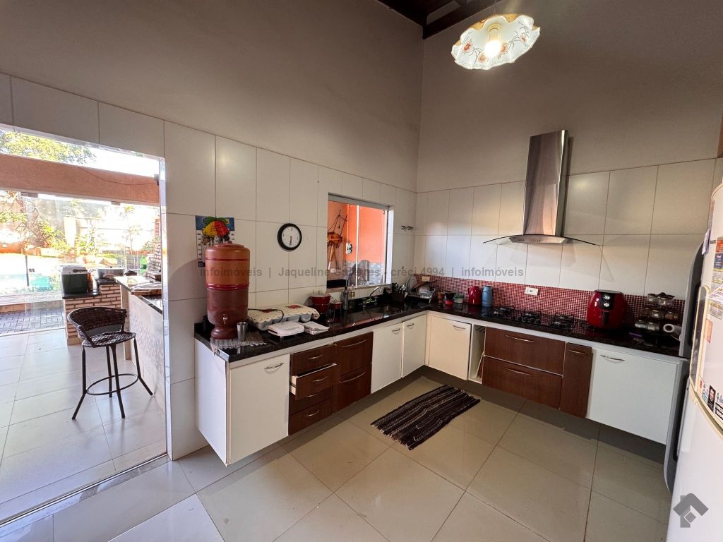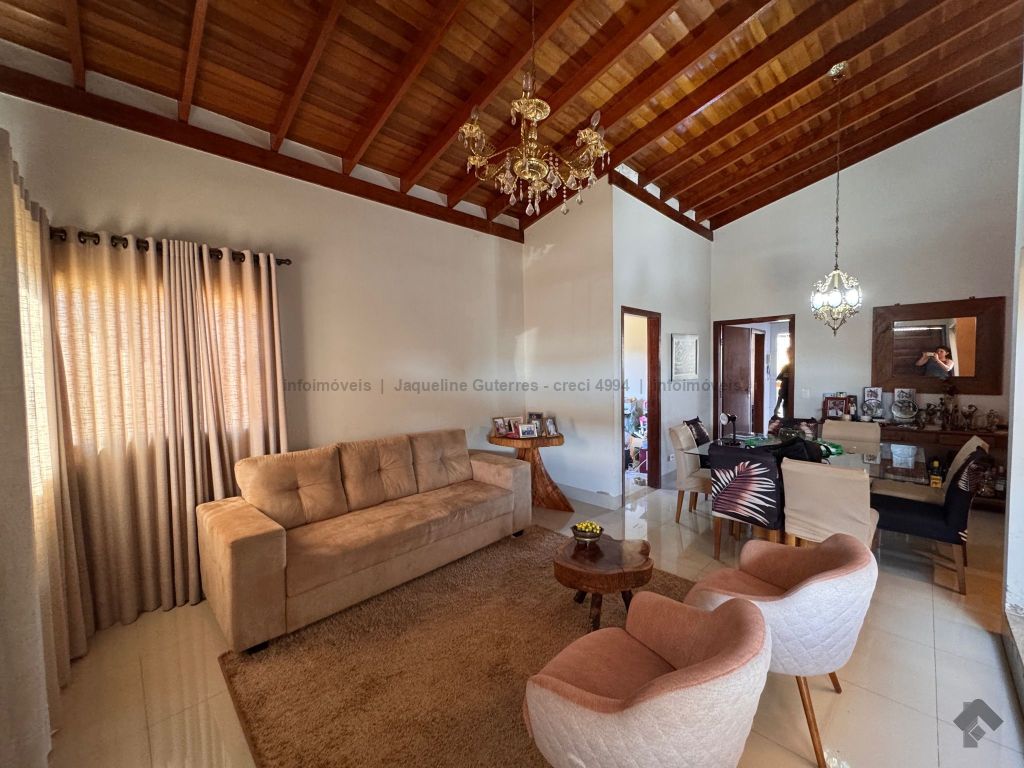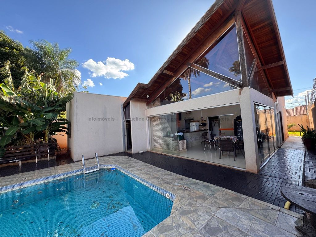 Possui 1 suíte, 1 quarto, banheiro social, escritório, sala de estar e jantar, cozinha planejada, anexa à ampla área gourmet, e cômodo anexo com quarto e banheiro que pode ser uma suíte, piscina ampla e quintal. Imóvel com muito madeiramento na garagem, sala e área gourmet. Está com energia fotovoltaica.