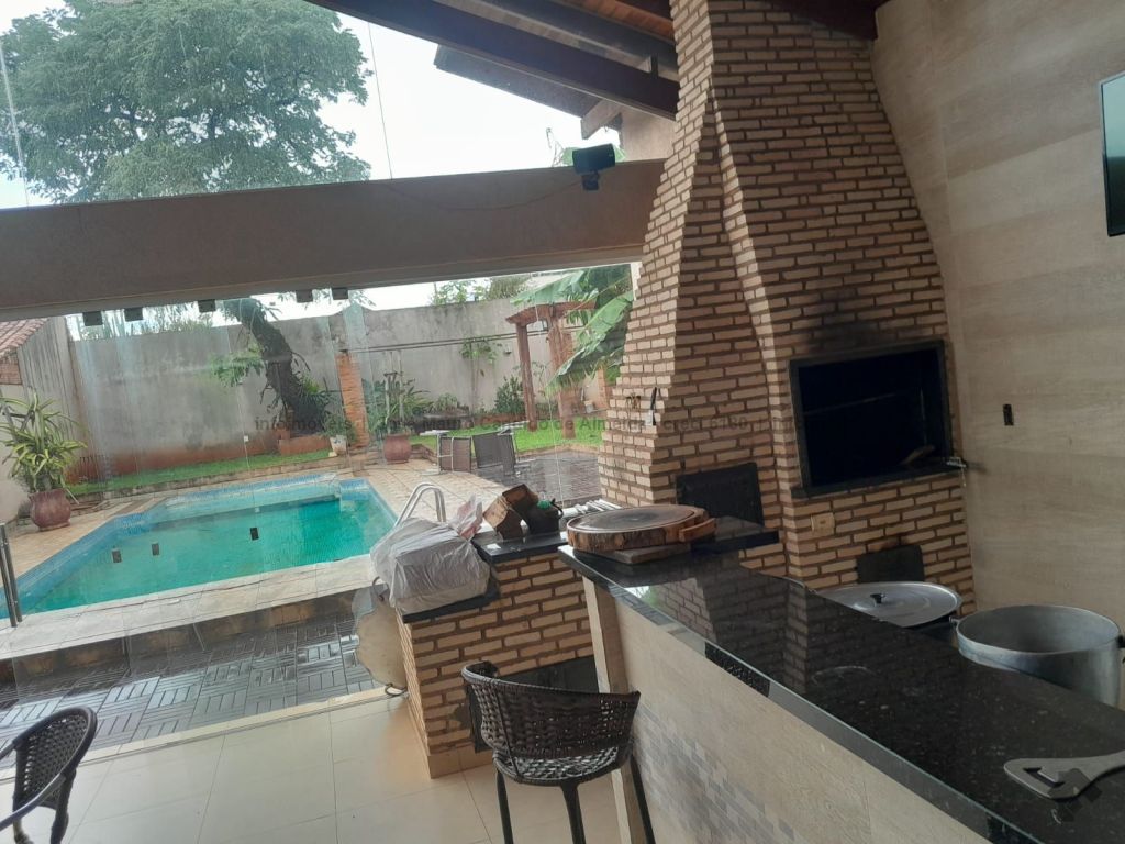 Excelente imóvel contendo 2 suítes, sendo uma com armário planejado, 2 quartos com armários planejados, cozinha com armário planejado, sala de jantar, sala de TV, sala de estar, jardim de inverno, banheiro social, escritório, área de serviço, espaço gourmet com banheiro e churrasqueira, piscina, pergolado, garagem coberta para 2 veículos e portão de elevação automatizado.