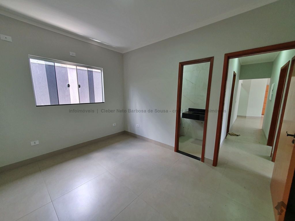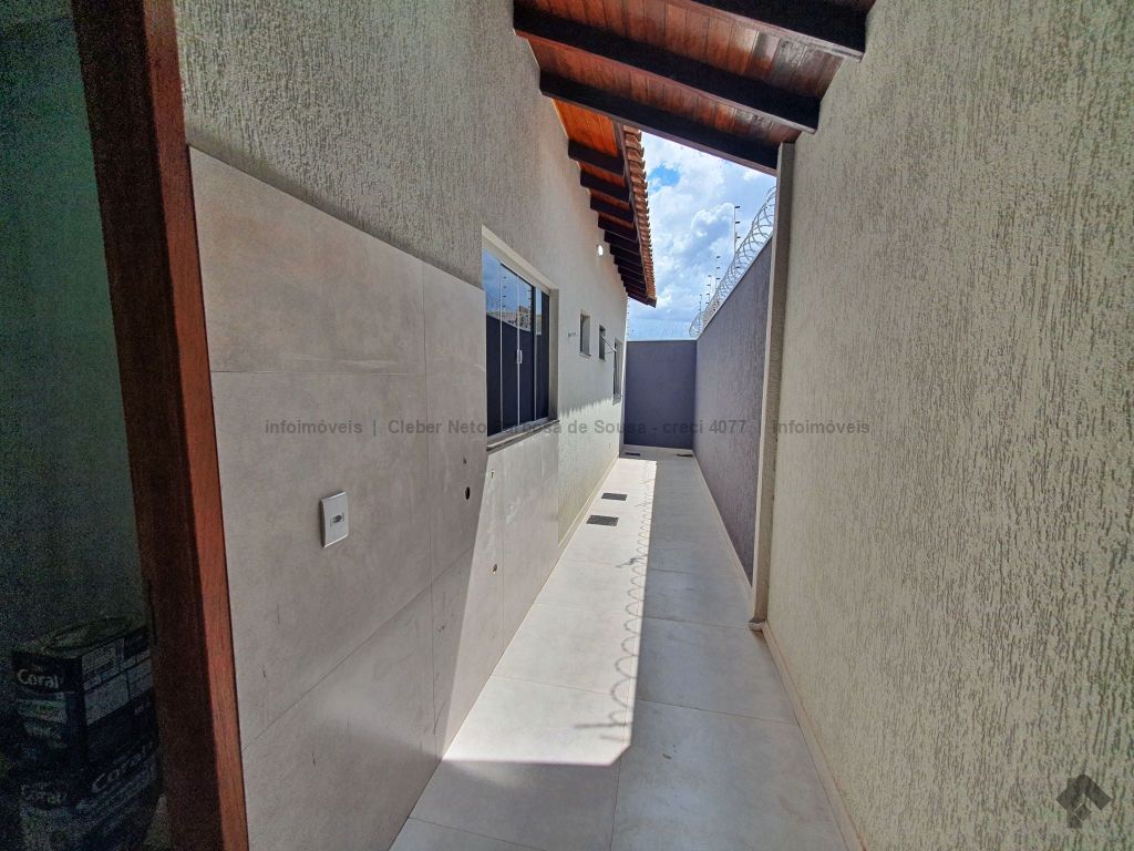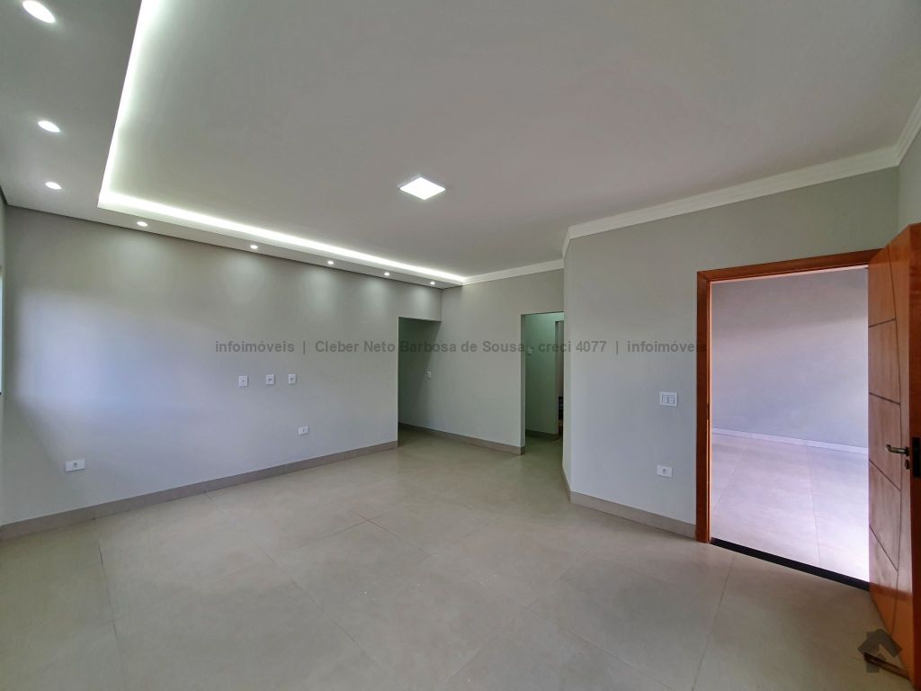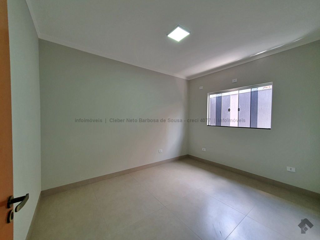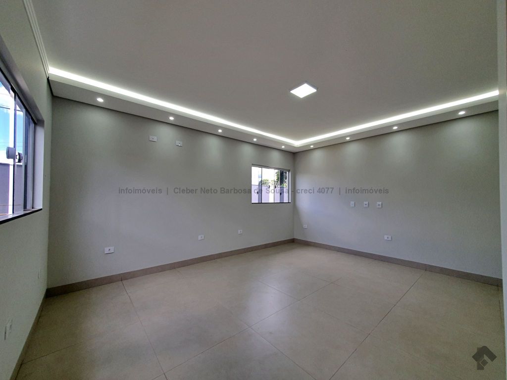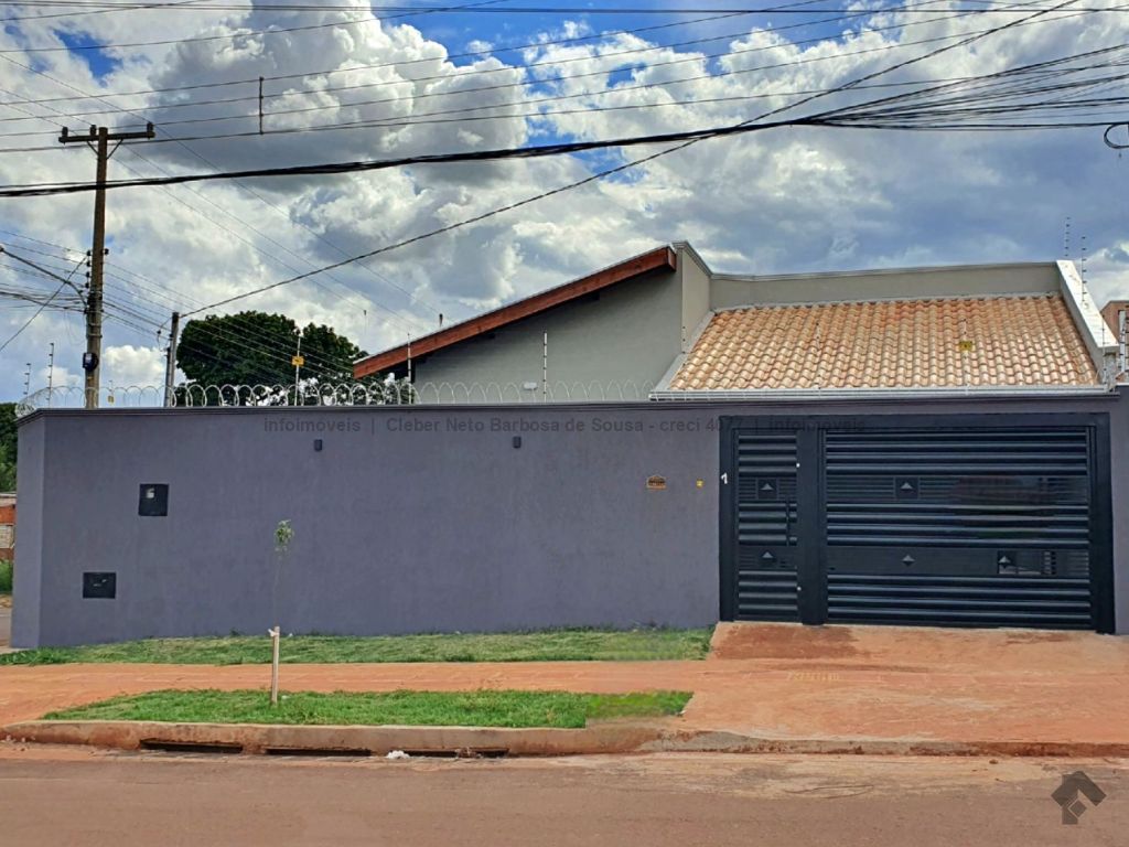 Imóvel com excelente acabamento, sala para dois ambientes, cozinha individual, três dormitórios sendo duas suítes, banheiro social com pia esculpida, área de serviço coberta, iluminação toda em LED, garagem coberta para até dois carros, cerca elétrica e concertina, espaço na lateral para futuras instalações.