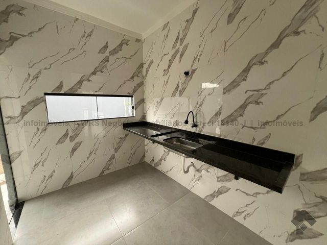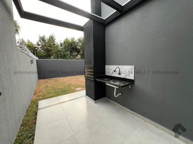 Casa nova, com lindo projeto e bom espaço, composta de sala para dois ambientes, jardim de inverno, espaço gourmet sem cobertura, churrasqueira e pia auxiliar, quintal amplo com gramado, cozinha separada, lavanderia, vaga para até três carros pequenos. Na área íntima, possui três quartos, sendo um suíte, banheiro social, interfone e cerca elétrica.