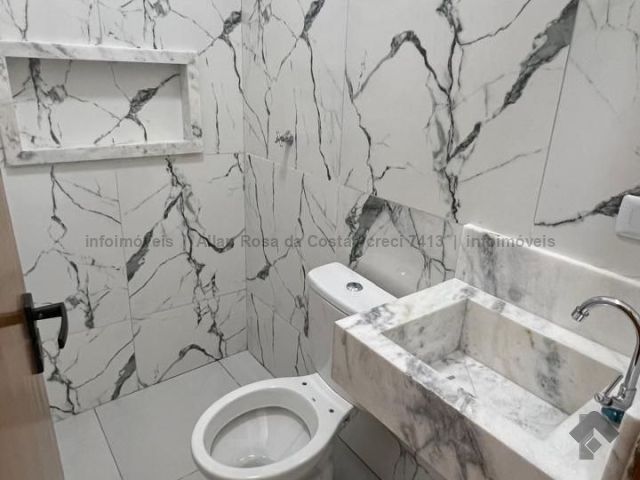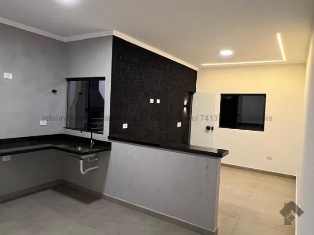 Projeto moderno, piso de porcelanato, sendo uma suíte e mais um quarto, garagem para dois carros, área gourmet.