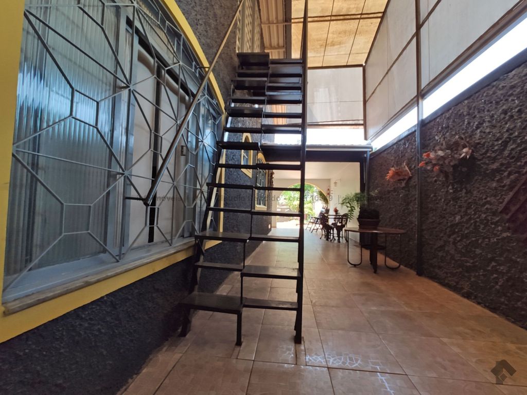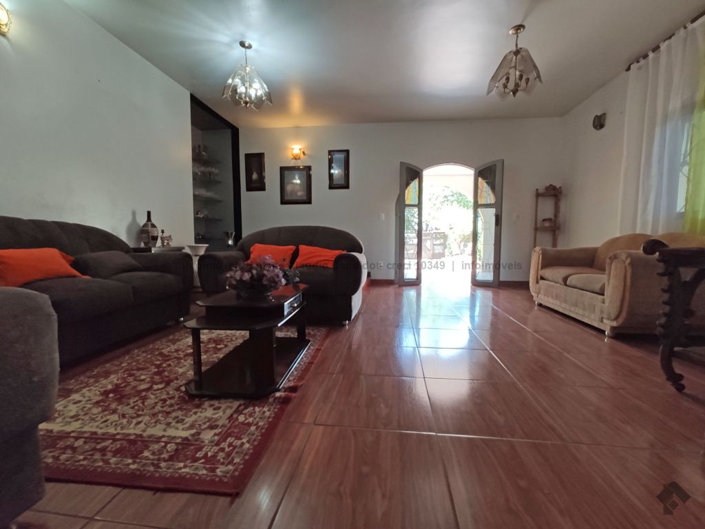 Sala de estar, lavado, sala de jantar, cozinha com armários, quarto de empregada com banheiro, escritório, 01 suíte com guarda roupa embutido, 02 quartos, Wc social e uma edícula completa.