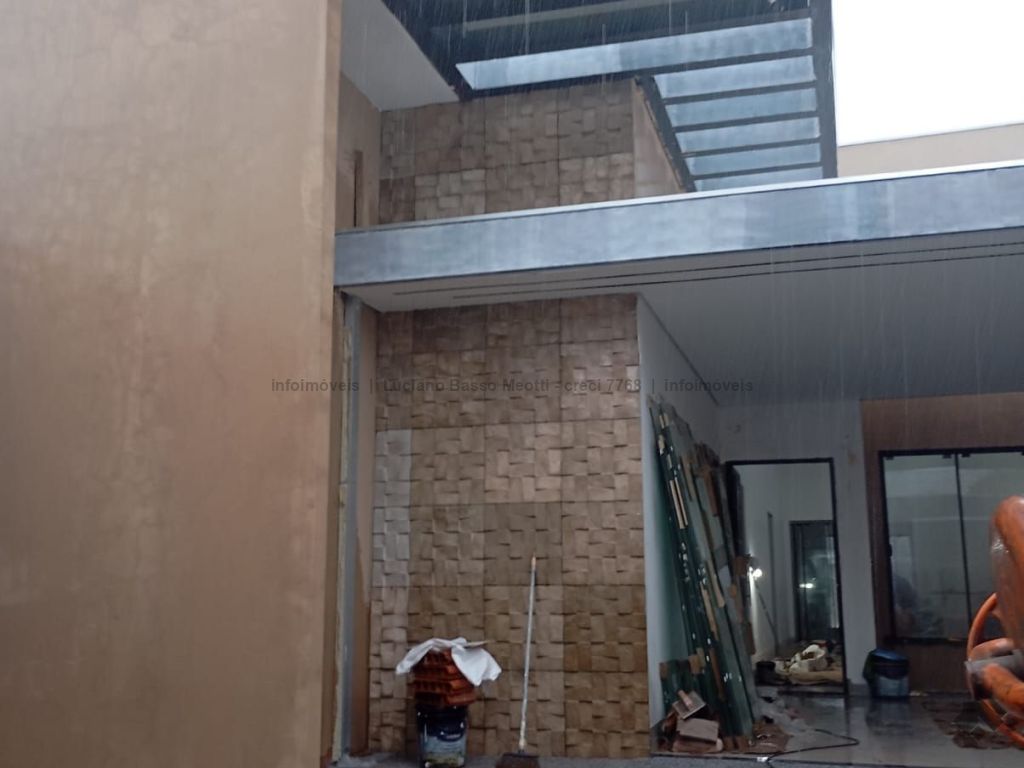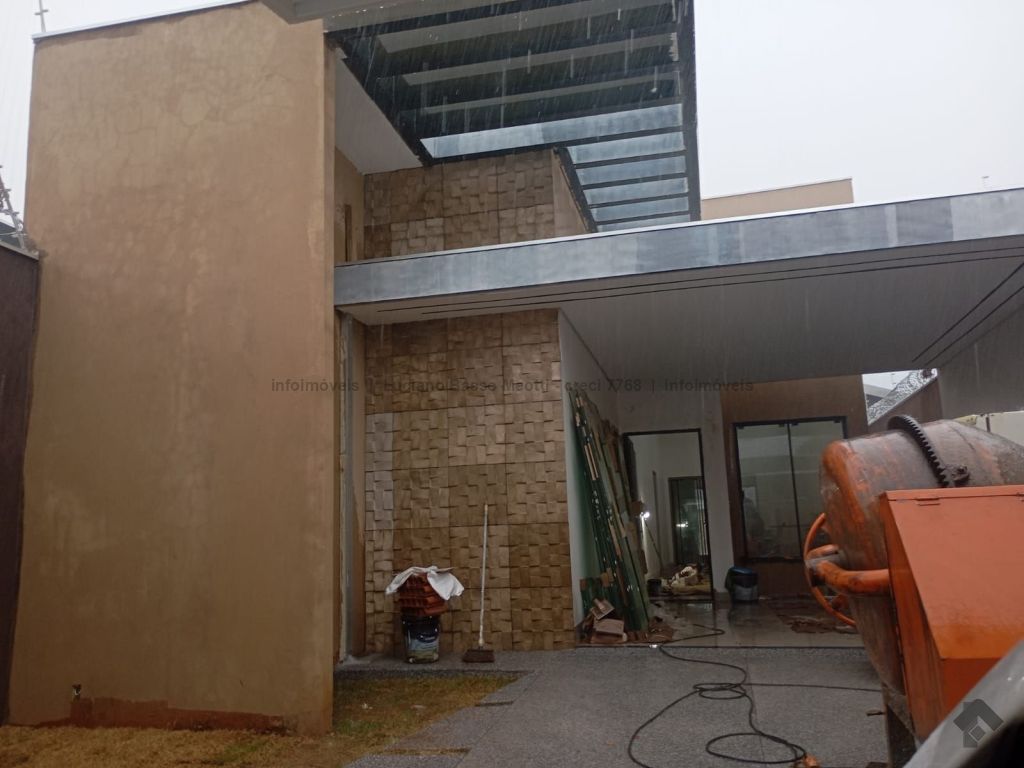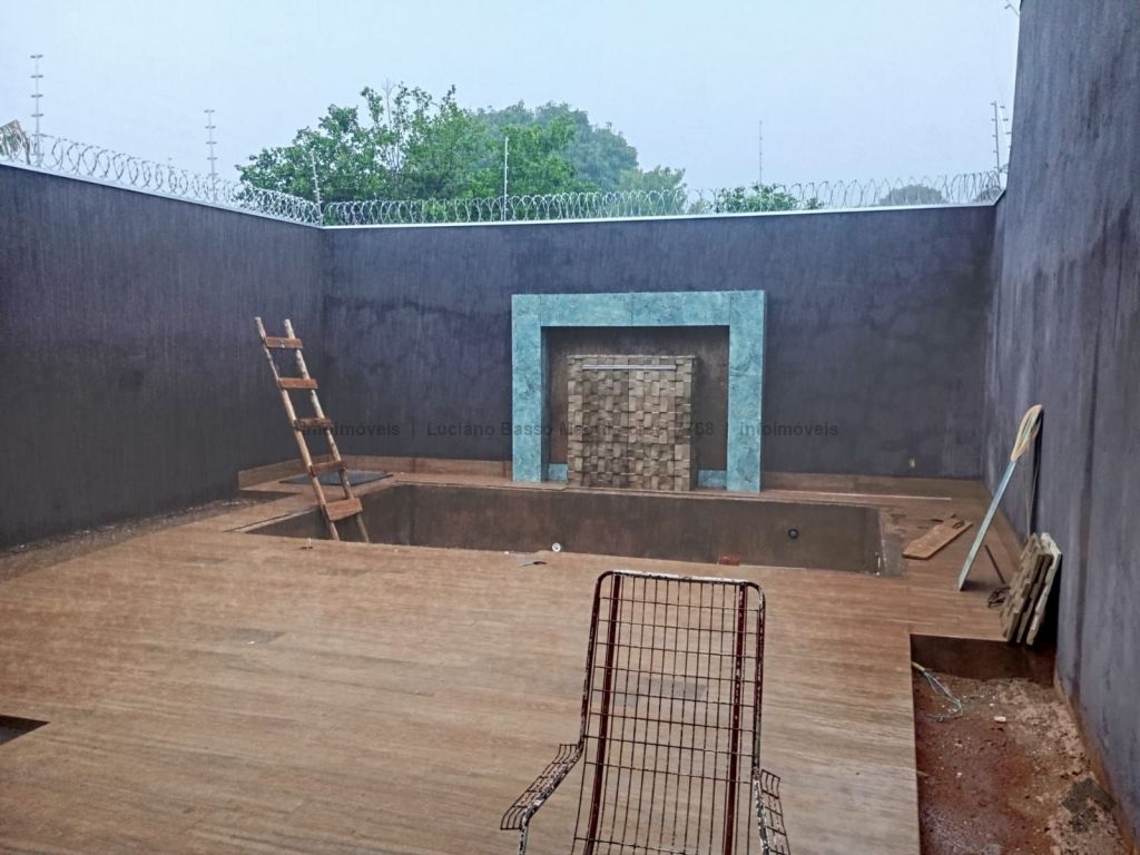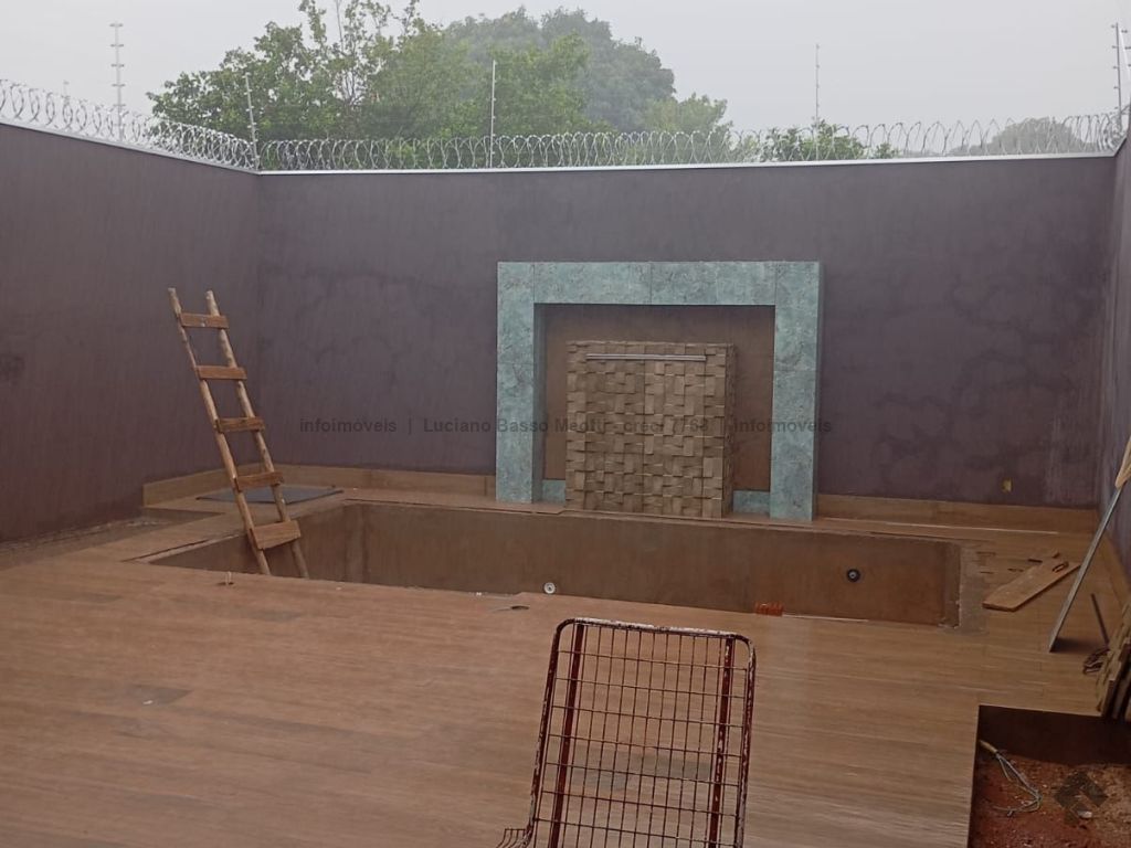 Sala ampla com pé direito alto, sanca, iluminação de LED e fechadura eletrônica. Jardim de inverno nos quartos. 3 quartos sendo uma suíte com closet. Cozinha estilo americano com pia e bancada em mármore. Espaço gourmet bem amplo com pia e ilha em mármore, todo revestido com porcelanato preto. Lavabo externo. Lavanderia coberta e fechada. Piscina ampla aquecida com cascata e hidro. Corredor lateral. Alto padrão de acabamento, água aquecida nas torneiras e chuveiros. Piso e revestimento de primeira linha, cerca elétrica, concertina, alarme e motor de elevação.