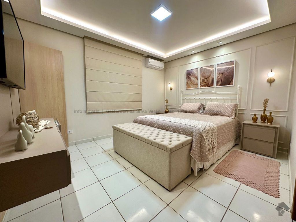 Casa térrea no Vilas Boas, porteira fechada, com 360 m² de área total e 184,93 m² de área construída. Hall de entrada, três quartos, sendo um suíte com closet na parte interna e um suíte no fundo, todos com ar condicionado. Sala de TV ampla com sanca e iluminação em LED, painel de TV retroiluminado. Cozinha toda planejada e montada, banheiro social, escritório, despensa, quatro vagas de garagem. Espaço gourmet amplo, todo fechado e planejado, com blindex, ilha, pia em mármore, churrasqueira e ar condicionado. Sobra de quintal para piscina e estrutura para carregamento de carro elétrico. Observação: imóvel usado, porém impecável, em ótimo estado de conservação.