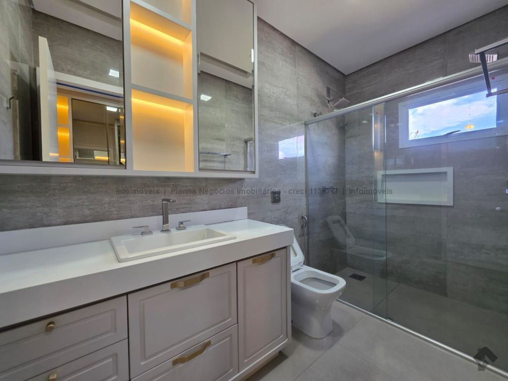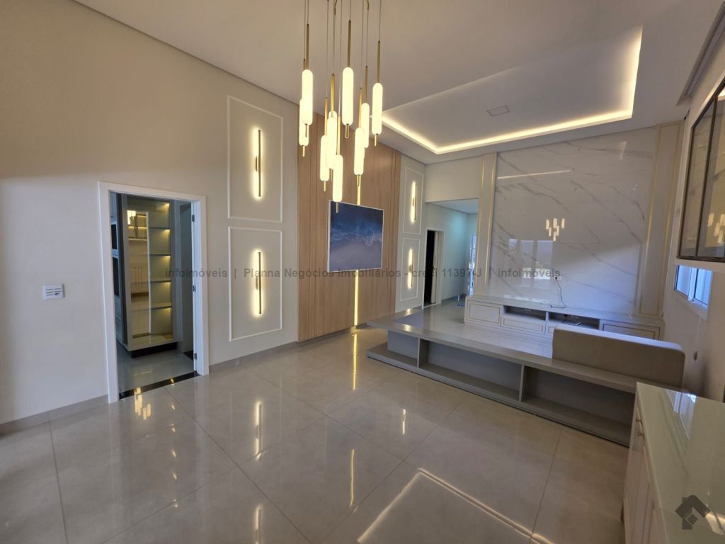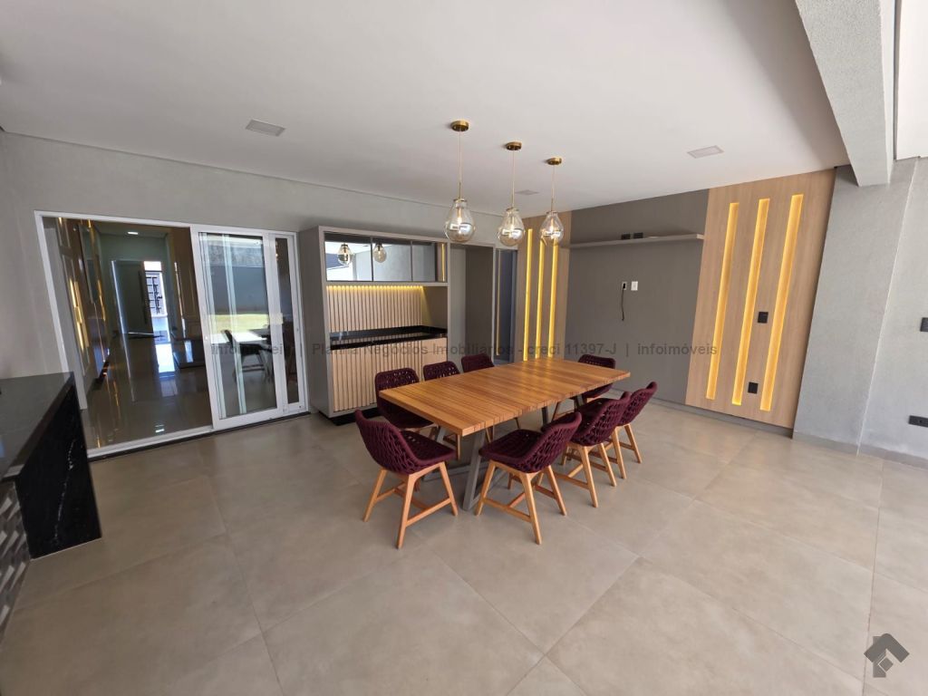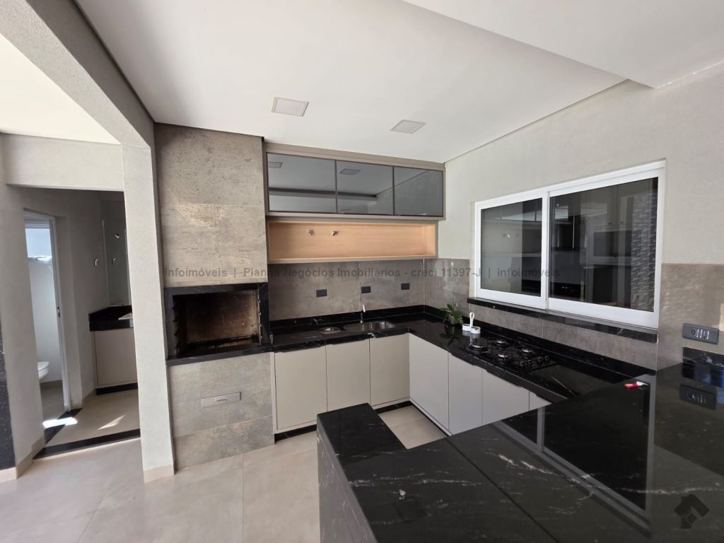 Linda casa com muito requinte e qualidade construtiva, sendo três suítes com planejados, mais um quarto ou escritório, sala ampla para dois ambientes com planejados e painel, cozinha ampla com planejados, cristaleiras, eletrodomésticos, espaço gourmet amplo com balcão, churrasqueira e muito espaço aos fundos, quatro vagas de garagem, energia solar, sistema fotovoltaico, sistema de segurança com várias câmeras, ar-condicionado em todos os ambientes.