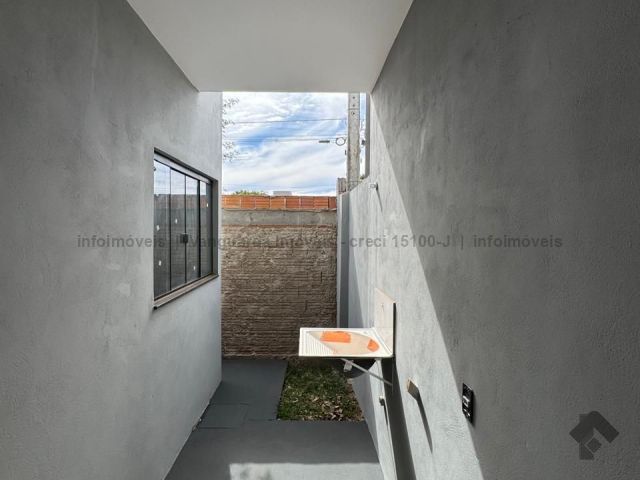 Terreno: 110 m², construção: 57,91 m², 2 quartos, 1 sala de estar, 1 banheiro social, cozinha americana, lavanderia, estacionamento. Diferenciais: casa nova, acabamento em porcelanato, laje e platibanda, imóvel murado.