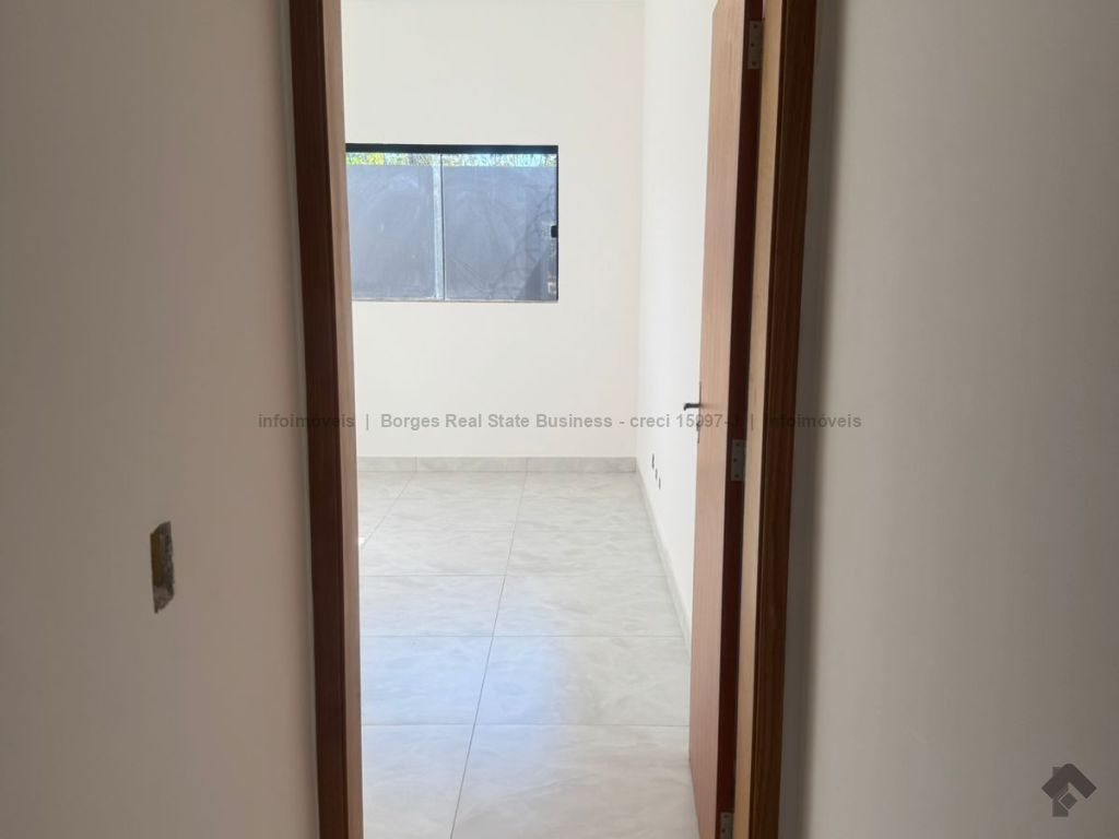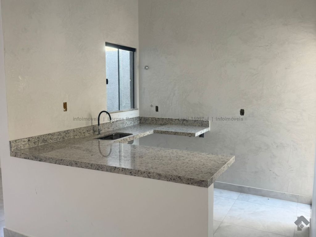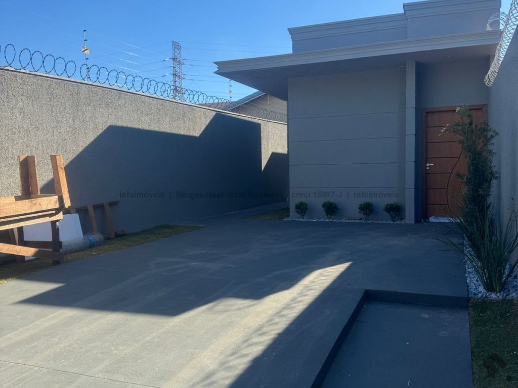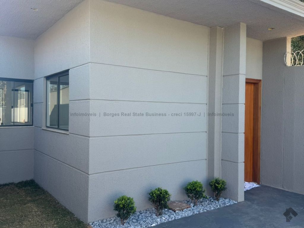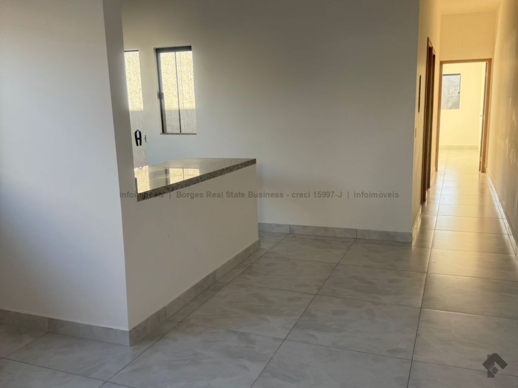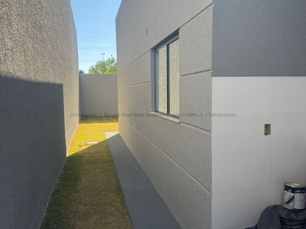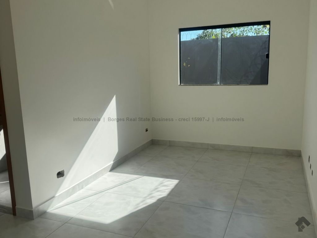 Suíte com espaço para closet, sala integrada à cozinha, garagem ampla e jardins na frente e nos fundos, com possibilidade para área gourmet ou piscina.