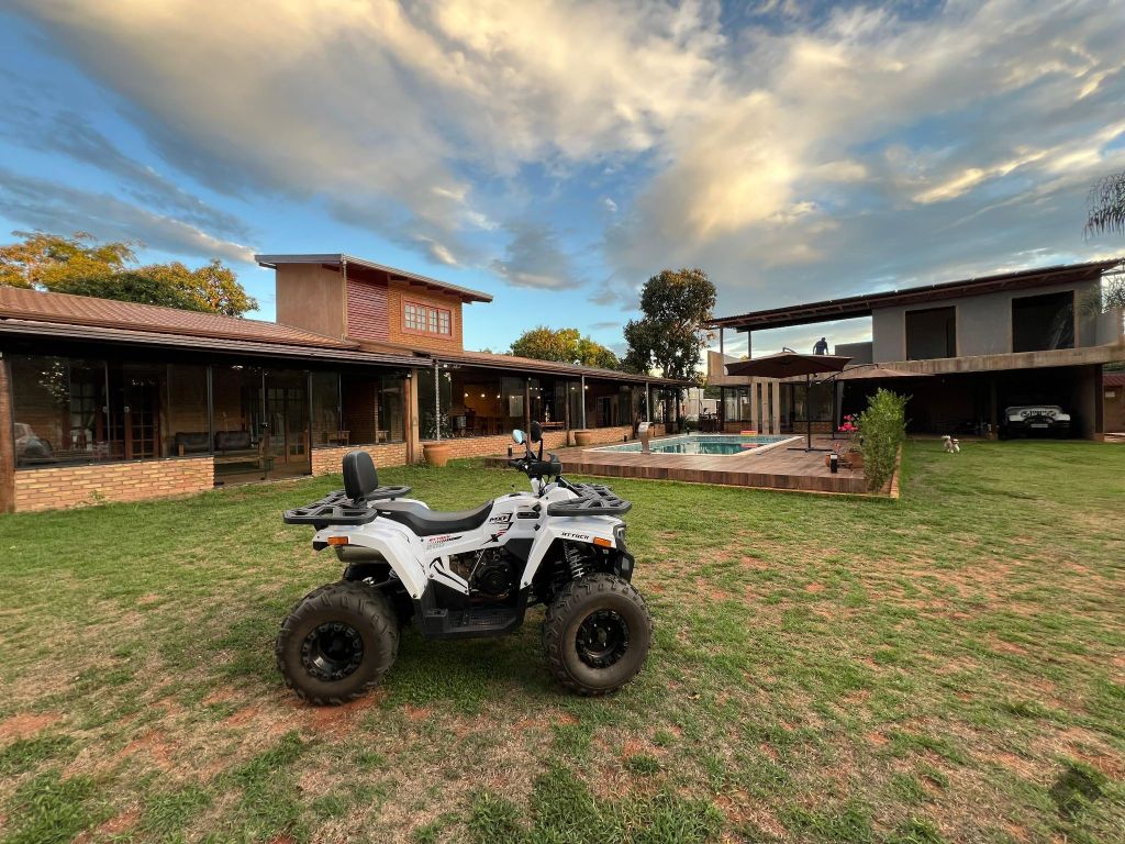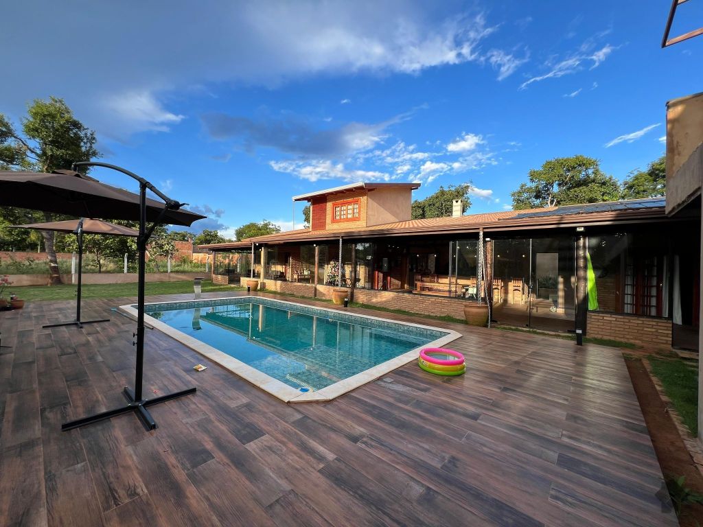 A casa sede possui 03 quartos, sendo 1 demi-suíte, cozinha ampla completa com adega, brinquedoteca. Conta também com um sistema de energia fotovoltaica, água aquecida, piscina com cascata, pomar, canil, poços semi-artesianos, casa para caseiro e sobrado privativo ao lado da casa principal com varanda para mesa de jogos. Chácara sendo vendida porteira fechada como nas fotos, toda mobiliada e quadriciclo. Espaço totalmente completo.