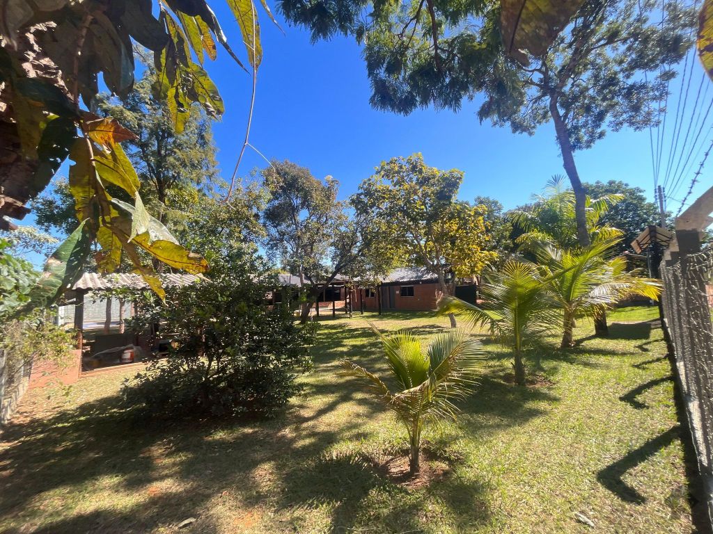 Grande varanda em madeira à vista e forro de madeira, pintura em grafiato, contendo suíte com pé direito duplo e forro em madeira, banheiro com armário e box em vidro temperado com forro em PVC, 2 banheiros com forro em PVC, azulejados 1/2 barra e pintura em grafiato, 1 deles com box em vidro temperado, despensa com forro de madeira, churrasqueira com fogão a lenha, pia e balcão em granito, 2 quartos com forro de madeira, piscina 2,60 m x 5 m x 1,5 m contendo cascata, iluminação em LED e motor, poço, telhado com telha esmaltada, 5 mudas de coqueiro anão e 2 de limão, um sendo taiti e outro rosa. Contém espaço para futuras construções e área de esporte.