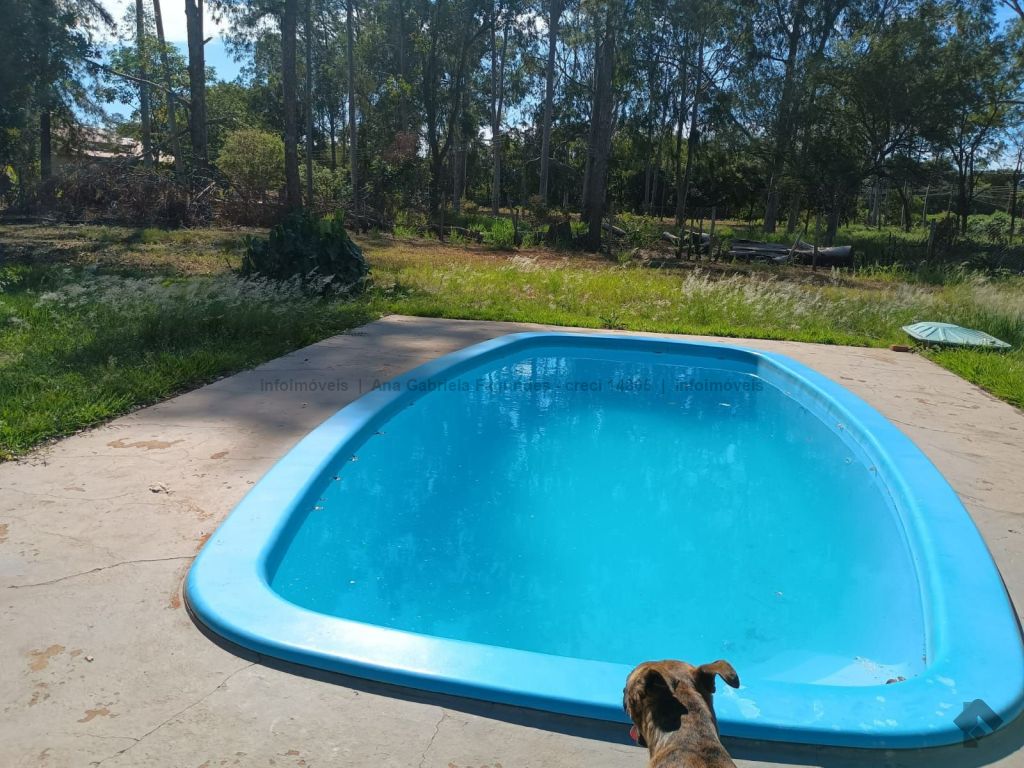 Chácara de 1,4 hectare, casa com 03 quartos, sala e cozinha espaçosa, um banheiro interno e um lavabo externo, lavanderia e garagem coberta para 02 carros, área gourmet com fogão a lenha, churrasqueira, pia, piscina, parcialmente cercada com tela e portão de correr, energia solar para até 300 kW.
