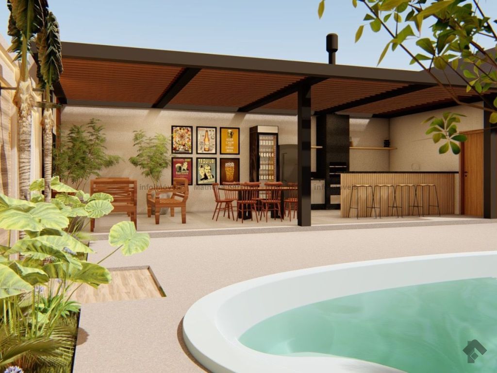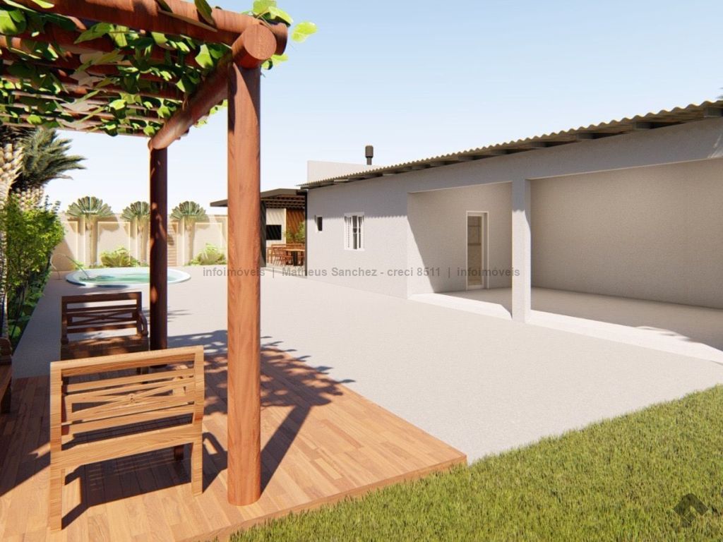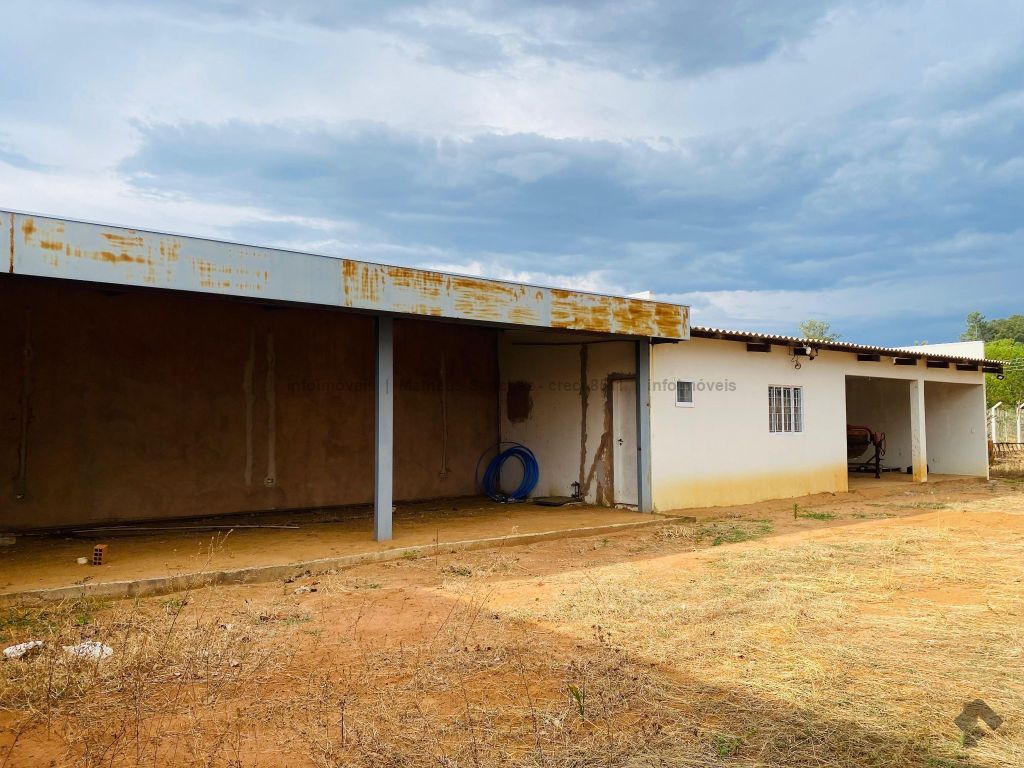 Terreno com 1.000 m², 13 m de frente x 77 m de fundo. Casa com 63 m² (12,30 x 5 m), estrutura metálica com telhado isotérmico, área coberta adicional de 50 m² (10 x 5 m), portão de correr, poço artesiano ativo, terreno murado e cercado.