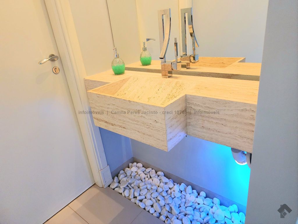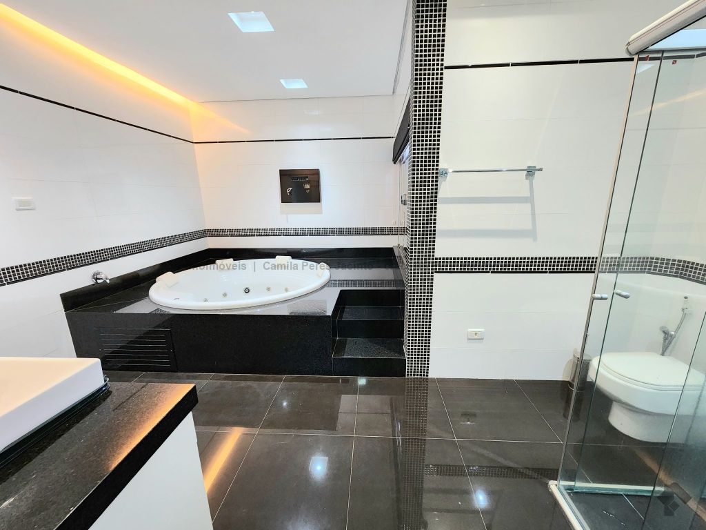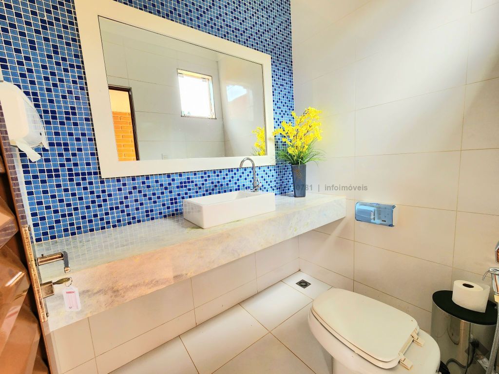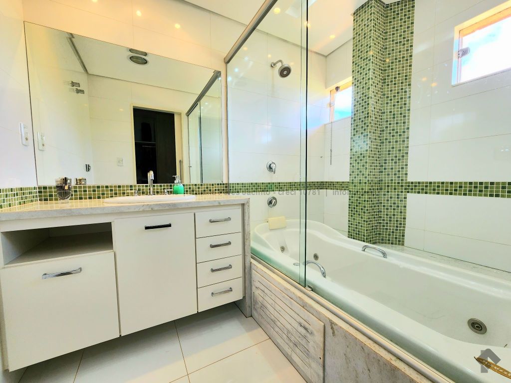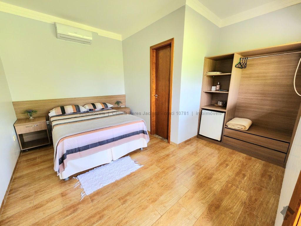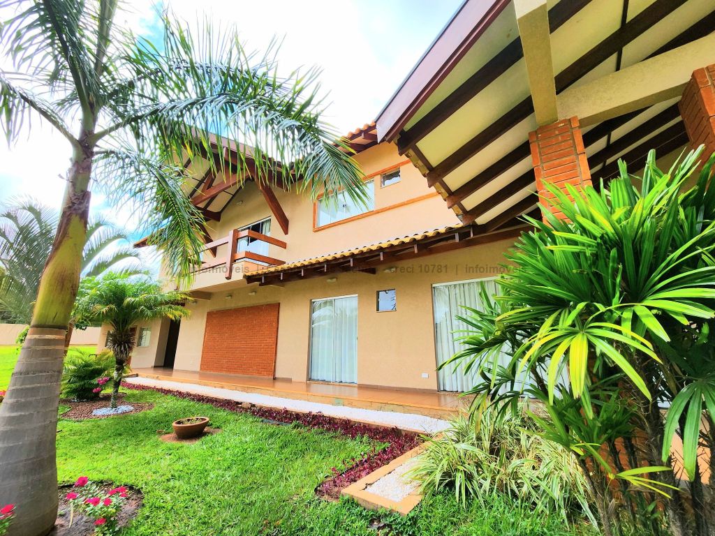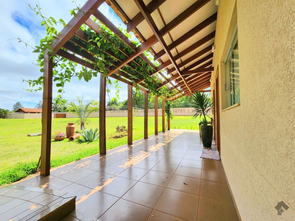 Uma suíte master com hidromassagem, duas suítes com hidromassagem, três suítes sendo duas para hóspedes, home theater, sala de jantar, sala de visitas, sala de TV, biblioteca, lareira, escritório, cozinha, despensa, área de serviço coberta, 2 banheiros, lavabo, sala de jogos, sauna, spa, toda avarandada, espaço gourmet completo com churrasqueira, fogão e forno a lenha, forno de pizza, câmara fria, bancada, ilha, despensa, fogão e forno embutido, piscina aquecida com cascata, aquecimento solar, campo de futebol, poço artesiano, garagem coberta para 6 carros, rica em madeira, armário em todos os cômodos, louças e metais Deca. Porcelanato tipo A retificado, toda murada, cerca elétrica e concertina.