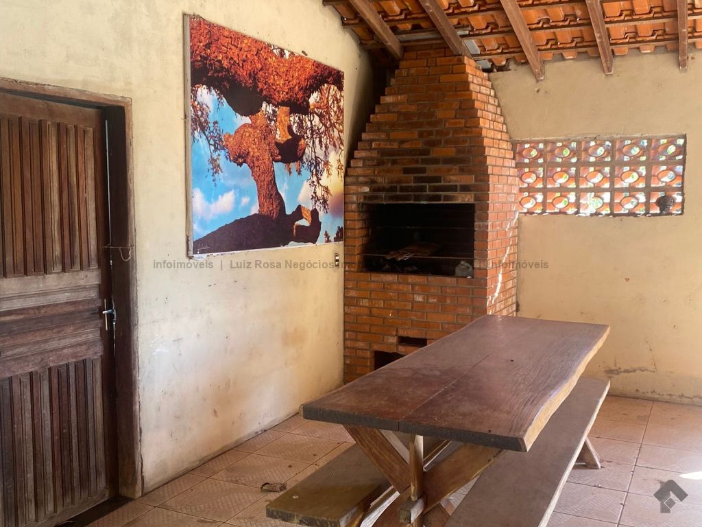 Excelente casa com varanda, churrasqueira, cozinha com fogão a lenha, sala, 01 suíte, 02 quartos, wc social, cozinha.