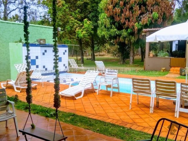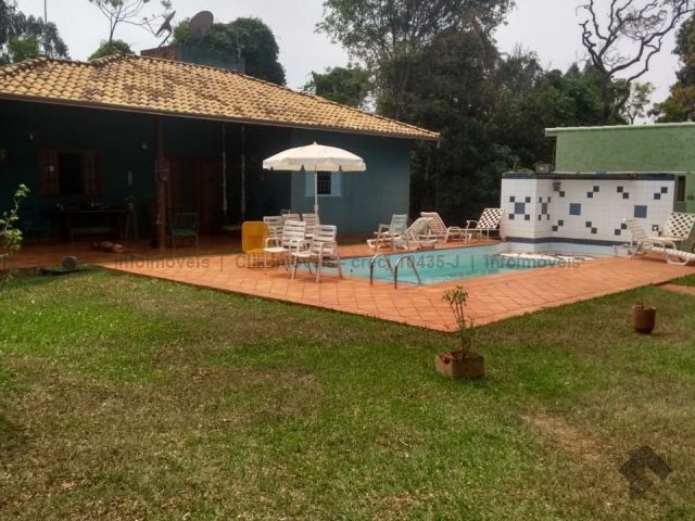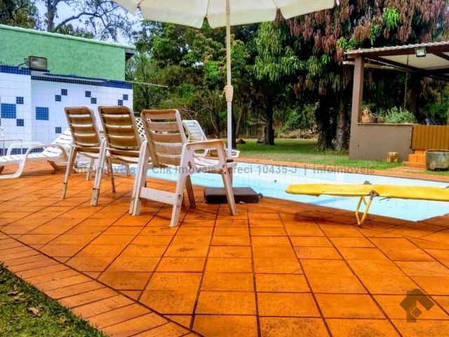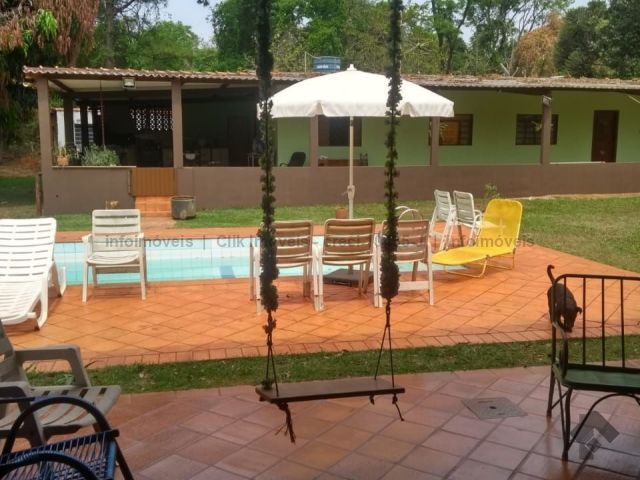 Chácara de 5.000 m². Casa sede com 5 quartos, sendo 2 suítes, sala, copa, área de serviço, depósito, área de lazer com piscina, churrasqueira, campo de futebol e árvores frutíferas.