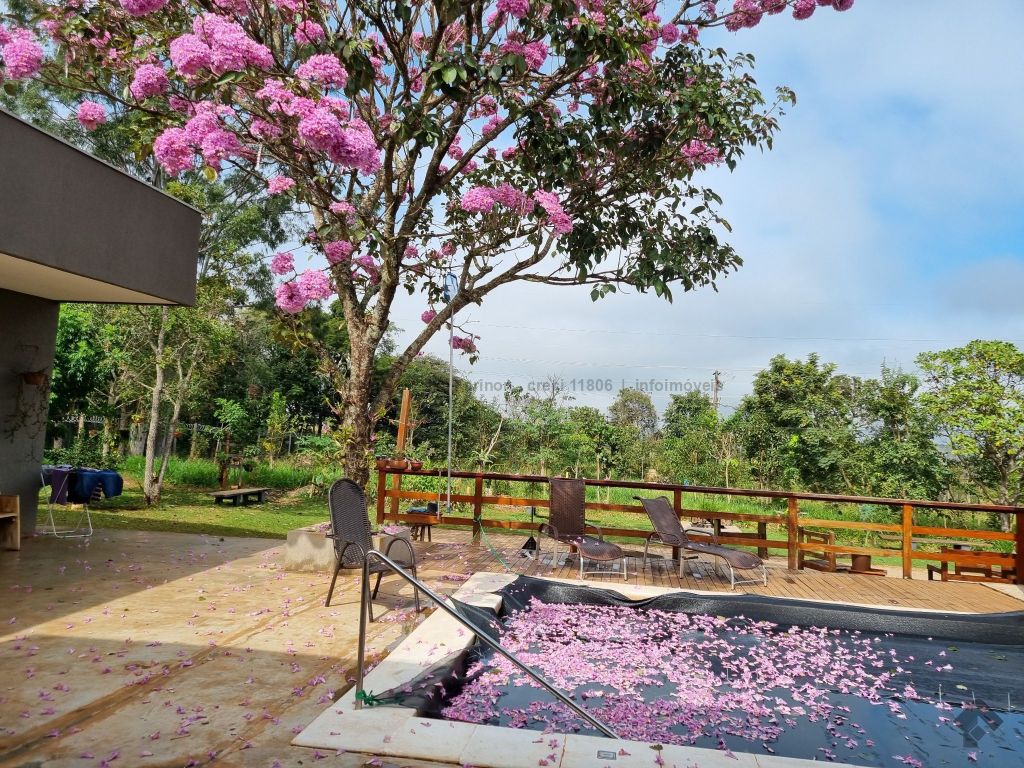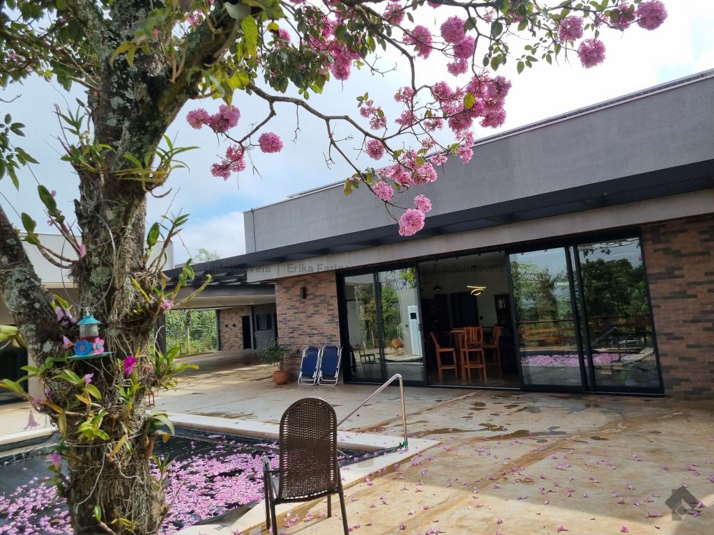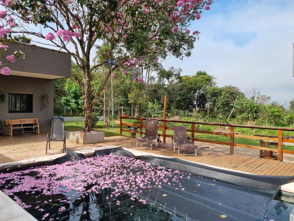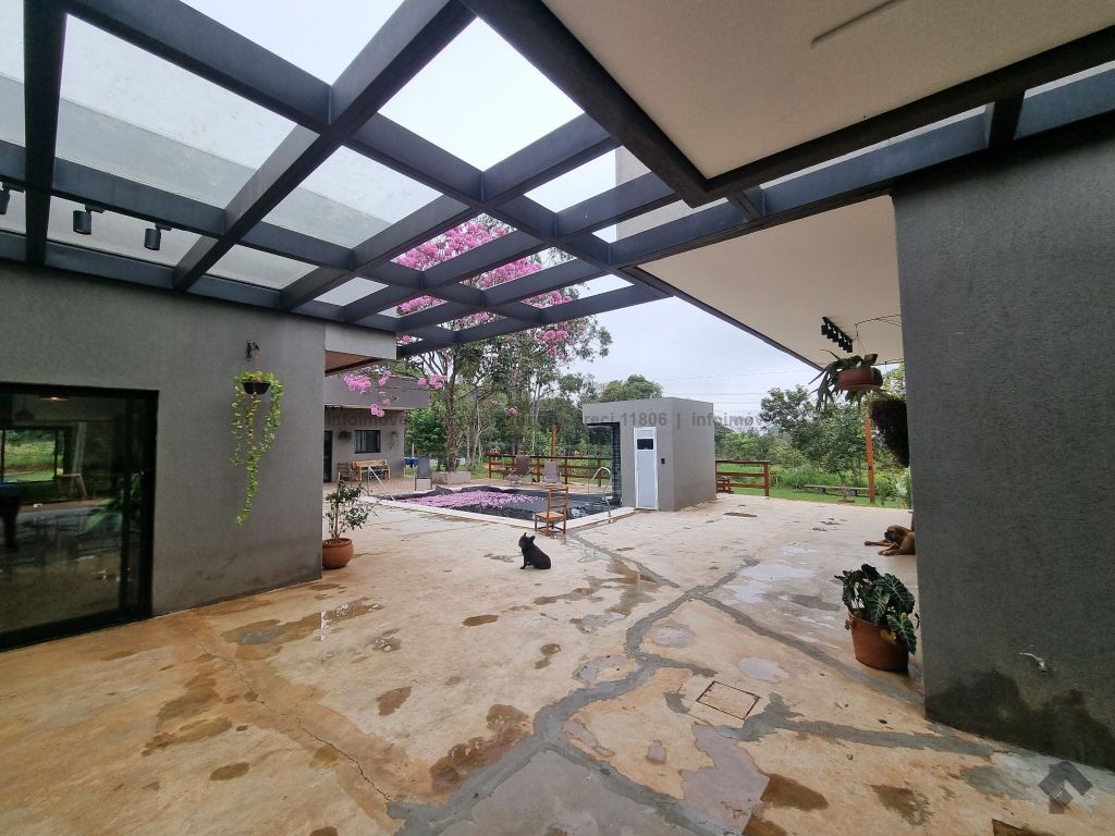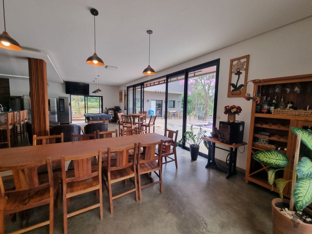 Chácara incrível com 5.000 m² de terreno e 770 m² construídos. 6 apartamentos, 4 quartos amplos, sala de TV, escritório, salas de jantar, estar e gourmet integradas, 10 banheiros mais 1 lavabo, piscina aquecida, sauna relaxante, redário, galinheiro, depósito e muito mais para sua vida no campo com todo o conforto urbano.