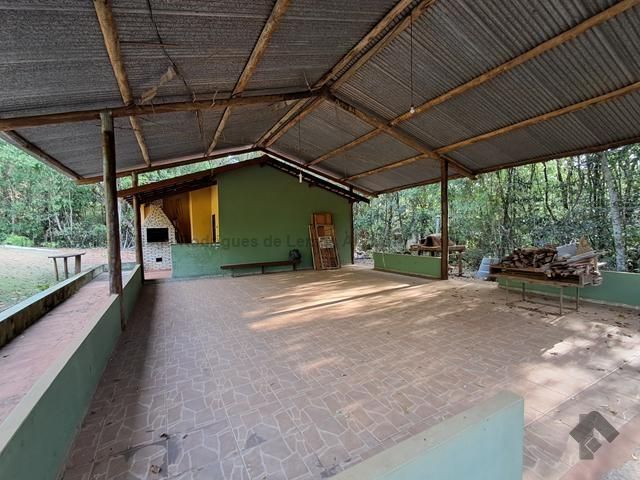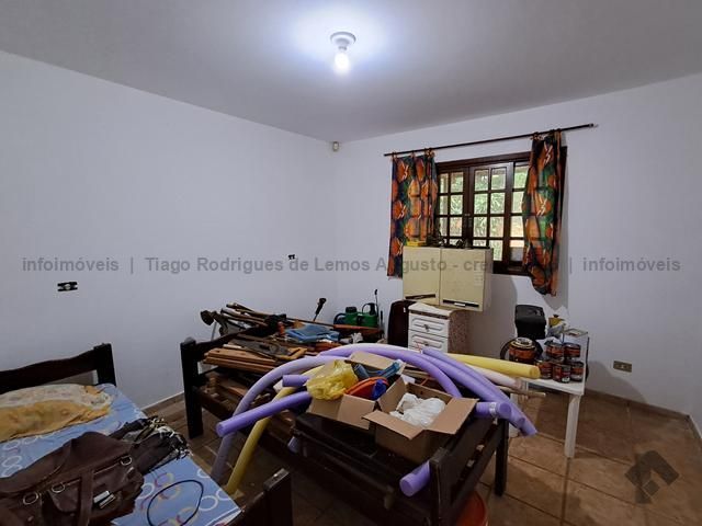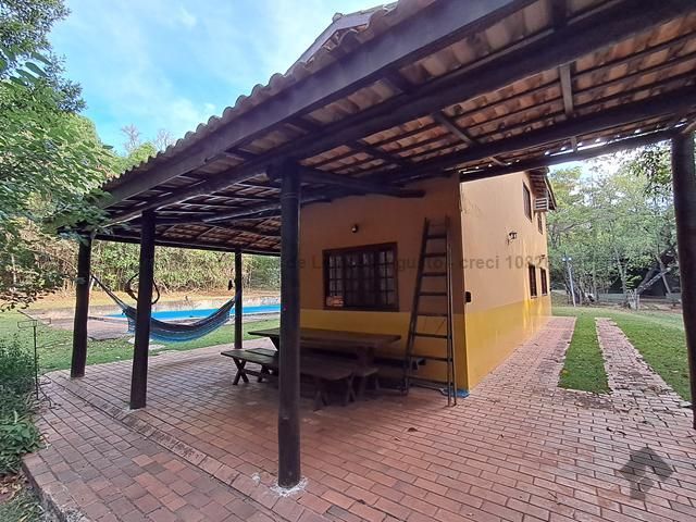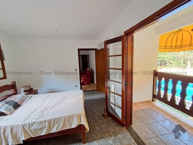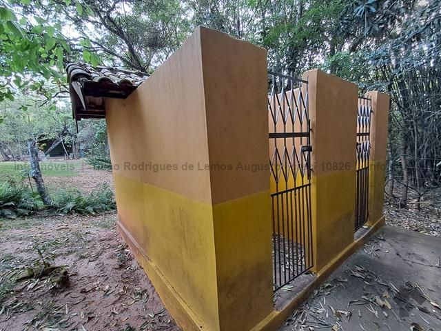 Possui piscina de 12,5 x 6 m, canil, casa sede sobrado com 1 suíte, sacada, 1 quarto e 1 banheiro no piso superior, 1 quarto, 1 banheiro social, sala de jantar, sala de estar, cozinha americana e varanda no piso inferior. Possui galpão com churrasqueira, forno de barro, 2 vestiários, sala, cozinha, 1 quarto e banheiro.